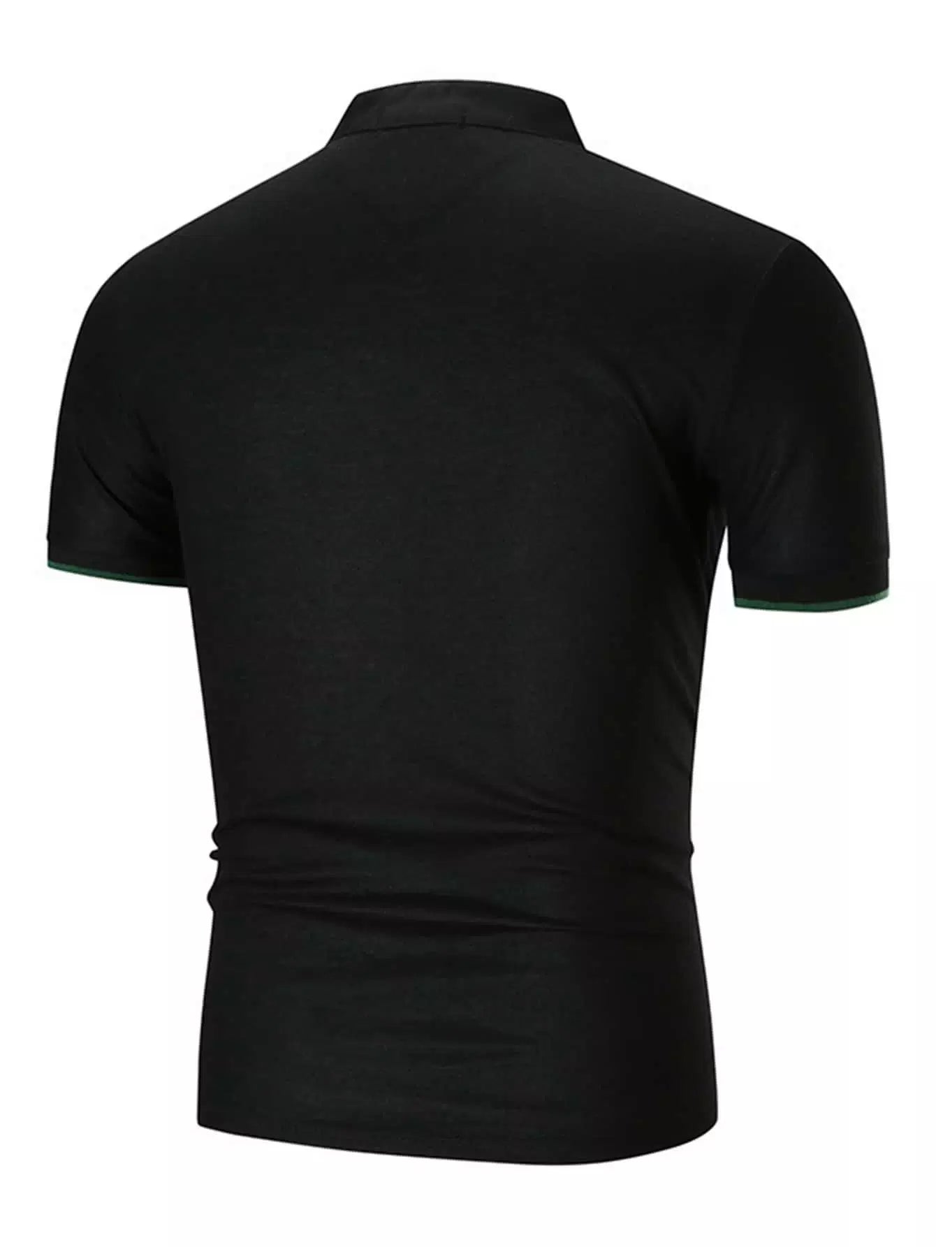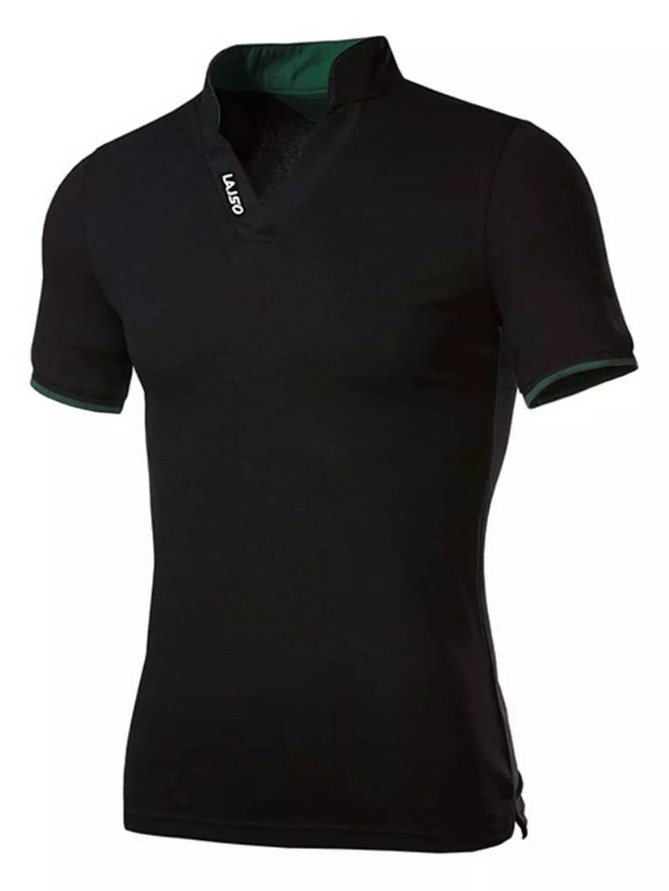 قميص بولو رجالي برسومات وأحرف وفتحة رقبة مدببة