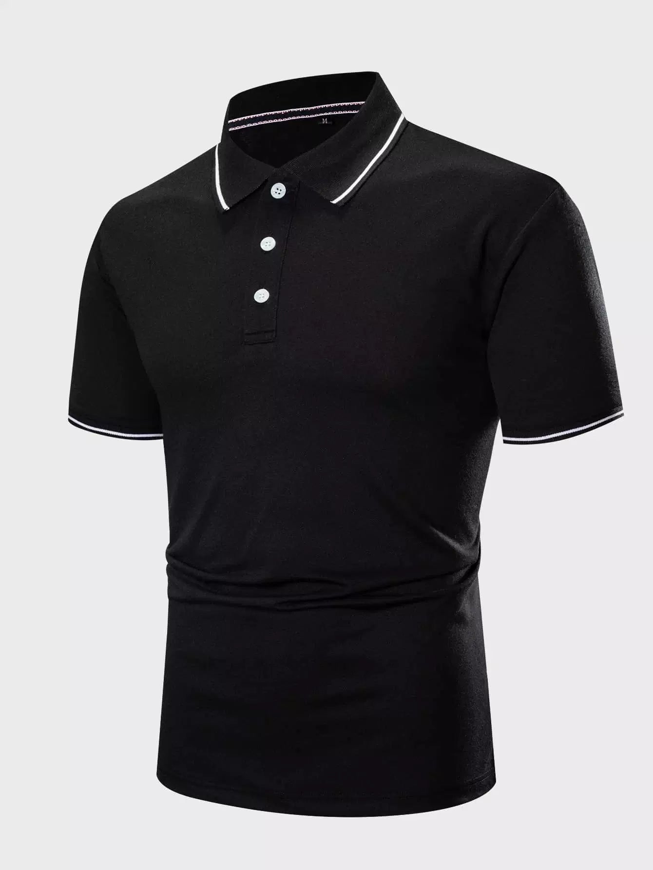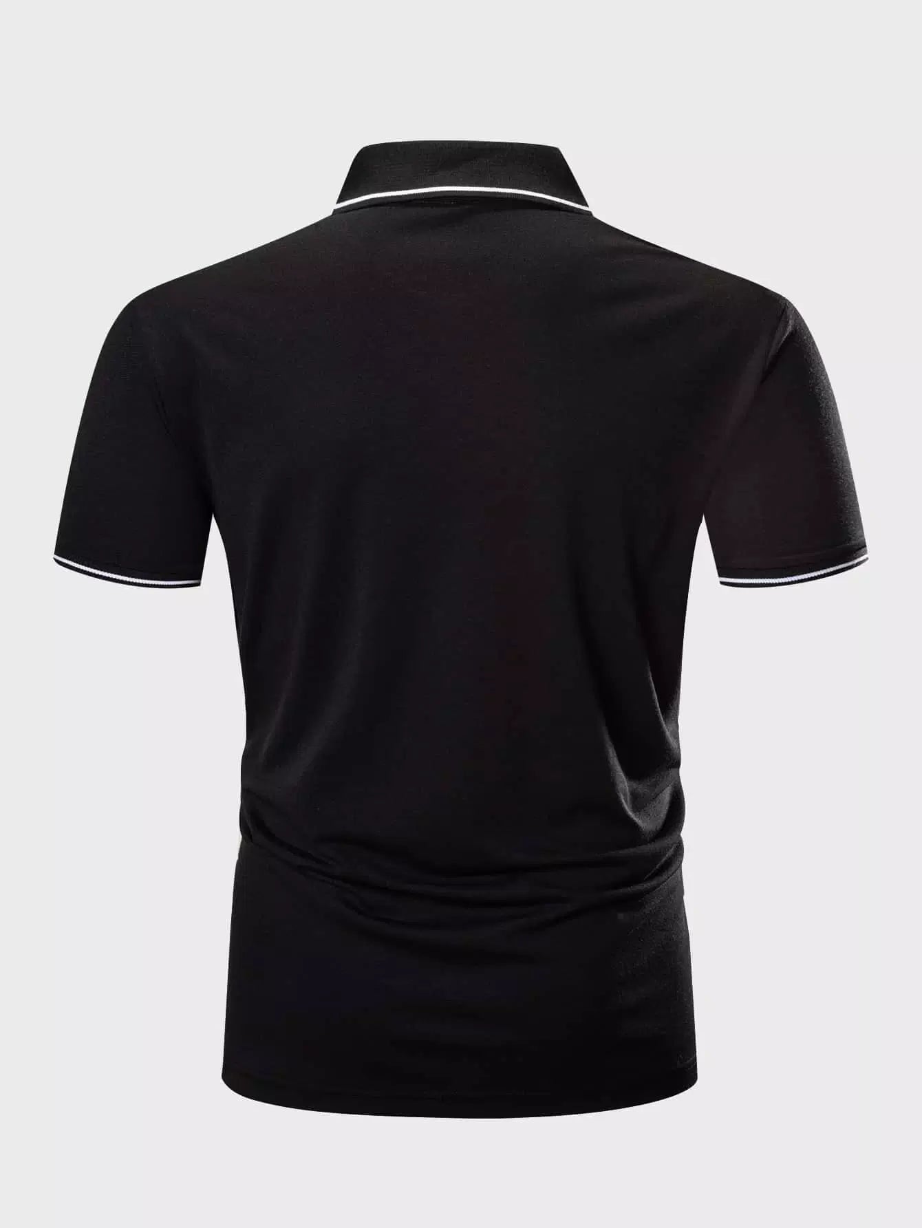 قميص بولو رجالي بطبعة مخططة بنصف سترة