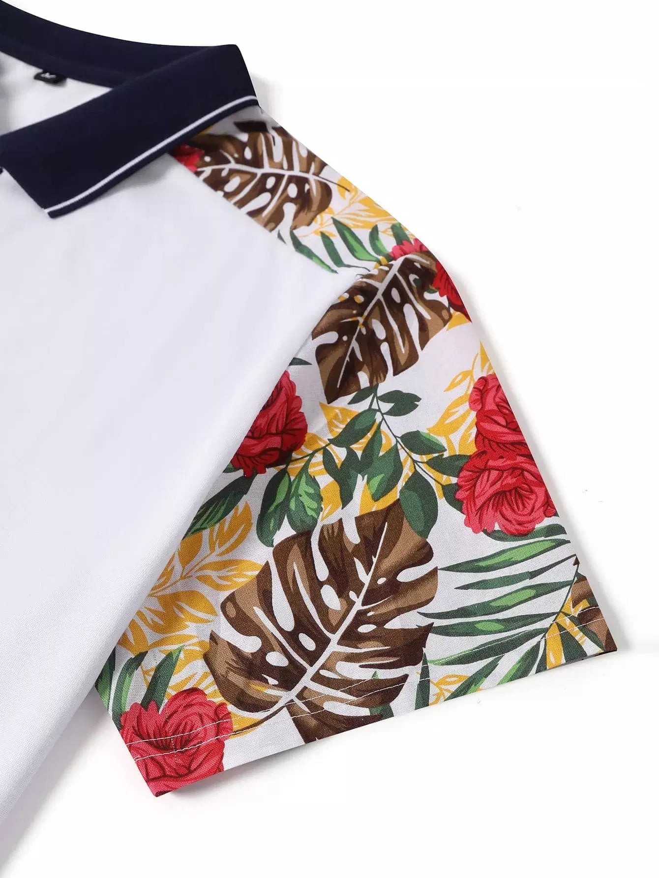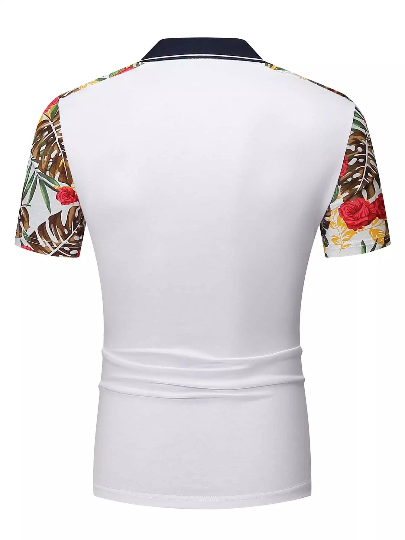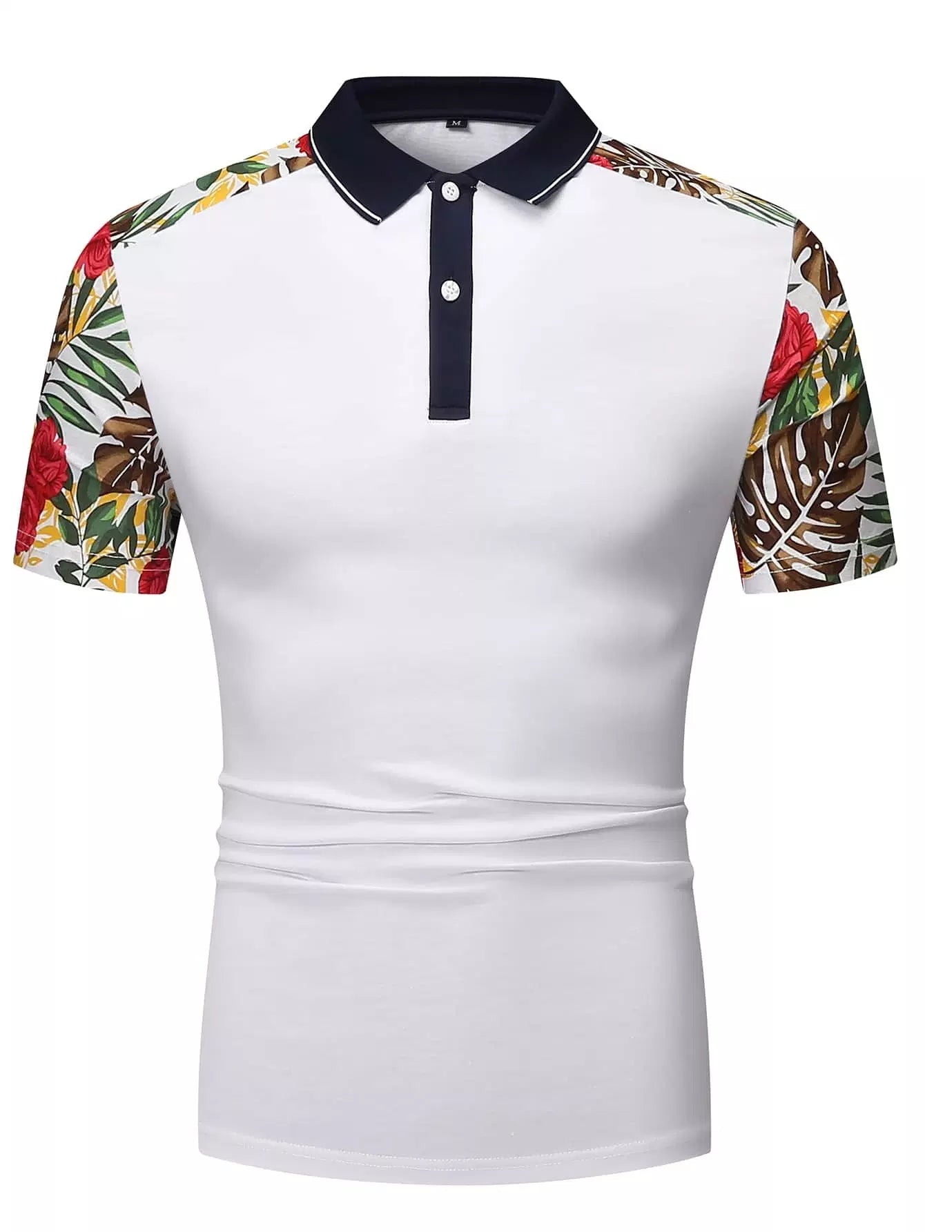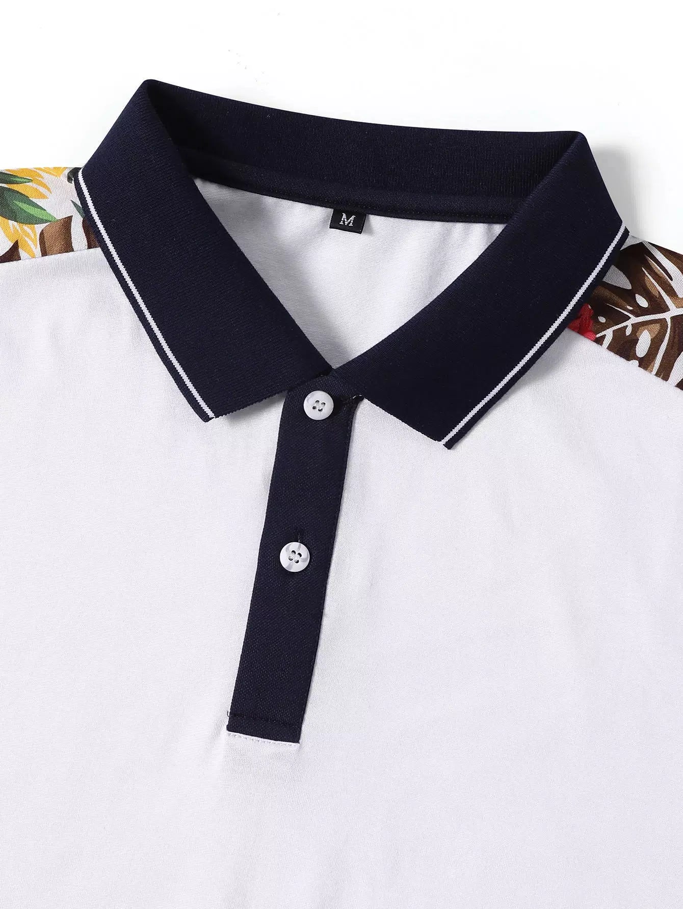 قميص بولو بطبعة استوائية للرجال بياقة متباينة