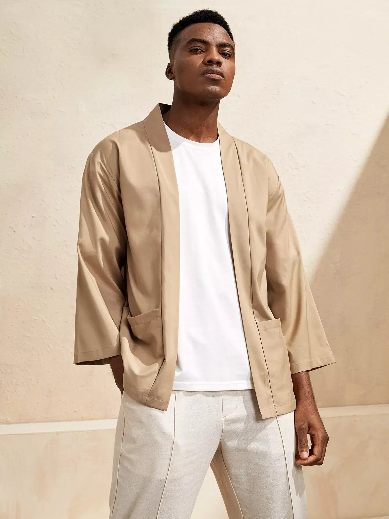 1 قطعة كيمونو سادة بجيب مزدوج بدون قميص