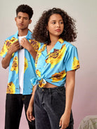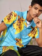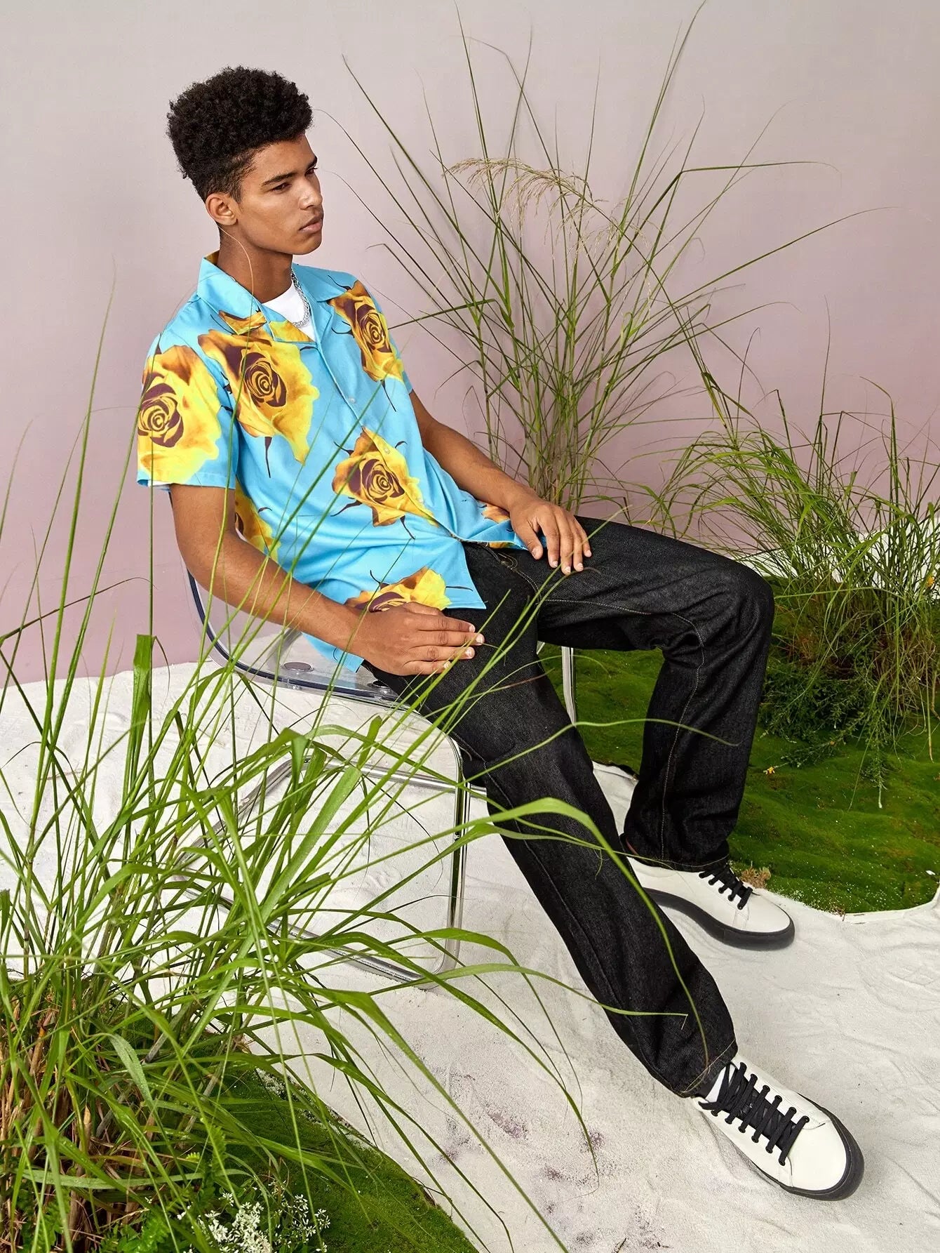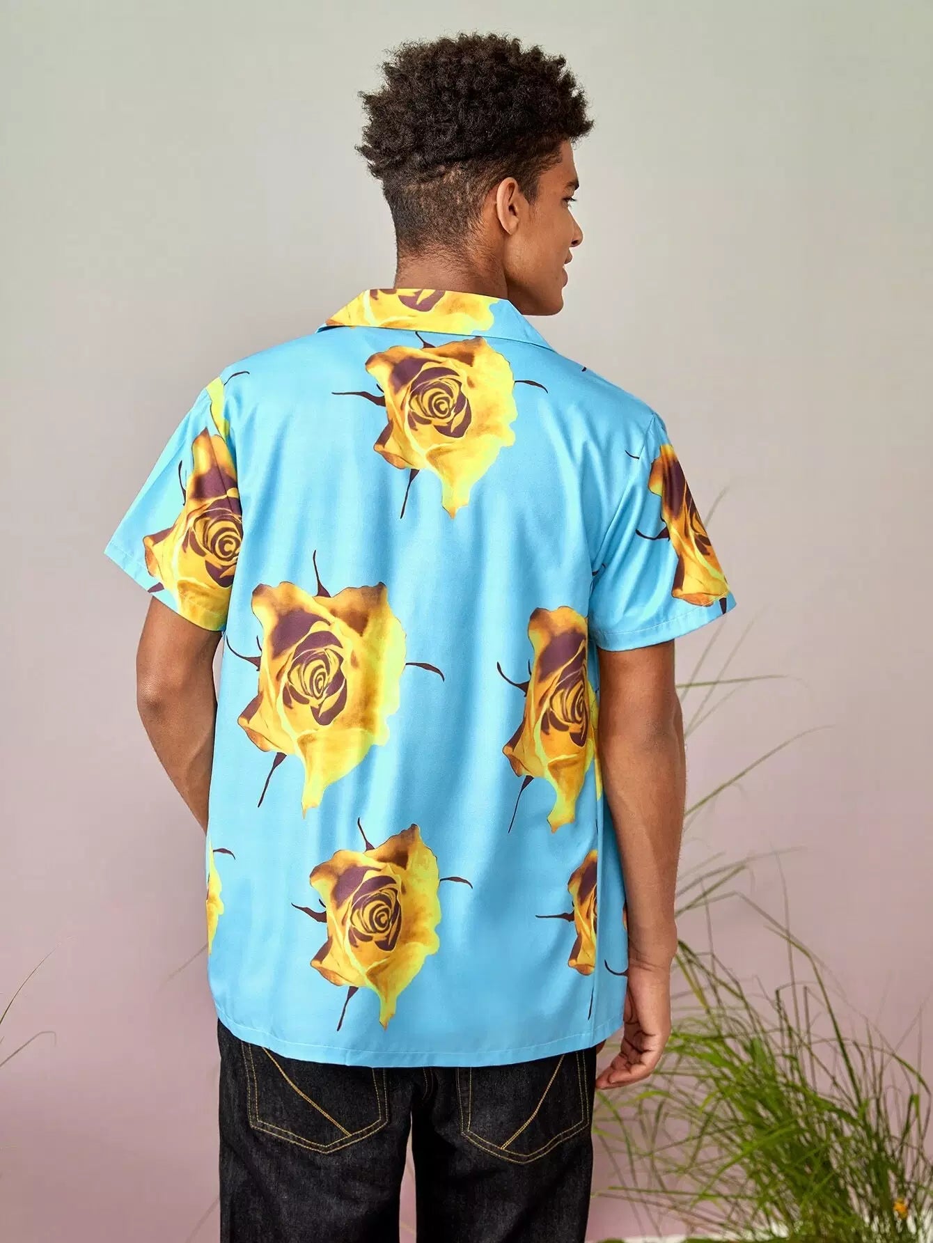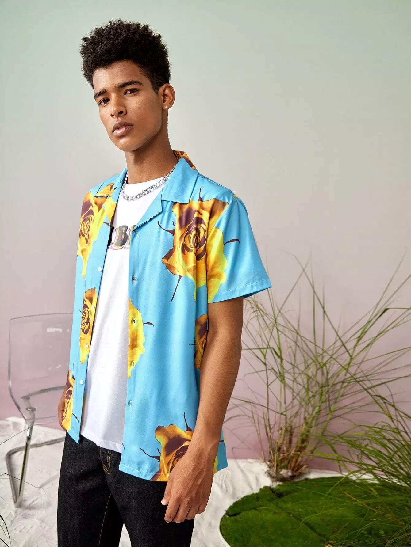 1 قطعة قميص مطبوع عليه أزرار مطبوع عليها وردة