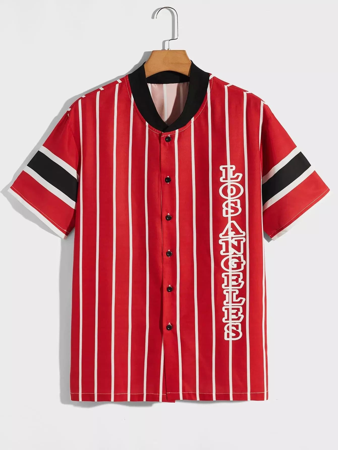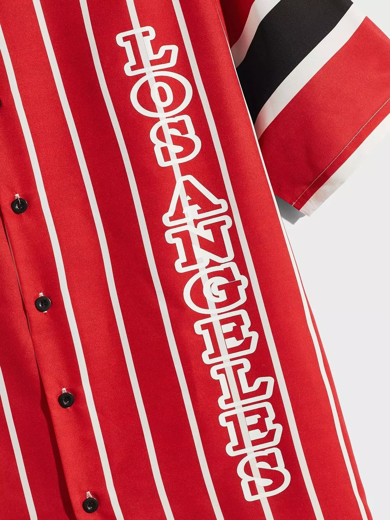 قميص رجالي مخطط برسومات حروف مخططة للرجال