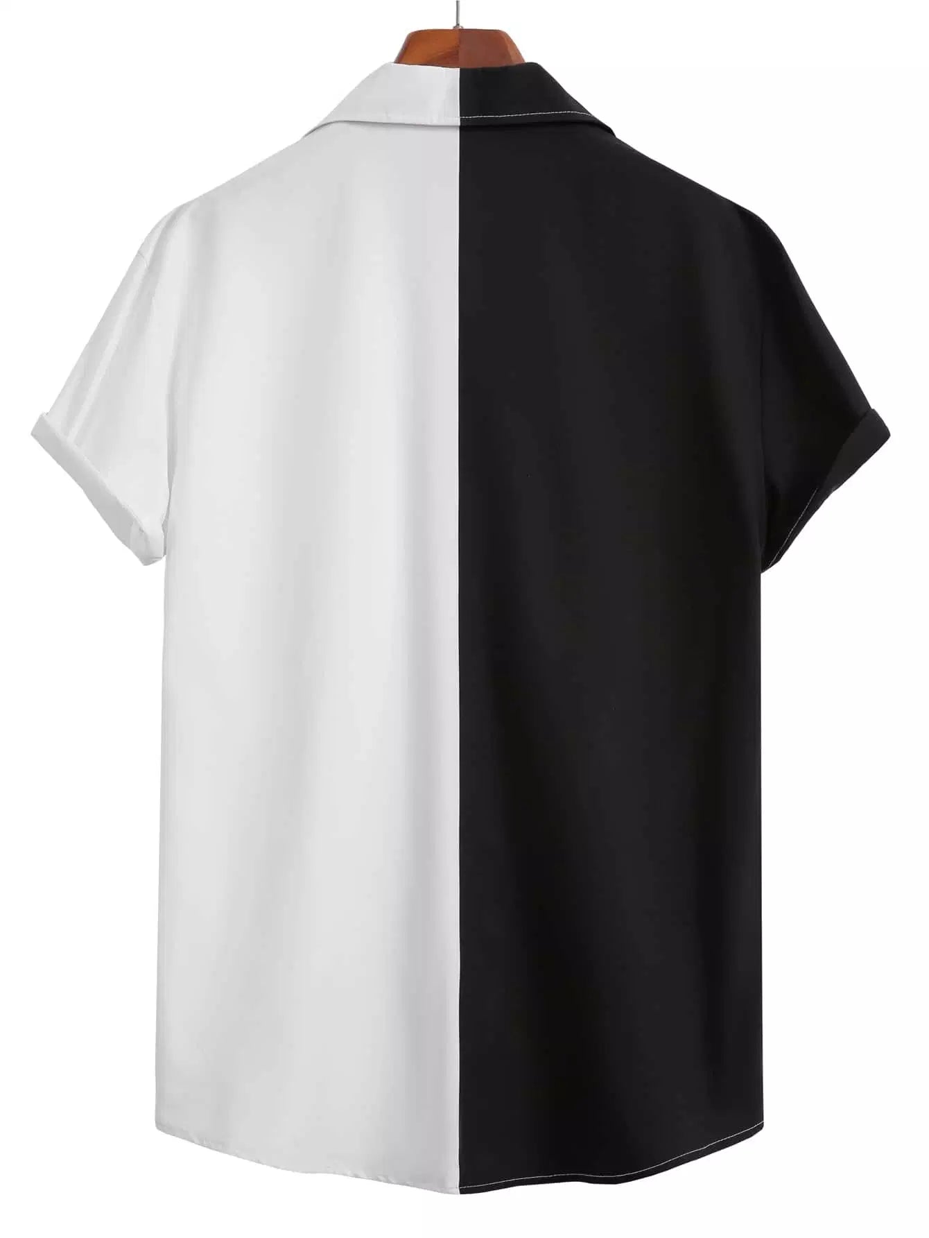 قميص رجالي ثنائي اللون مع أزرار أمامية وجيوب أمامية