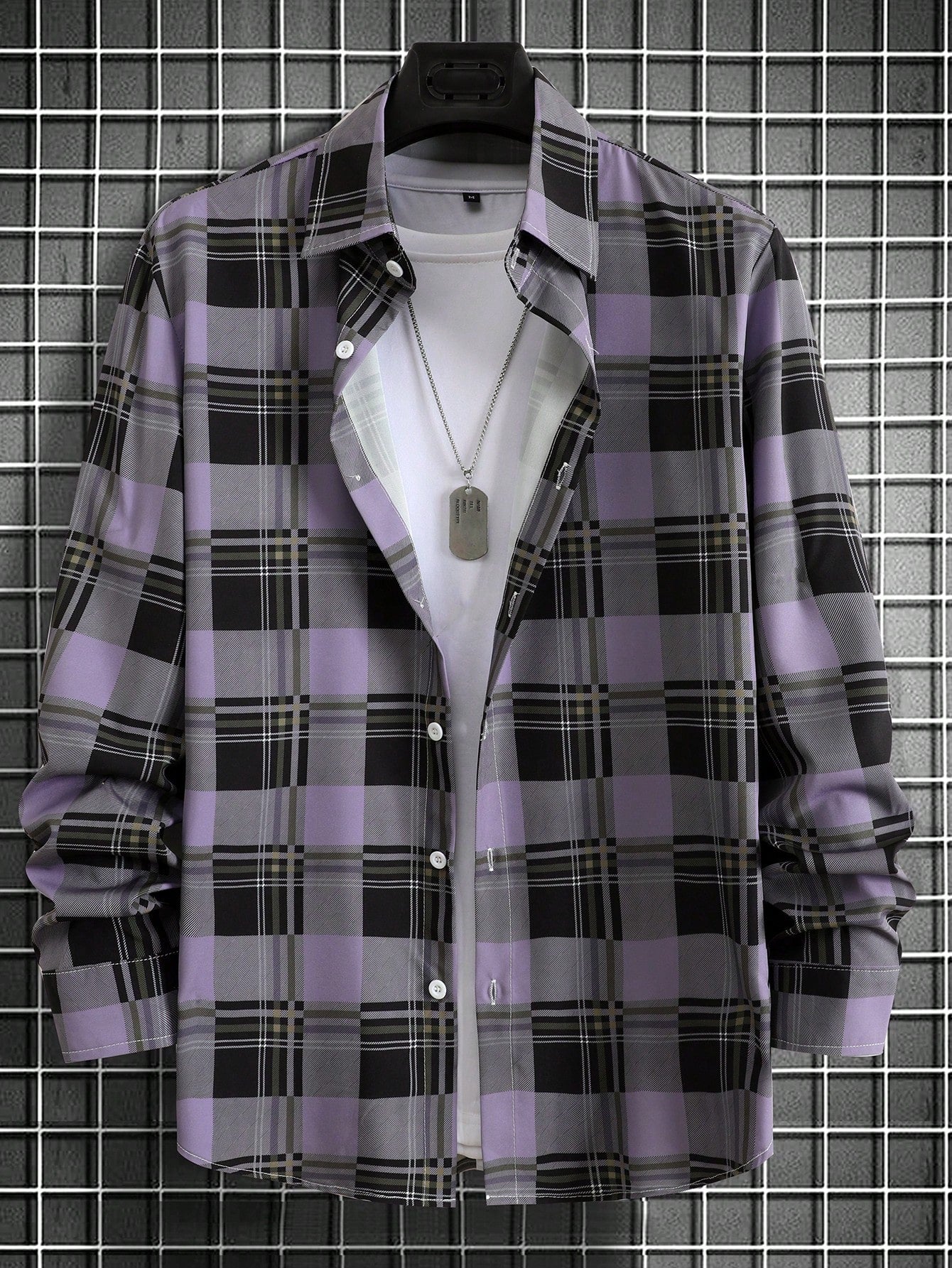 men Manfinity Homme Men's Casual Plaid Long Sleeve Shirt