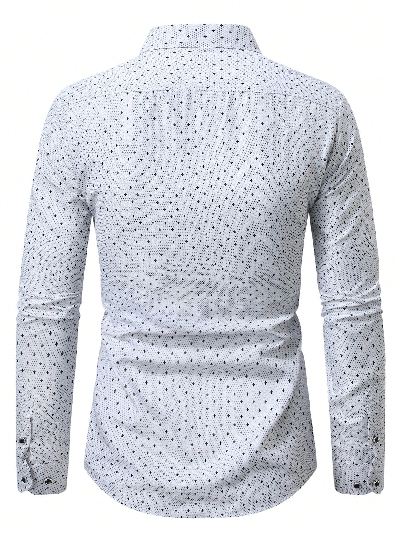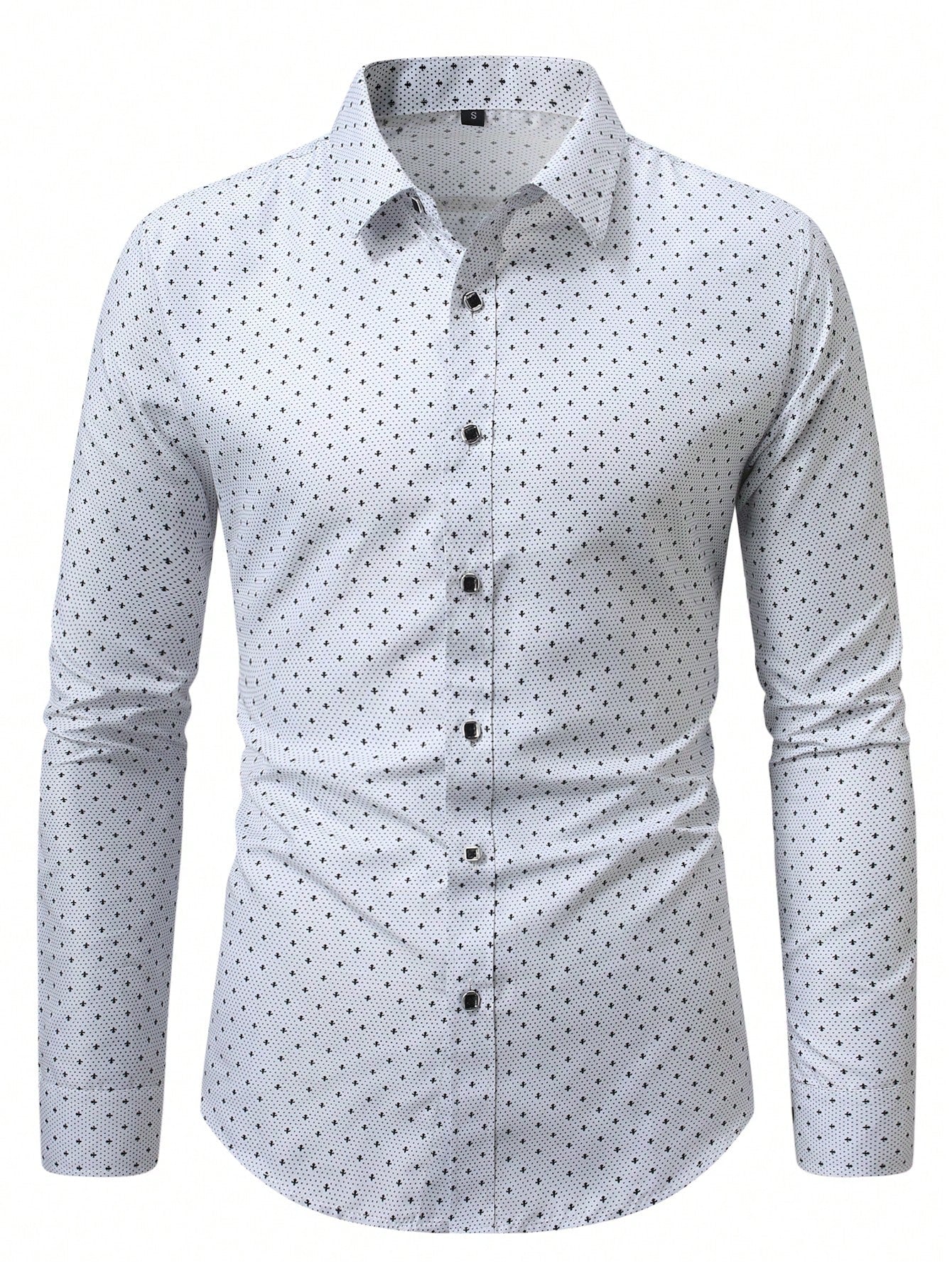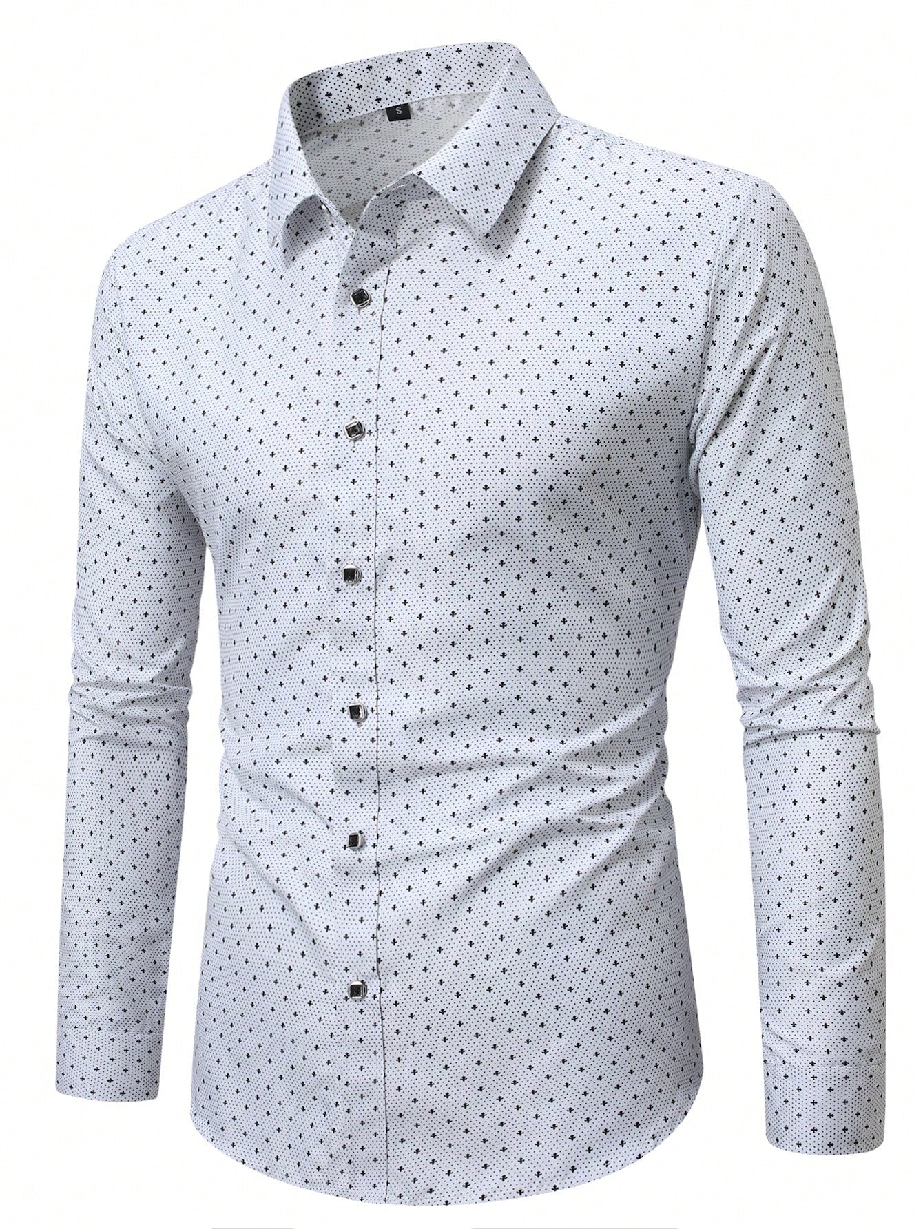 Manfinity Mode Men's Polka Dot Print Long Sleeve Single-Breasted Casual Office Shirt