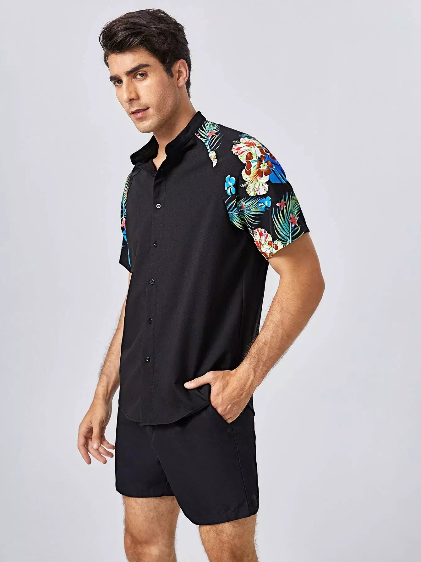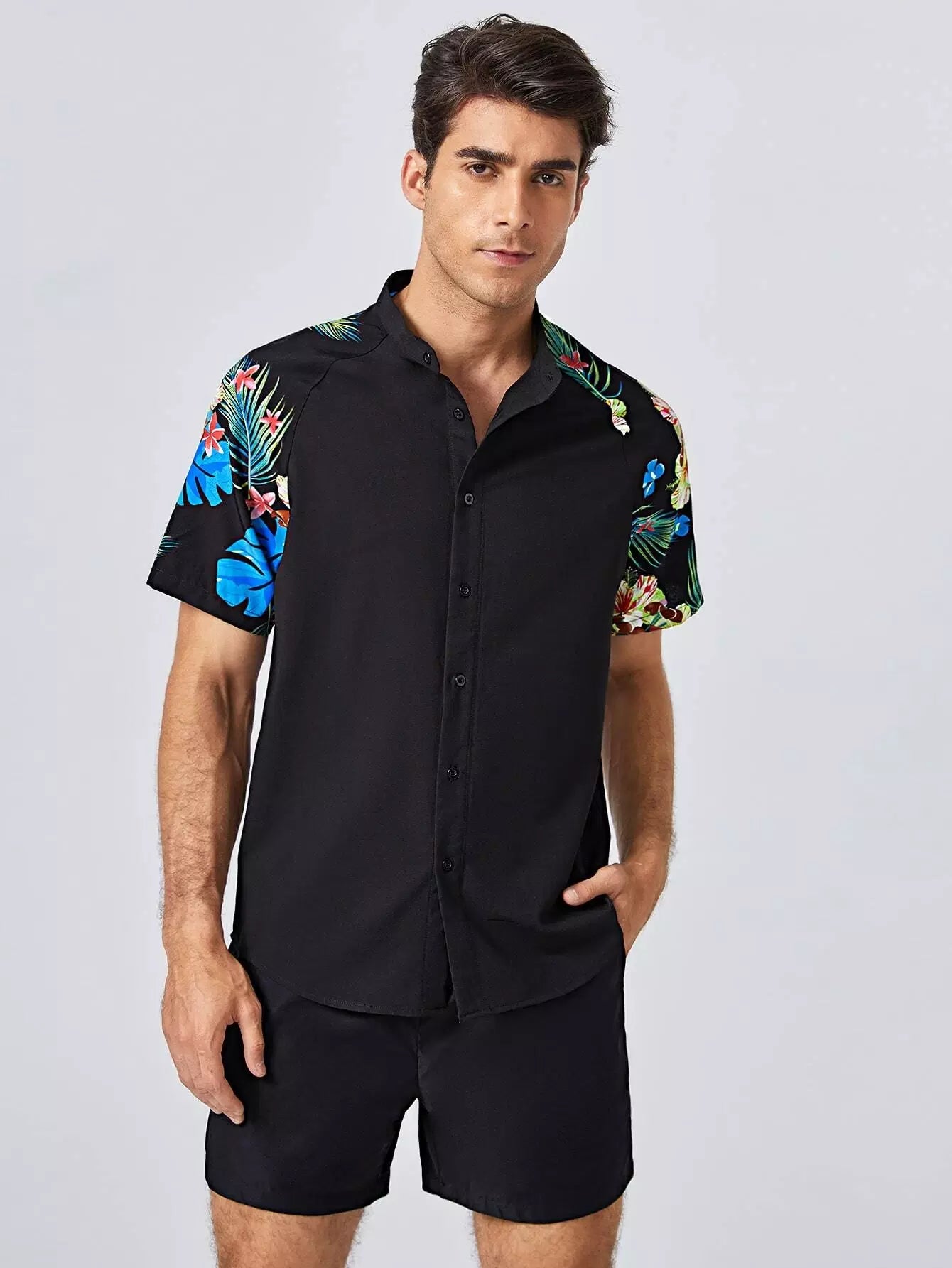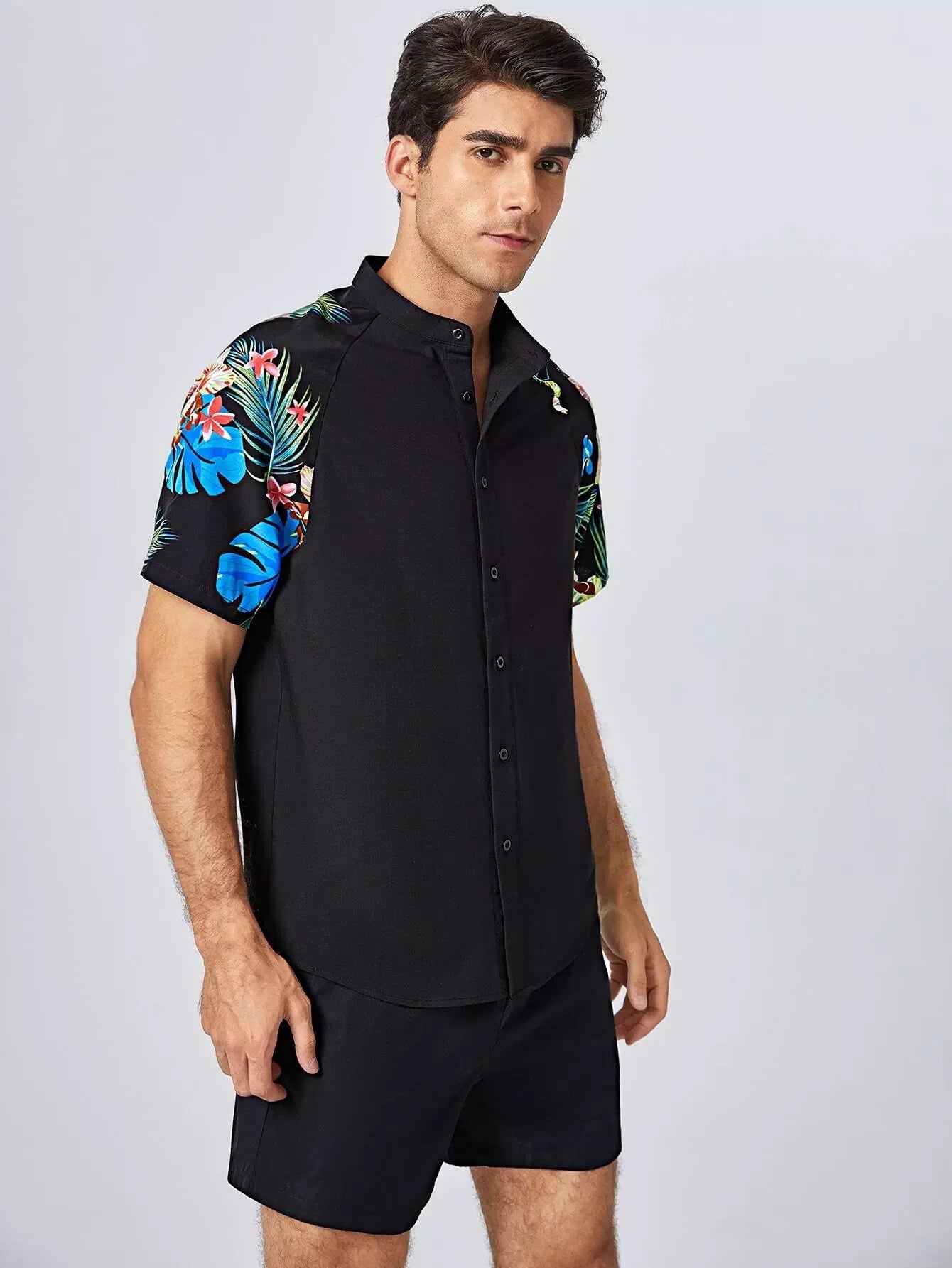 قميص رجالي بأزرار أمامية بأكمام راجلان استوائي