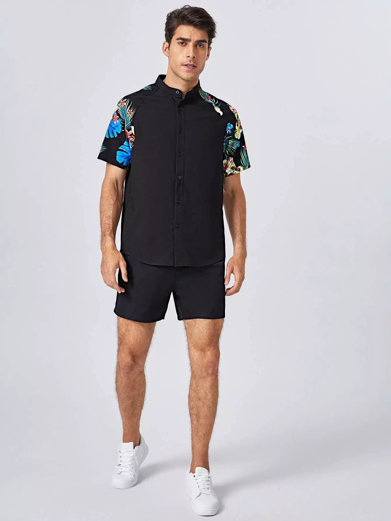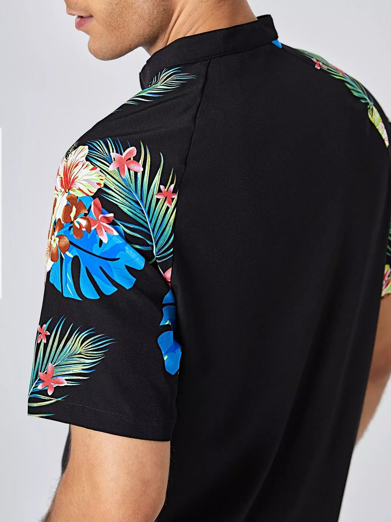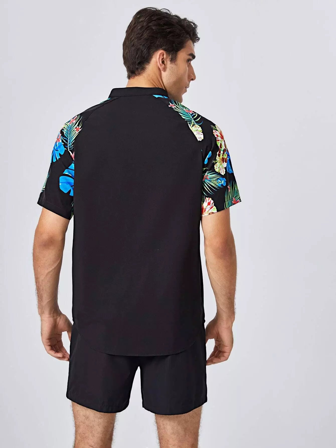قميص رجالي بأزرار أمامية بأكمام راجلان استوائي