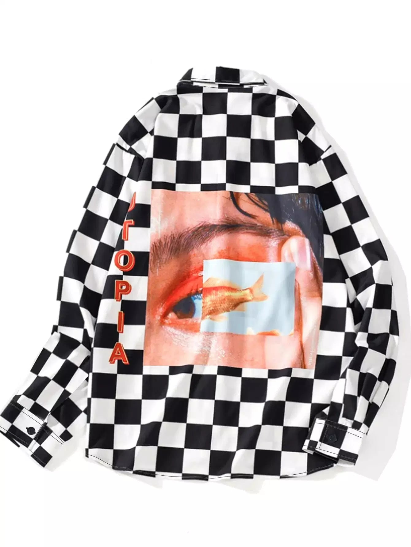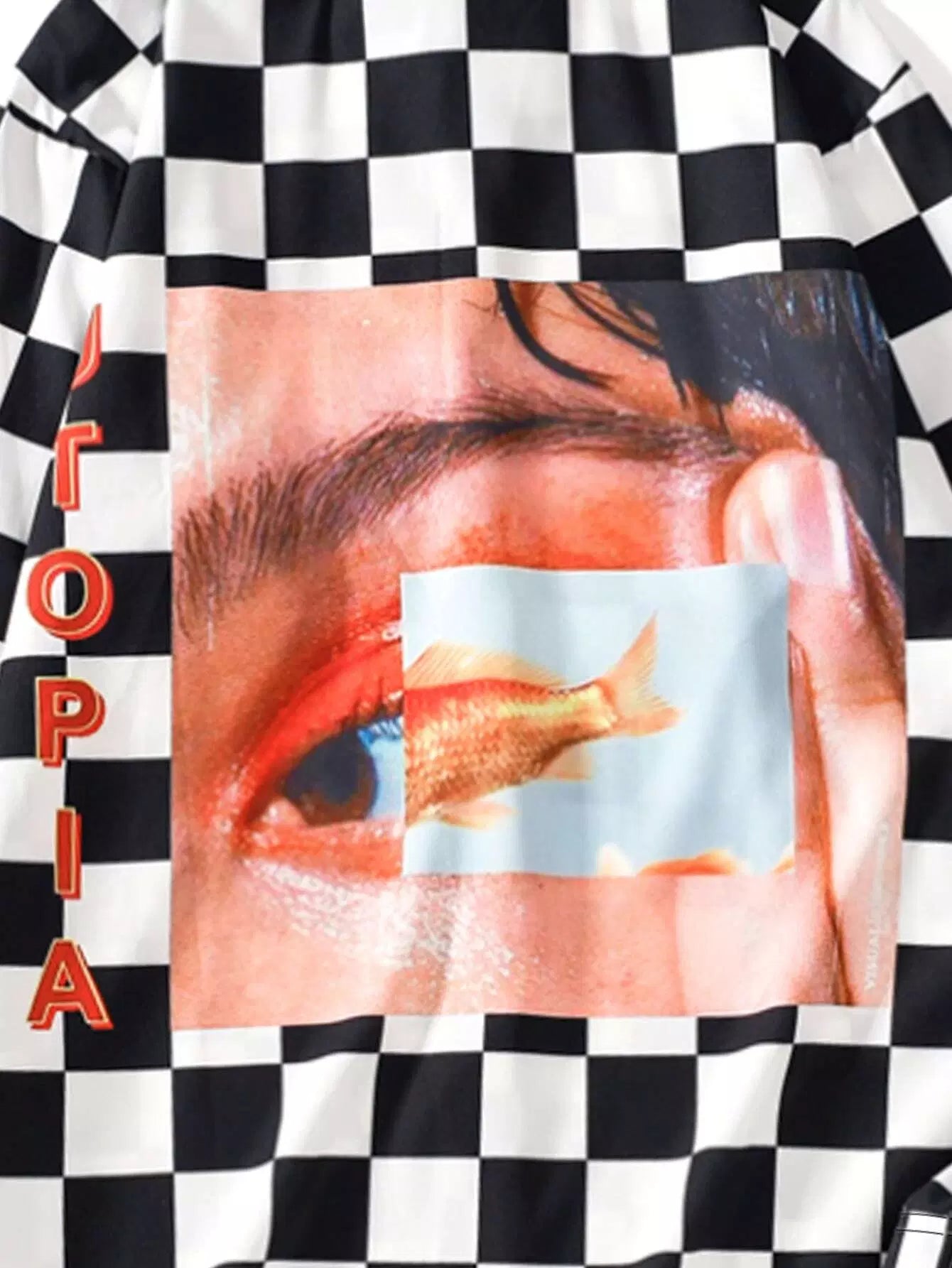 قميص جرافيك على شكل رقعة الشطرنج للرجال
