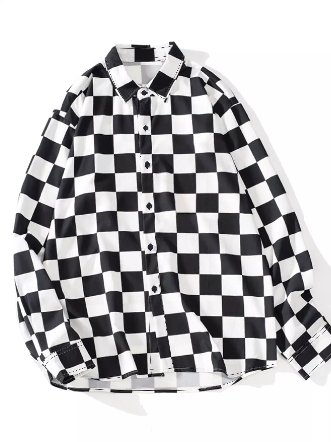 الرجال - قميص برسومات على شكل لوحة الشطرنج للرجال