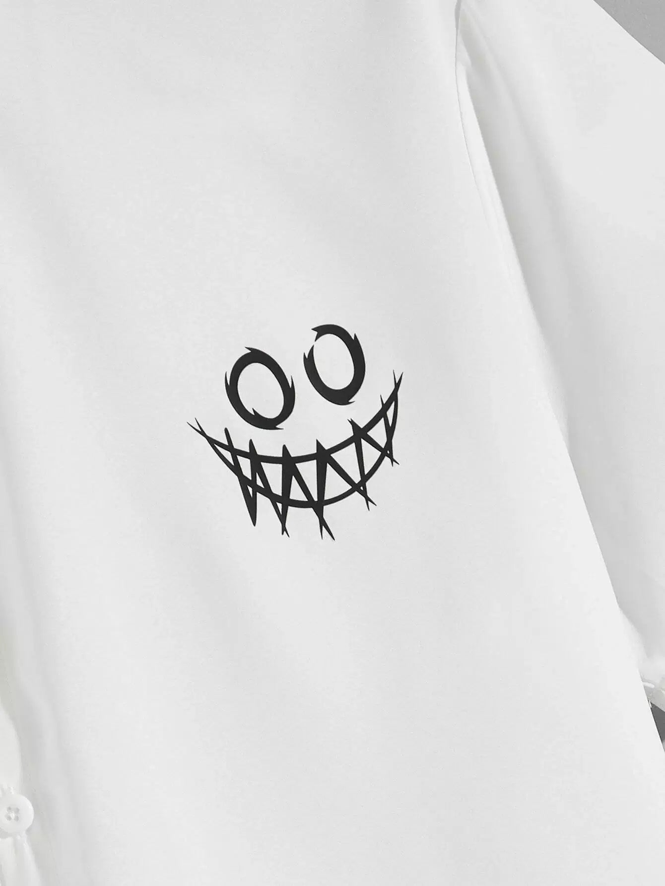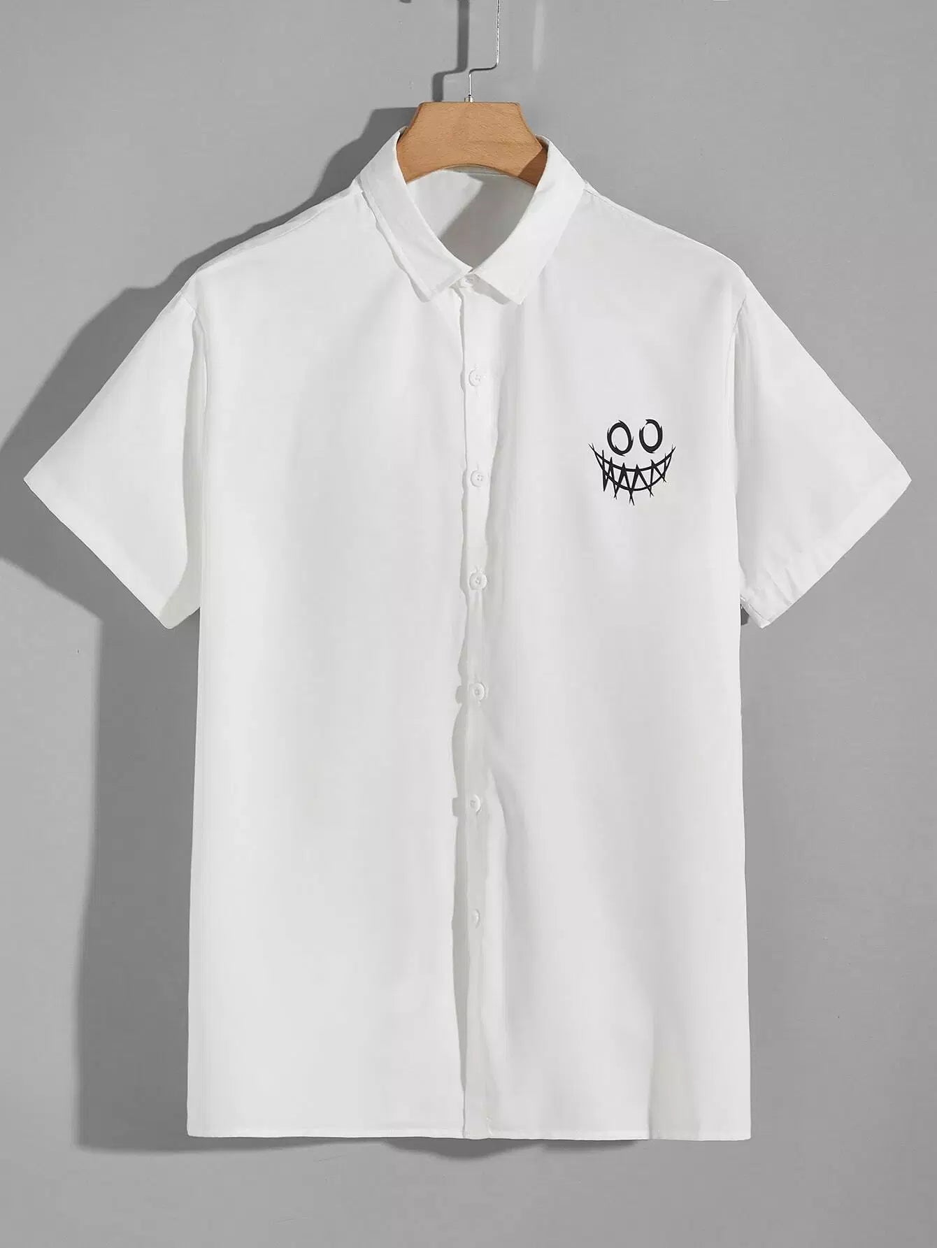 قميص رجالي بطبعة جرافيك مطبوع بأزرار أمامية