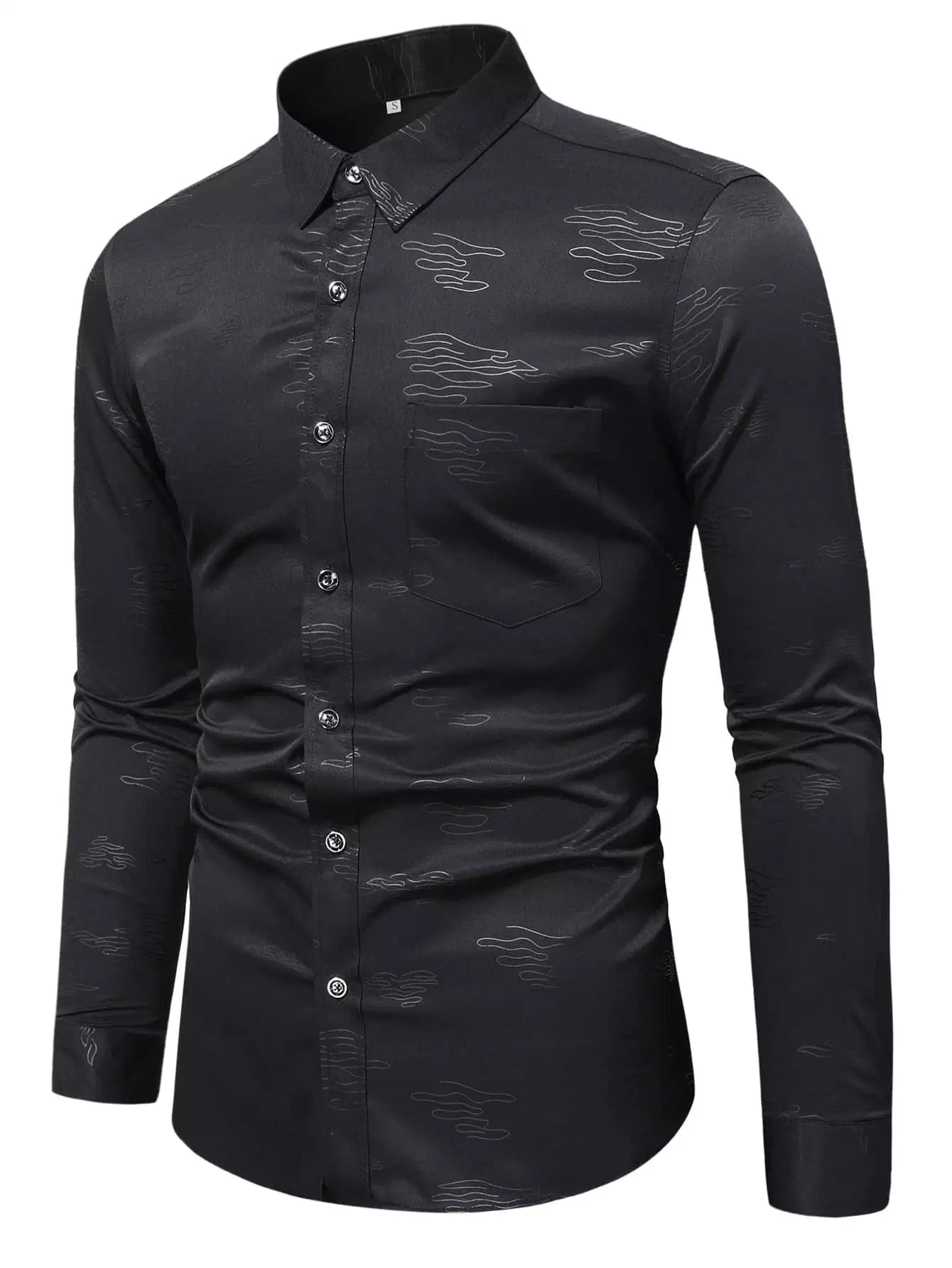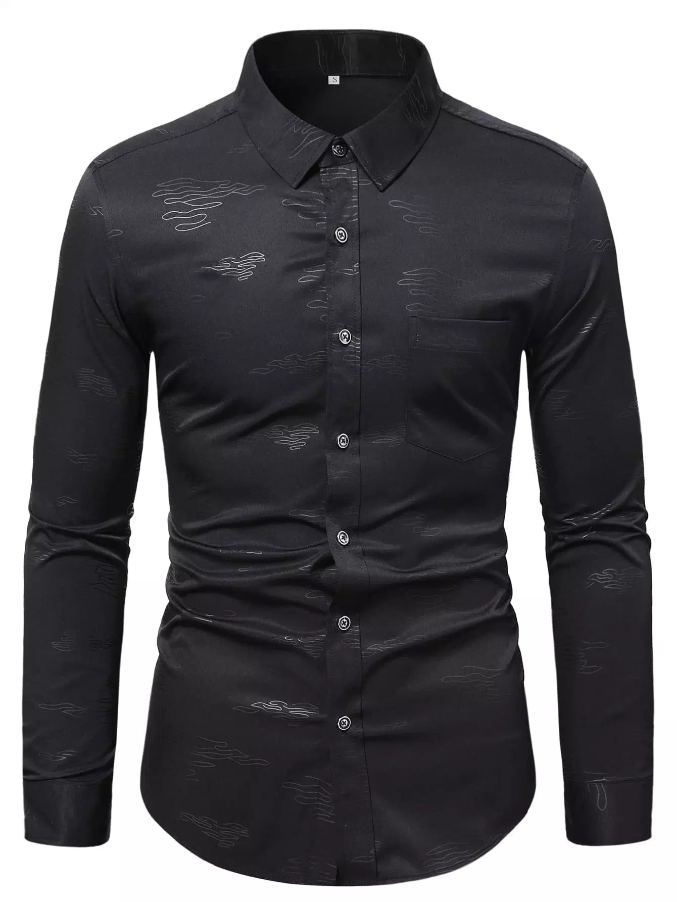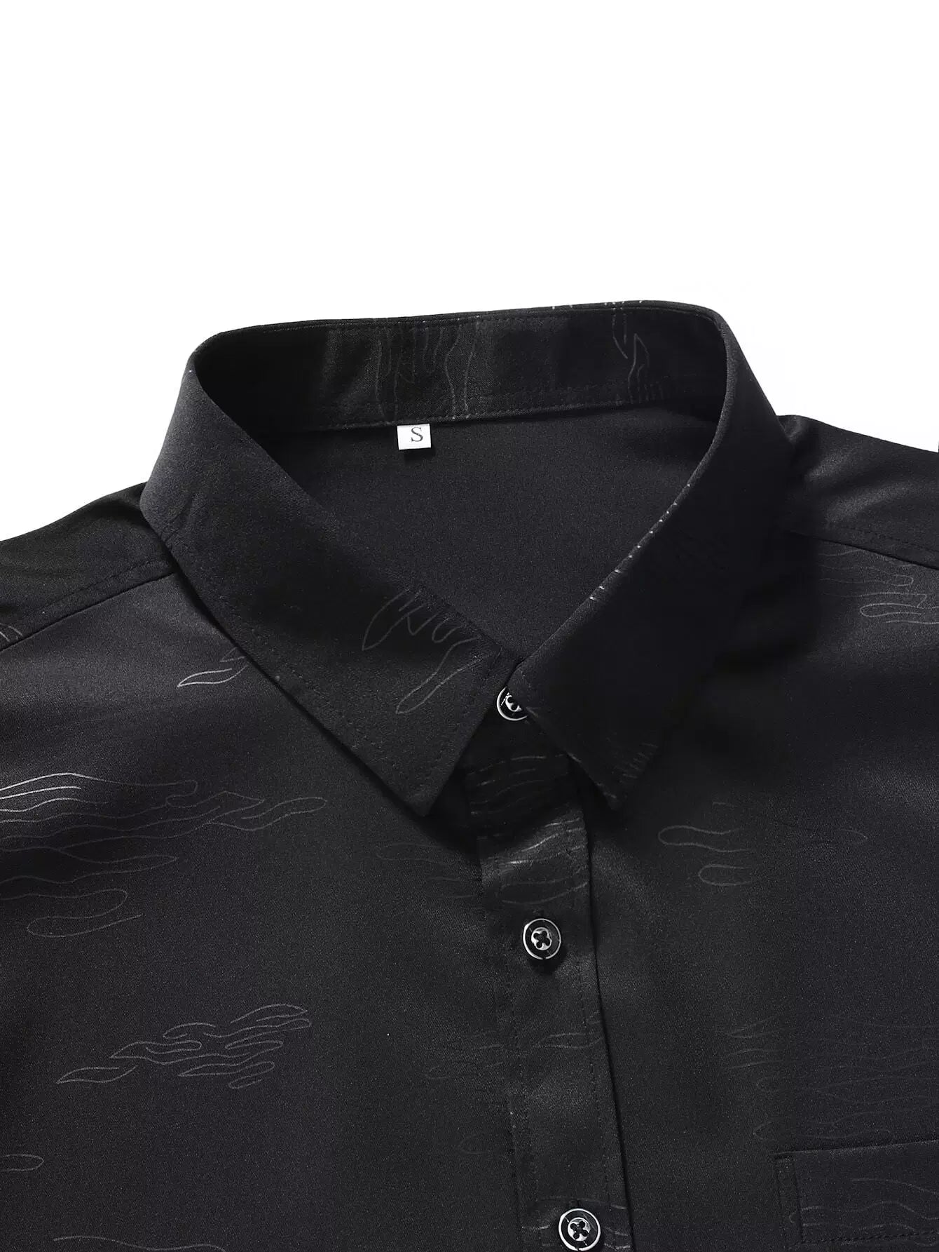 قميص رجالي بطبعة جرافيك مرقع الجيب للرجال