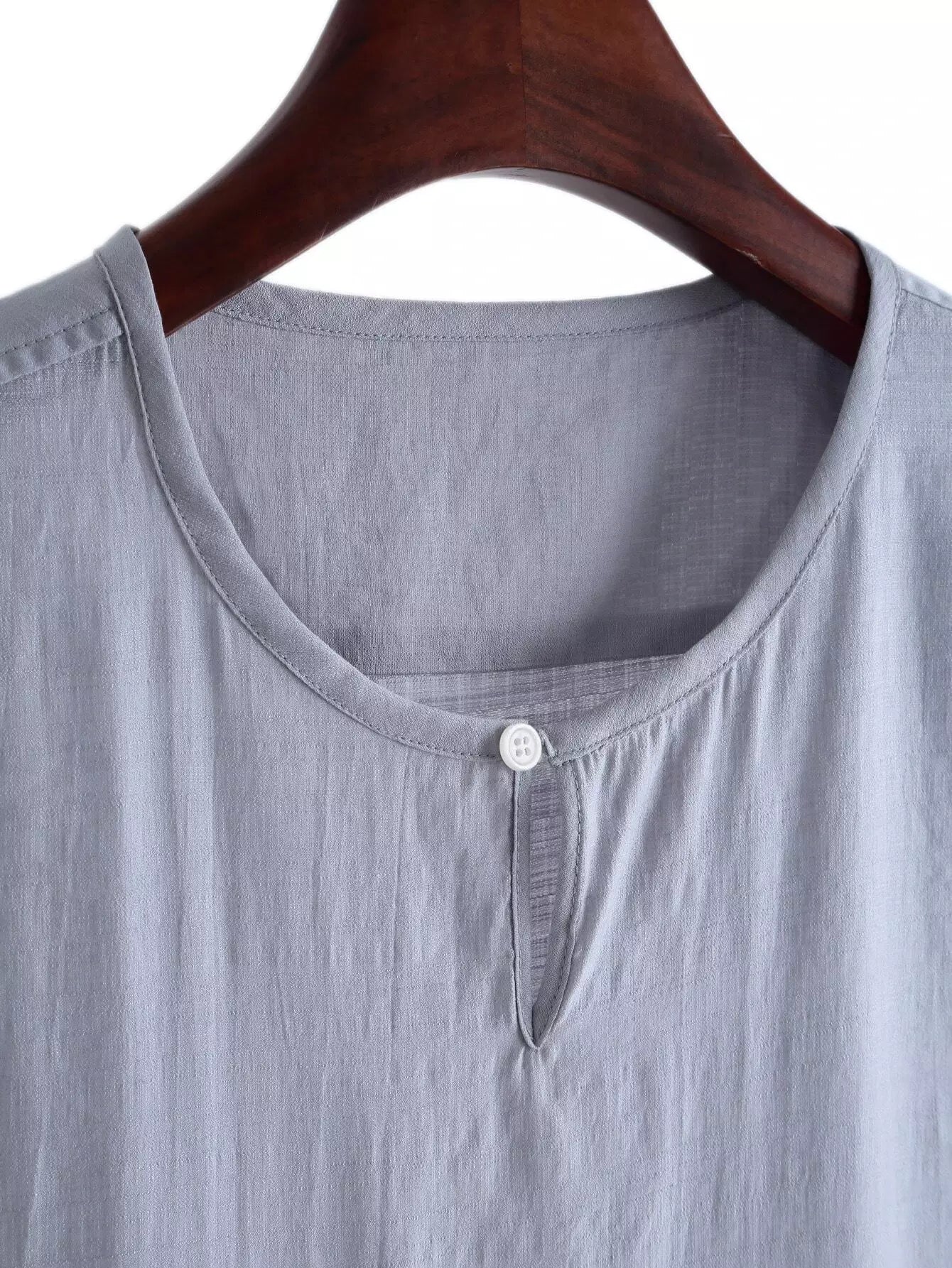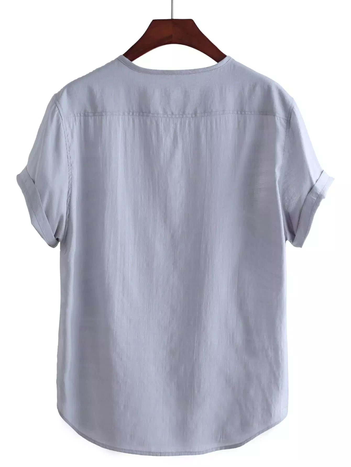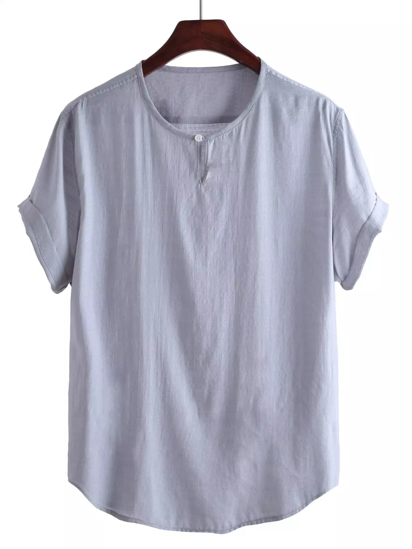 قميص رجالي سادة من الأمام ثقب المفتاح للرجال