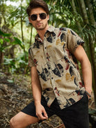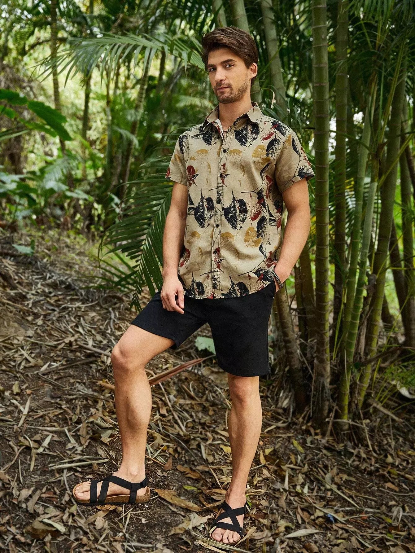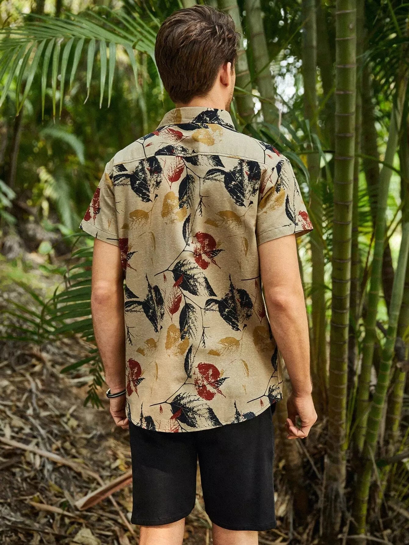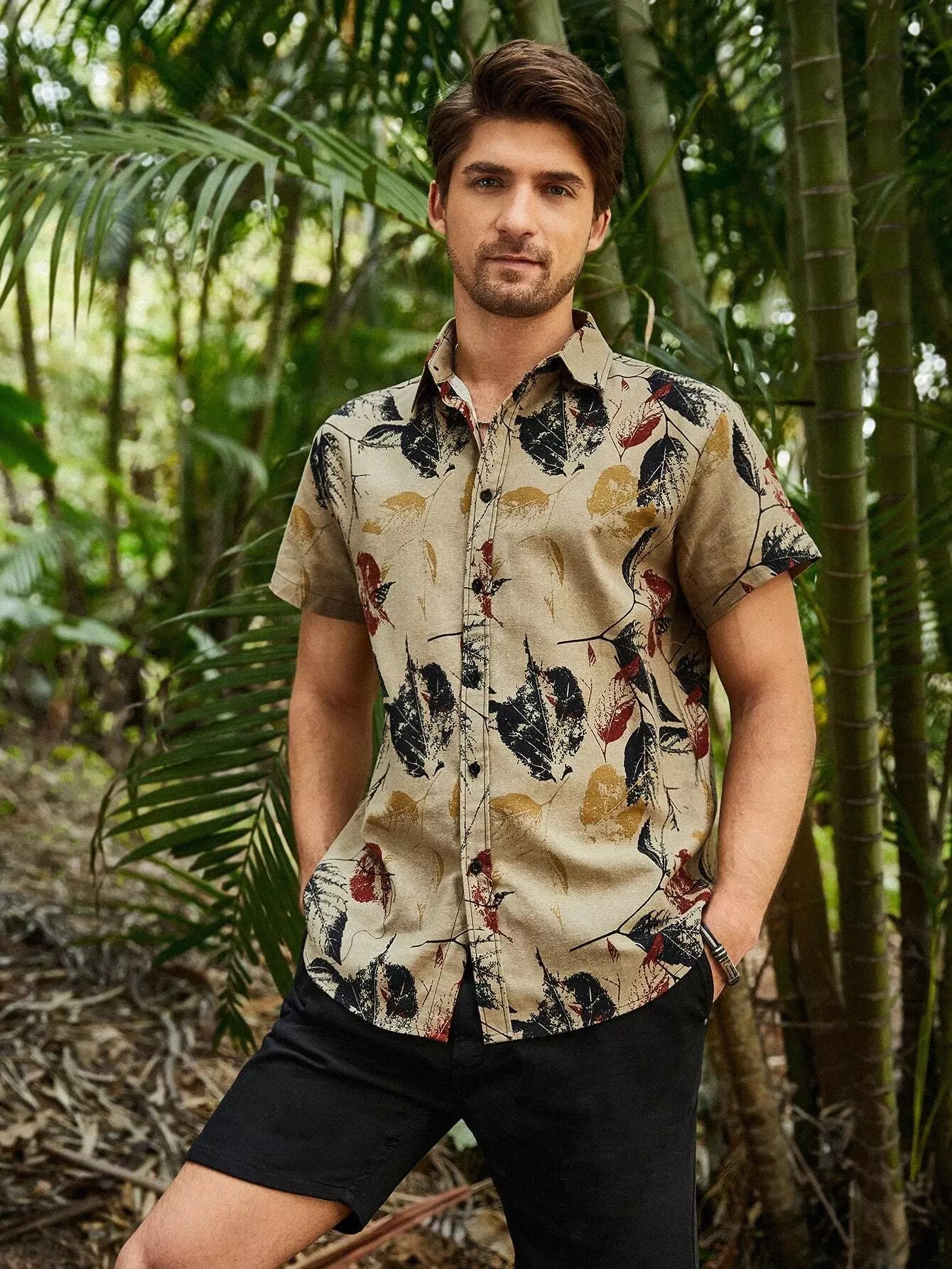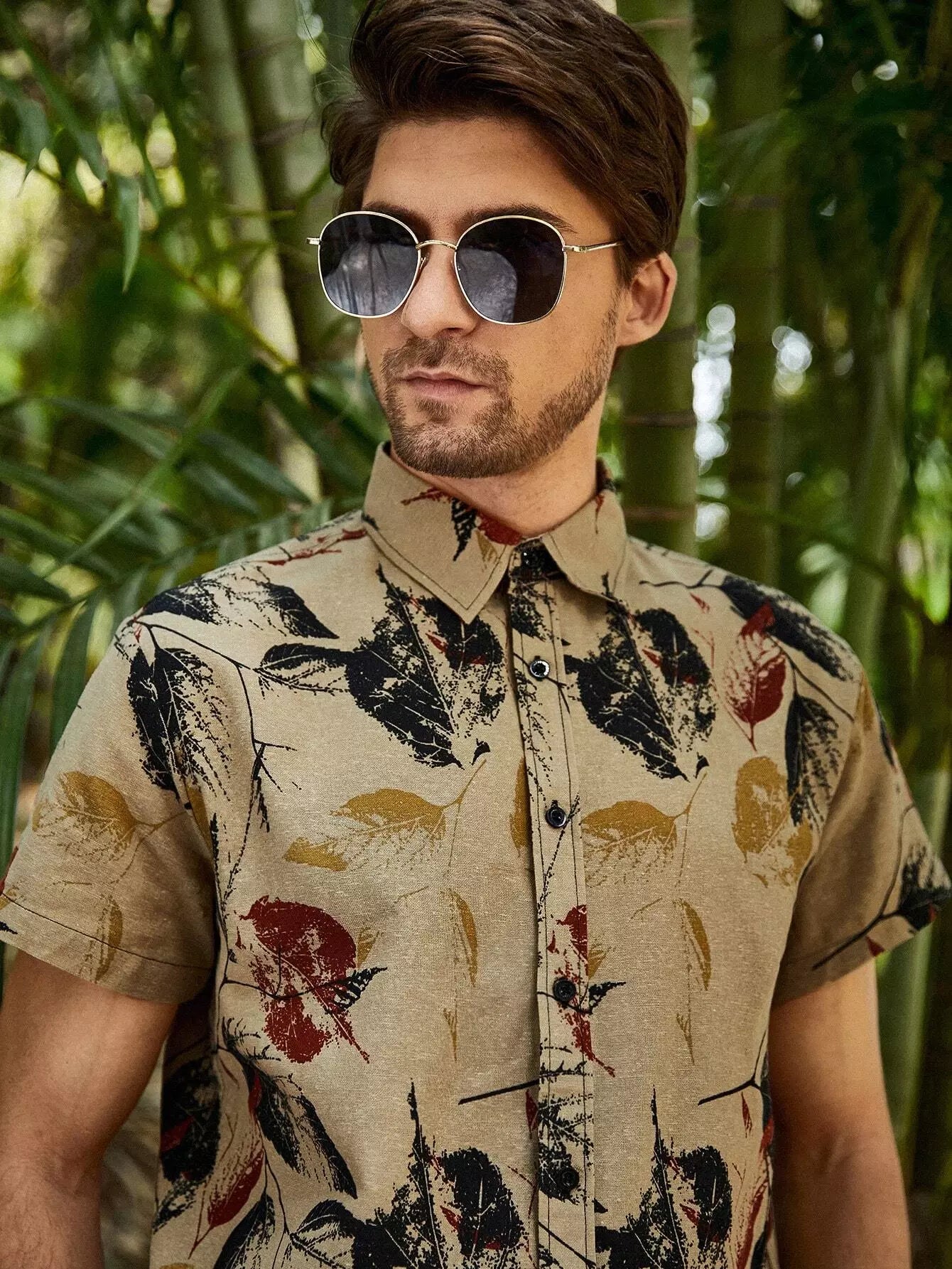 قميص رجالي بطبعة أوراق الشجر بأزرار فوق الزر