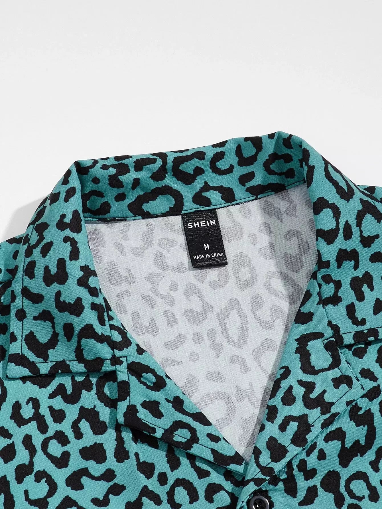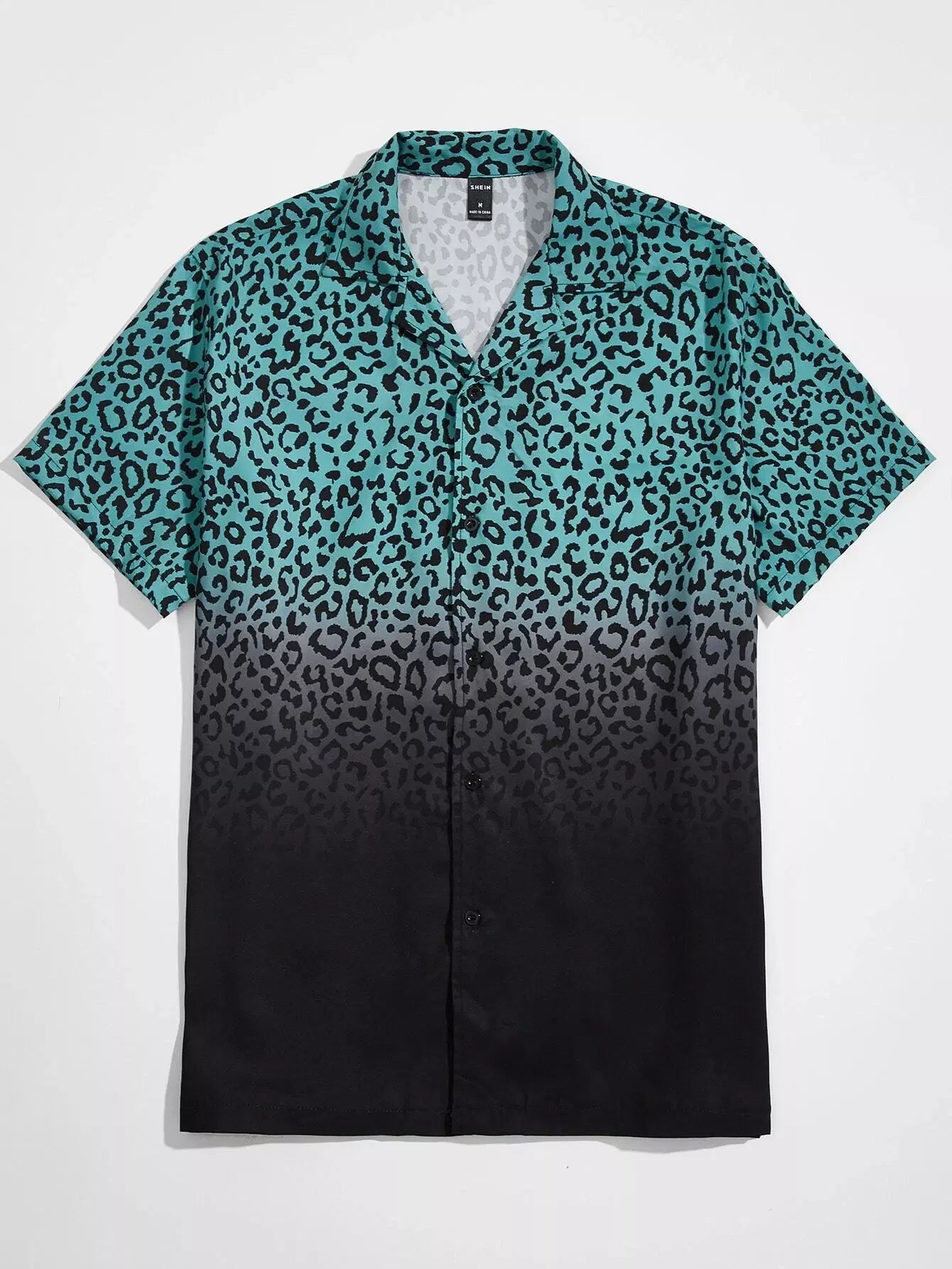 قميص رجالي بطبعة جلد النمر وظلال الألوان