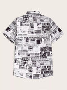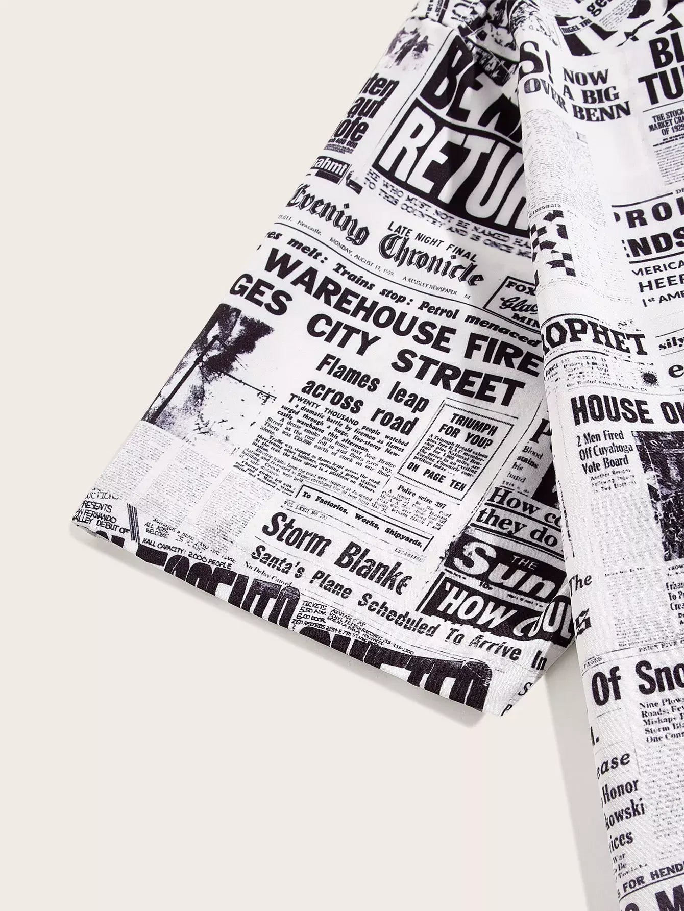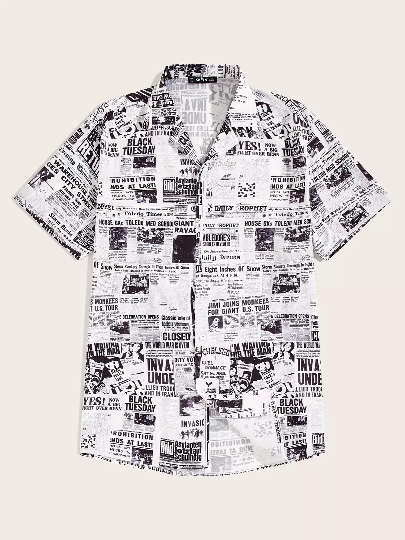 قميص رجالي بياقة ريفير بطبعة صحيفة