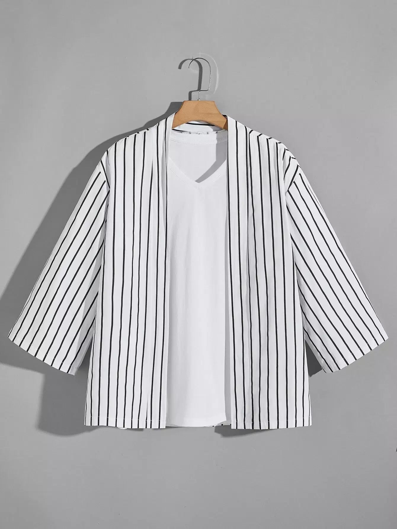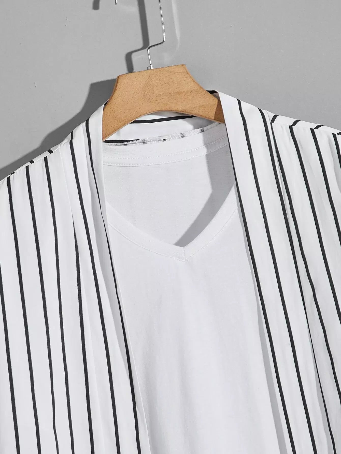 قميص رجالي مخطط مفتوح من الأمام مفتوح بدون تي شيرت