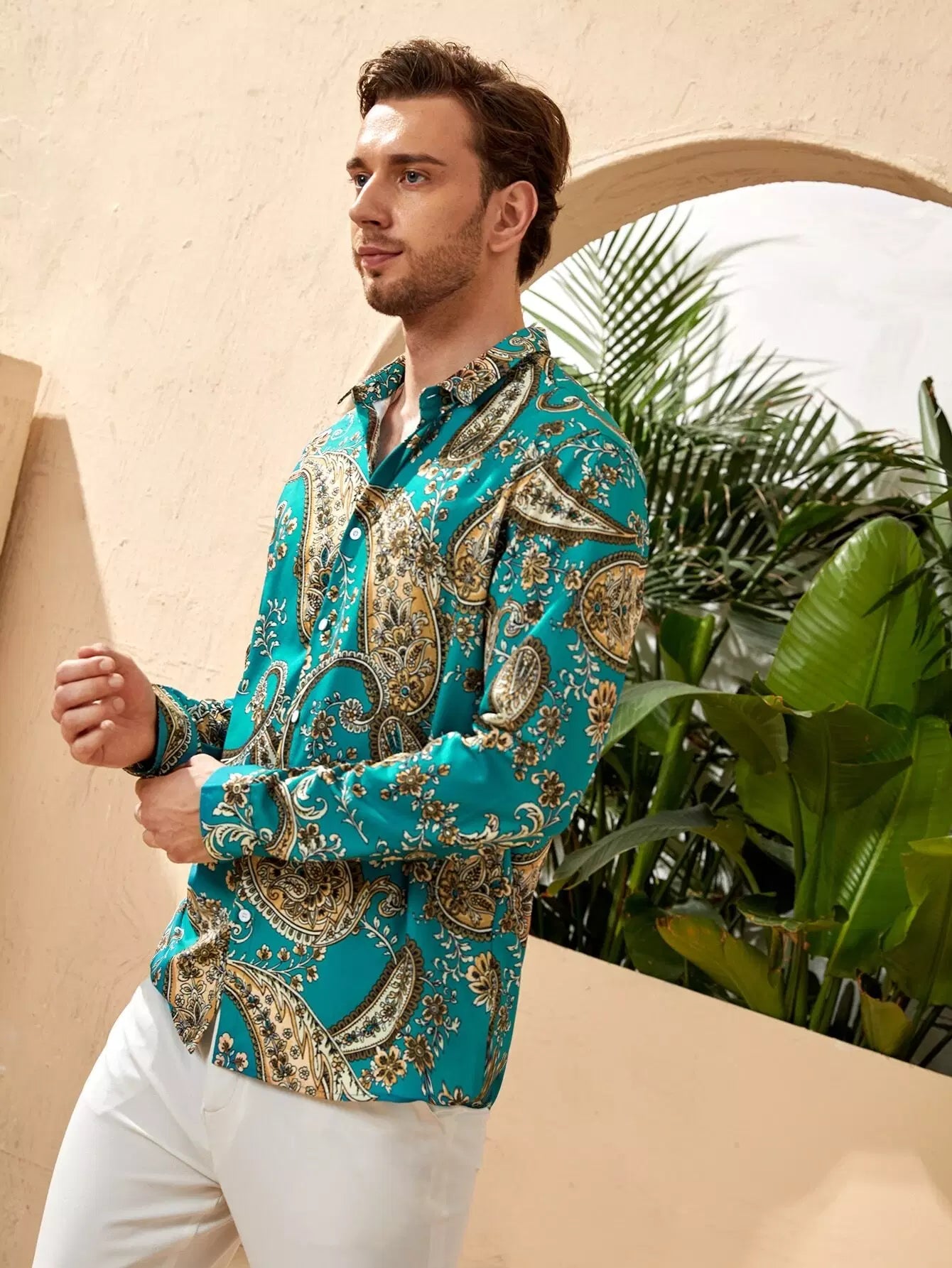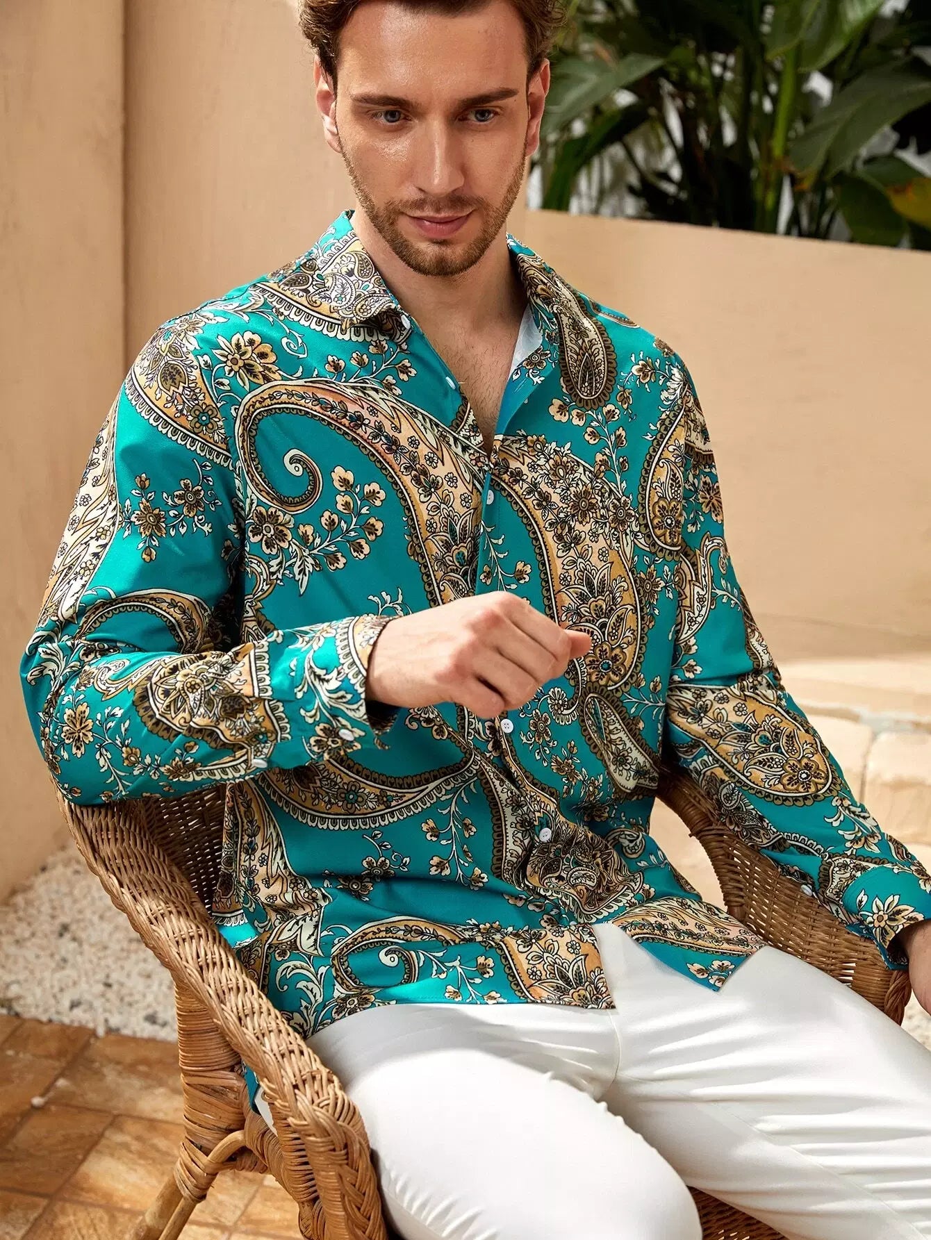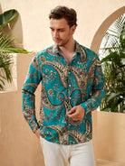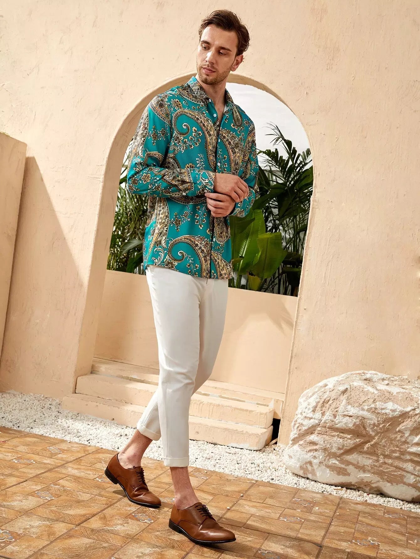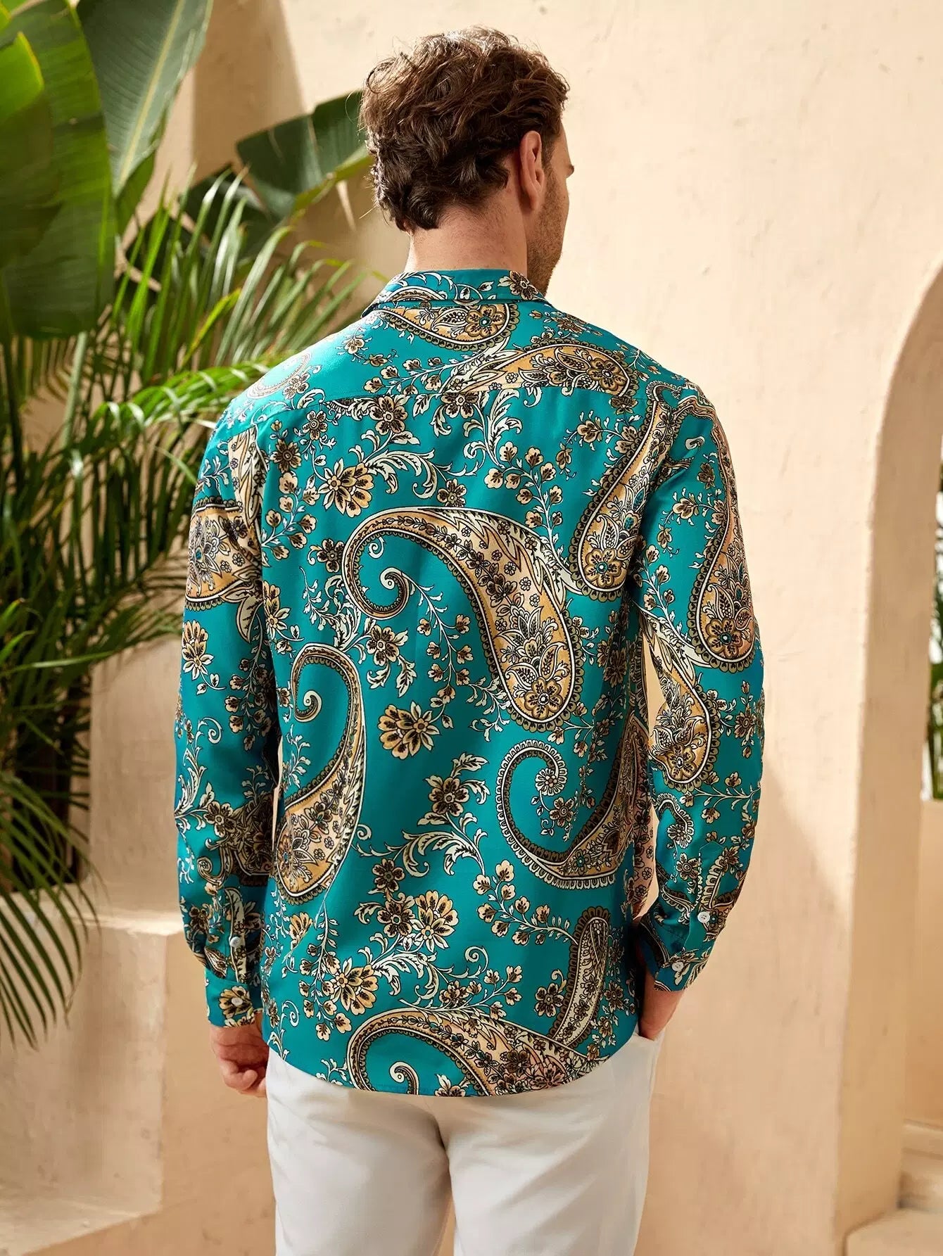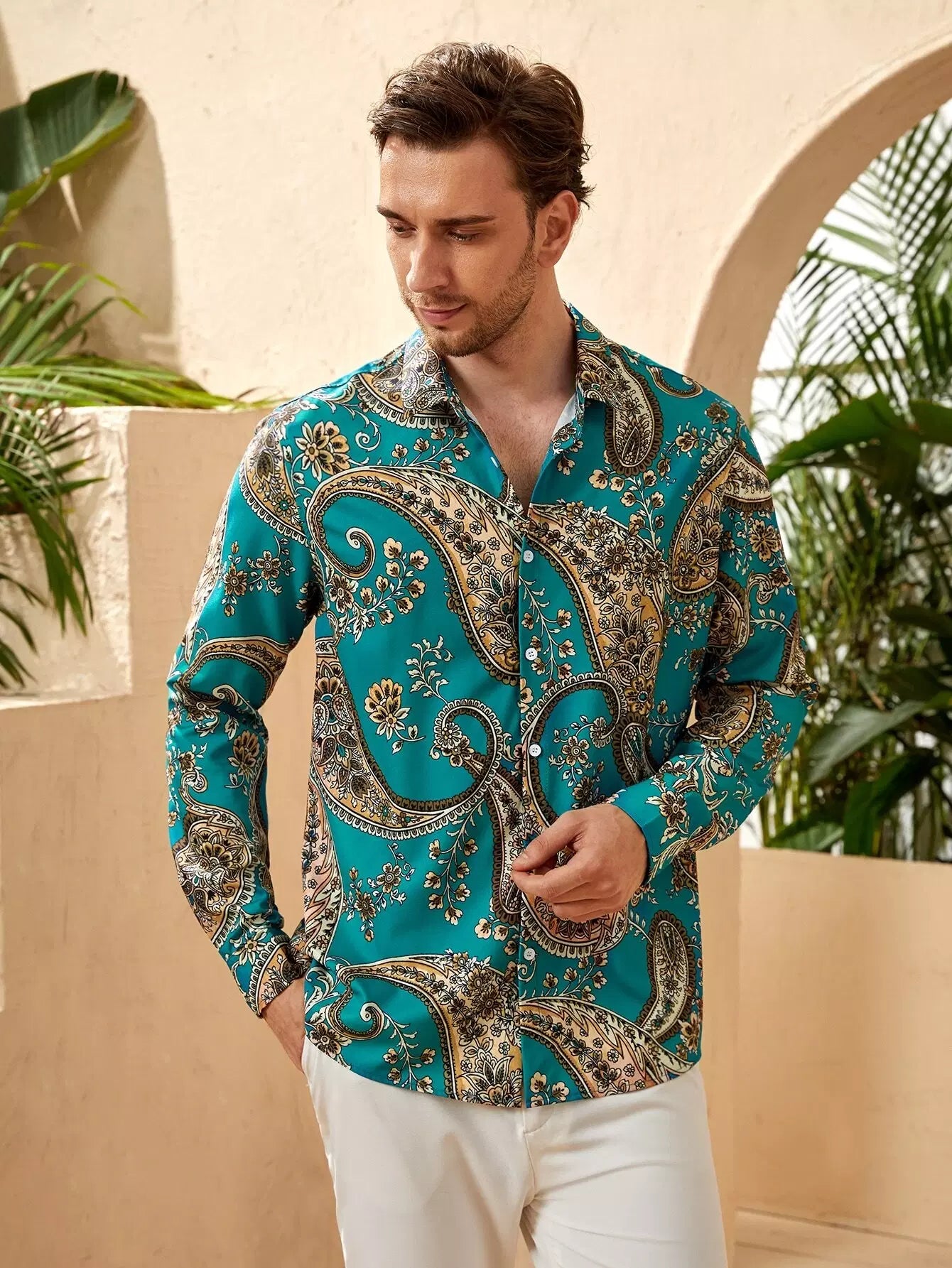قميص رجالي بطبعة بيزلي مطبوع بأزرار من الداخل والخارج