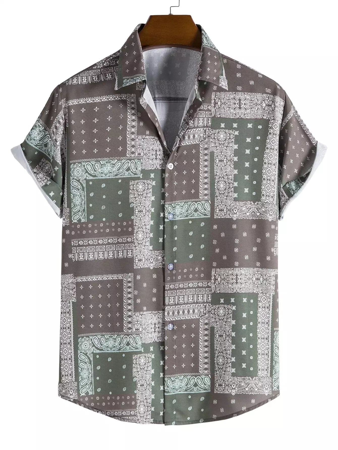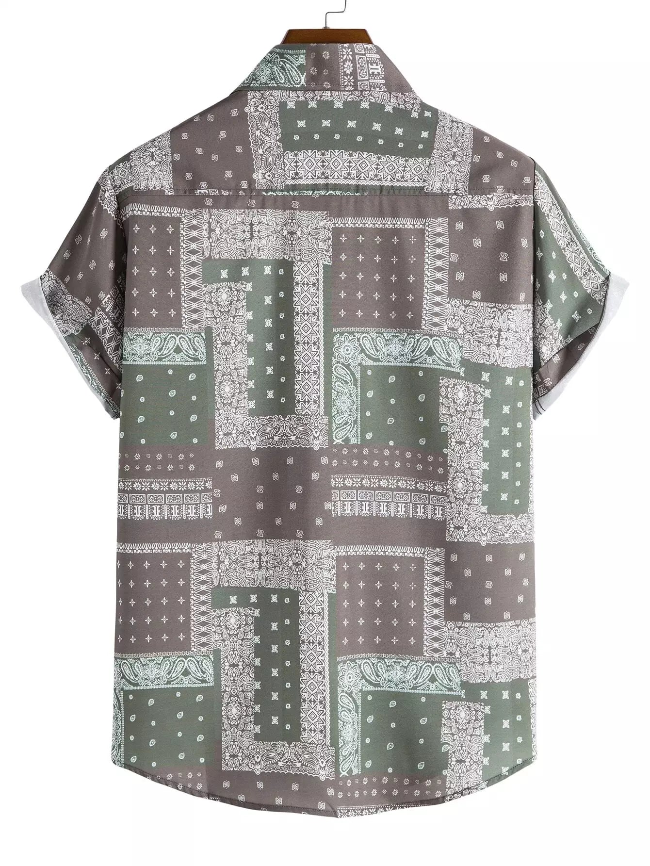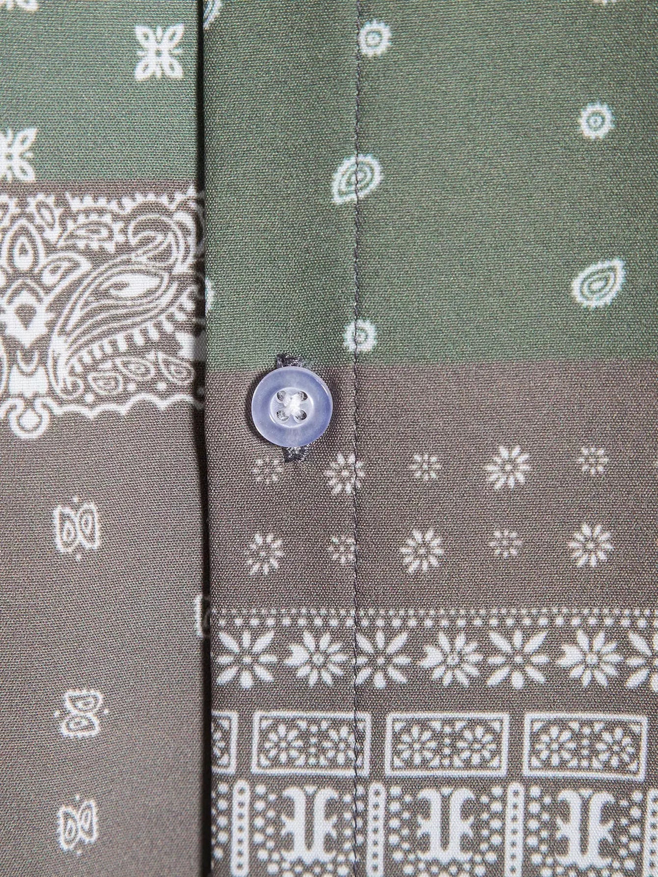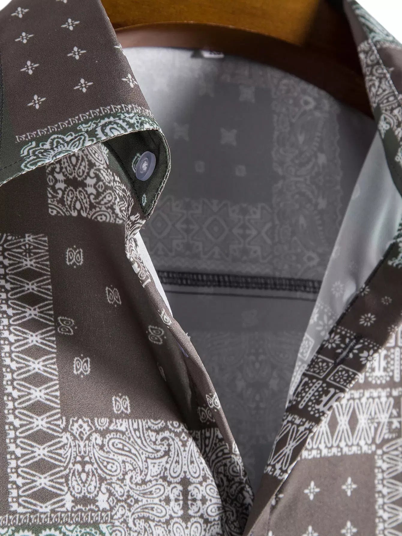 قميص رجالي بطبعة بيزلي بأزرار فوق الزر