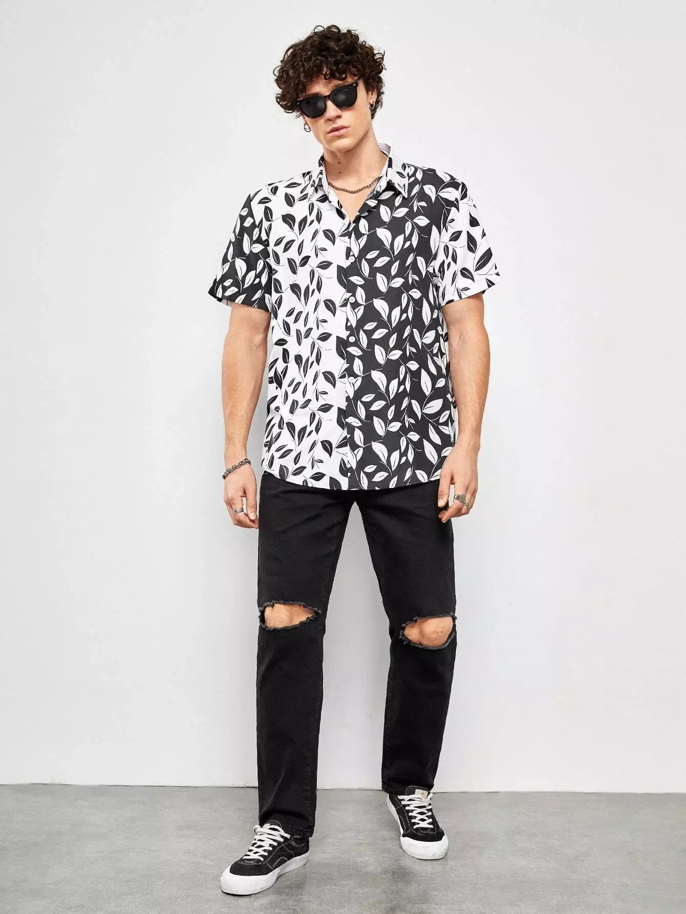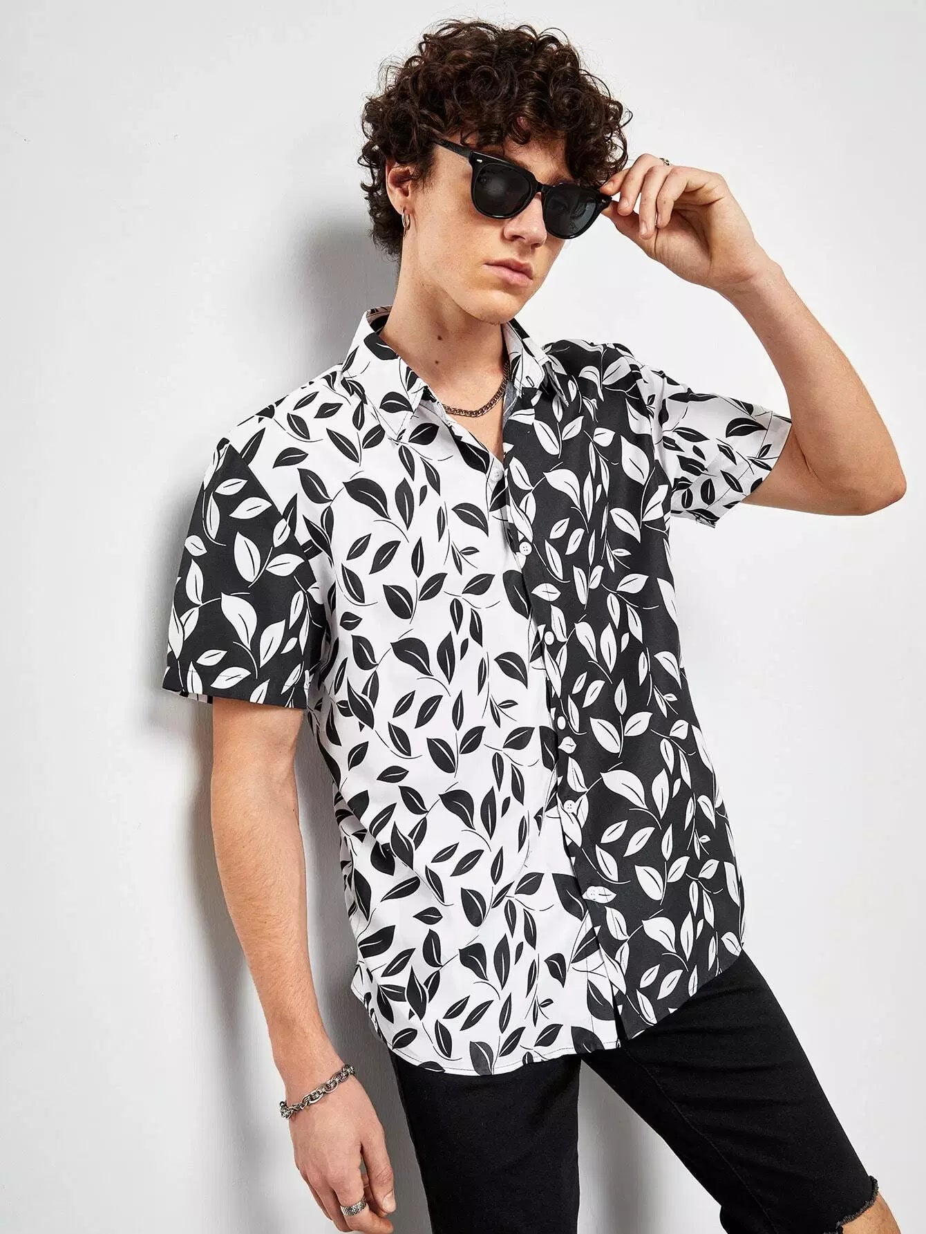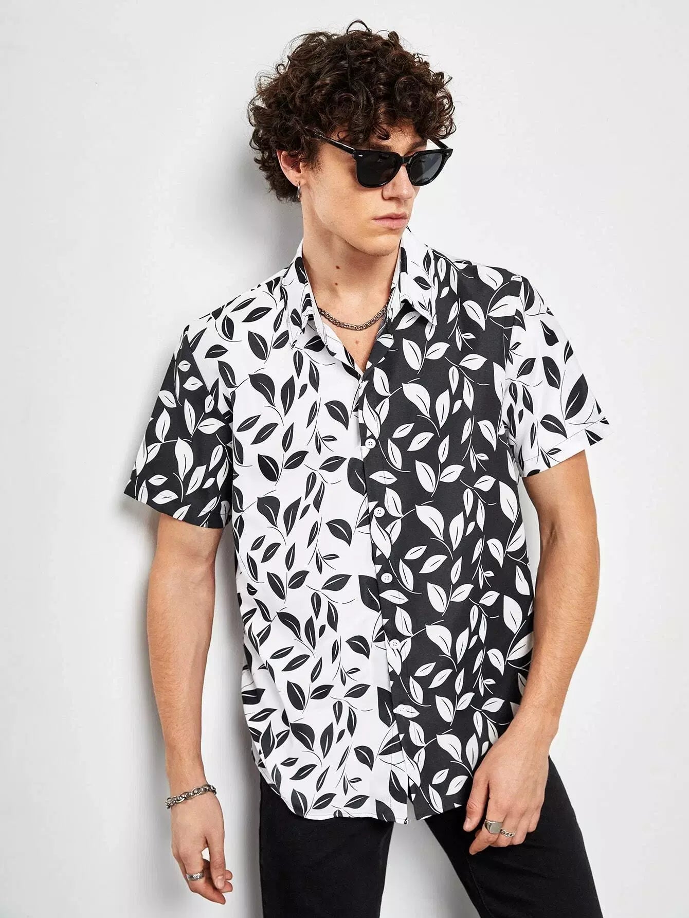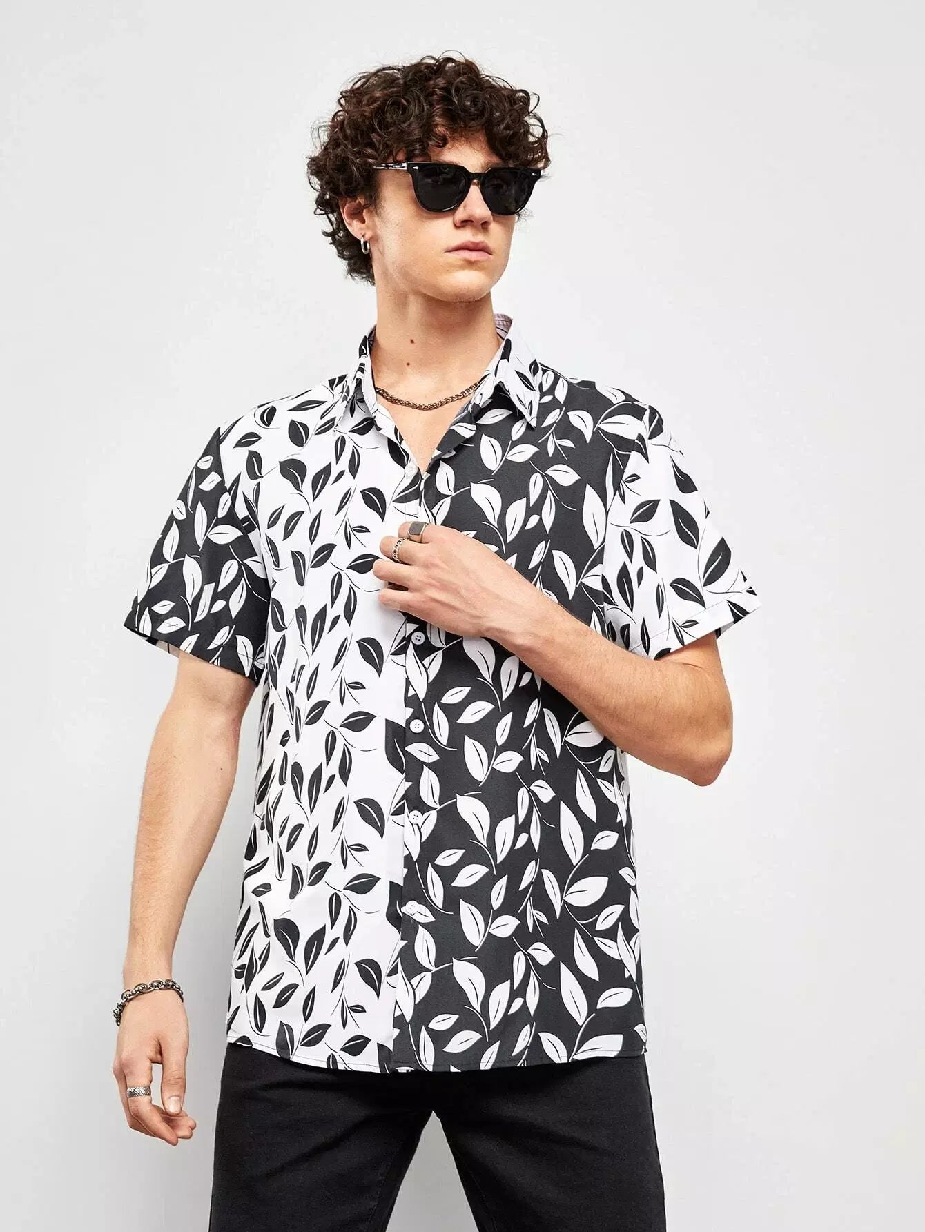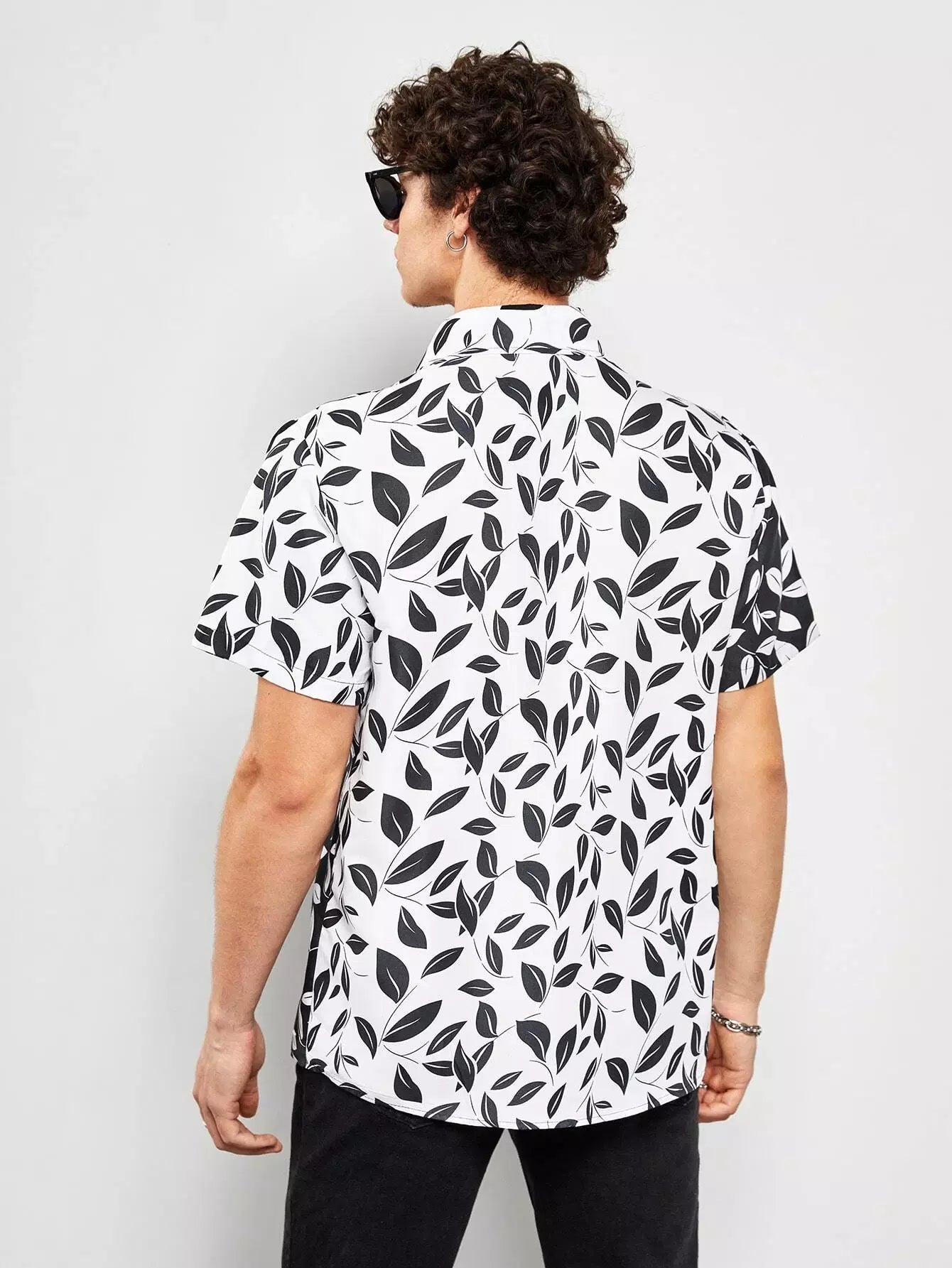 قميص رجالي بطبعة نباتات عشوائية