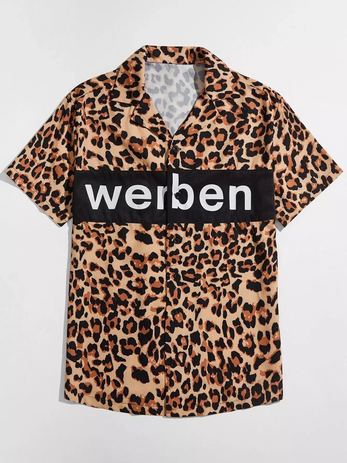 قميص رجالي مطبوع بطبعة عشوائية على الرقبة العنق