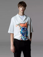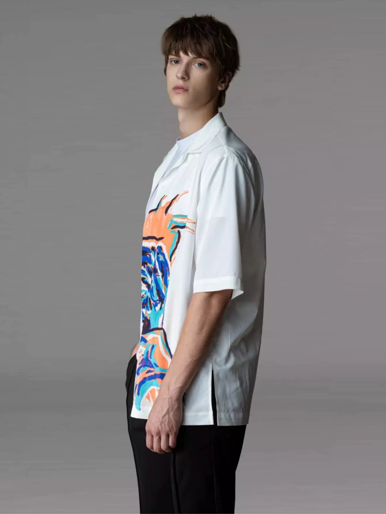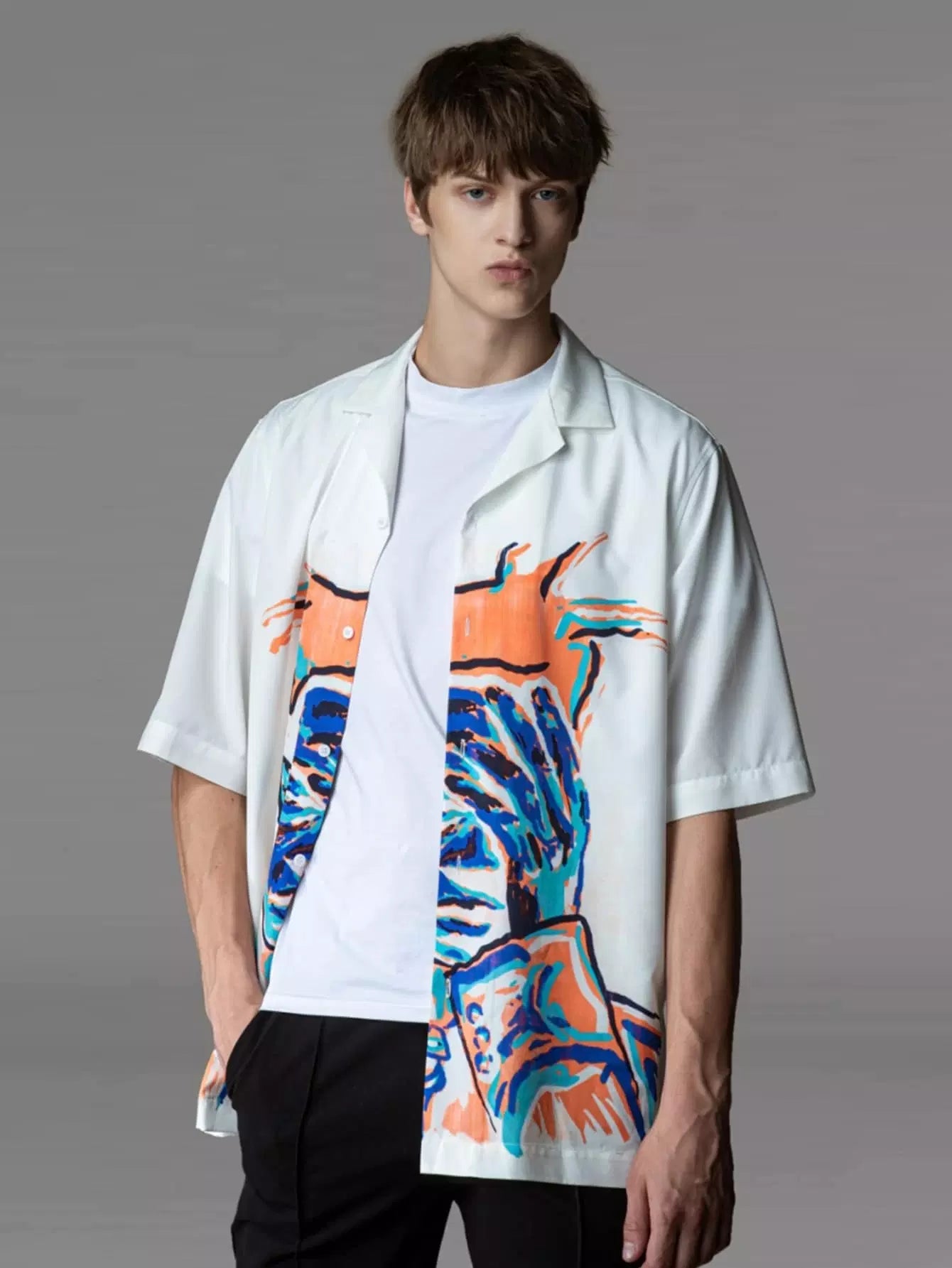 قميص رجالي بياقة ريفيير بغطاء بلا ياقة رجالي