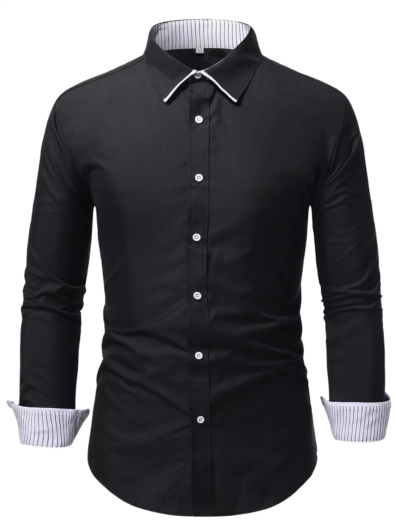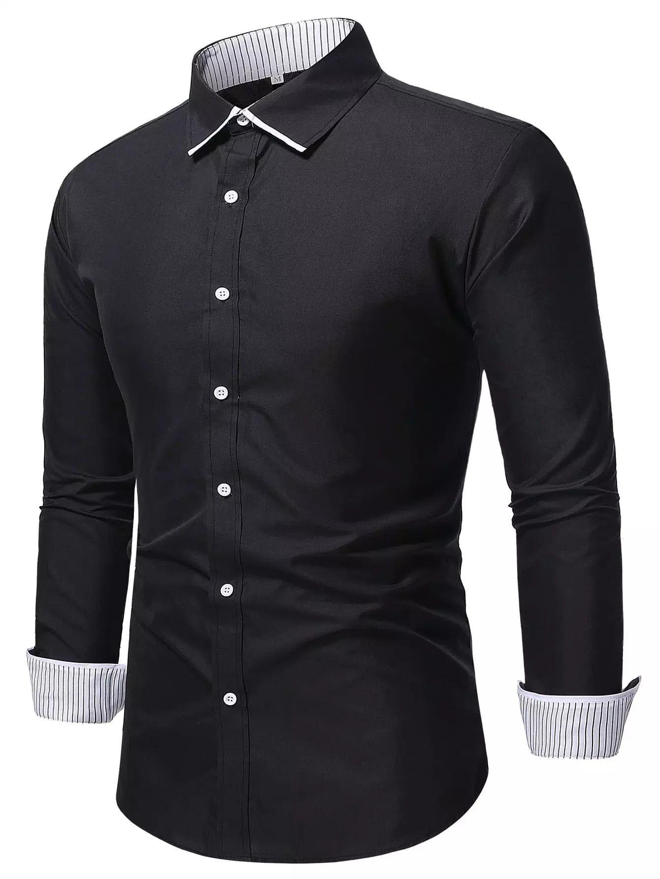 قميص رجالي مخطط بأزرار بأكمام مخططة