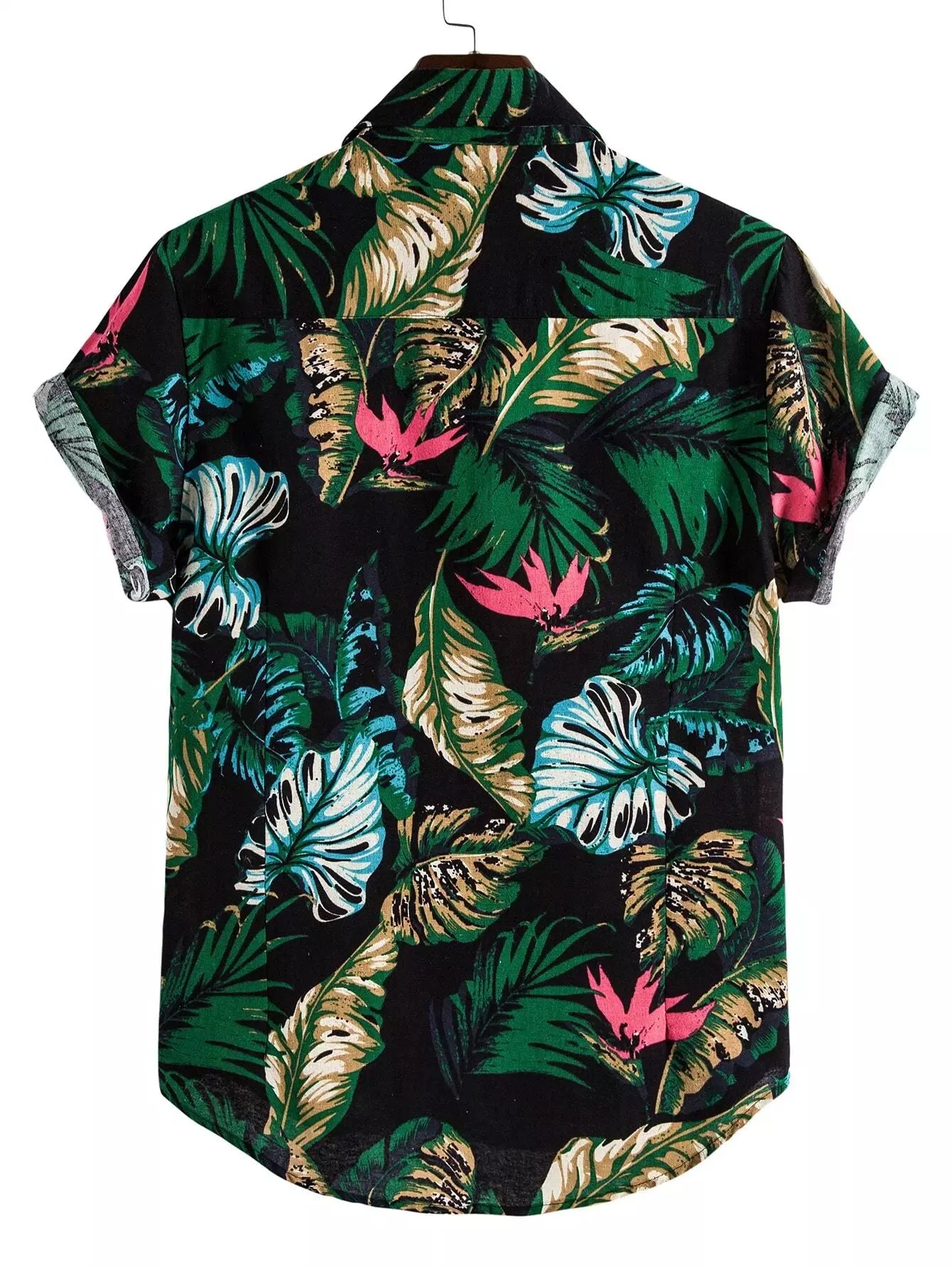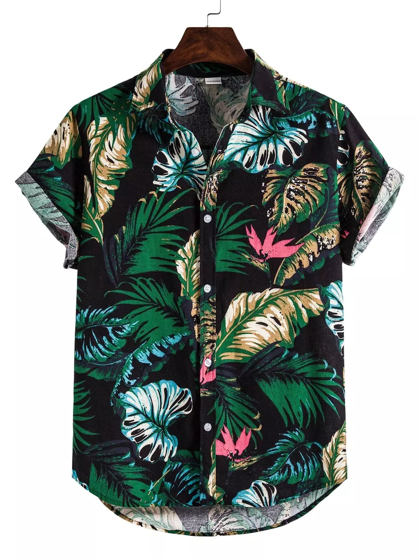 قميص رجالي بطبعة استوائية بطبعة استوائية بأزرار فوق الزر