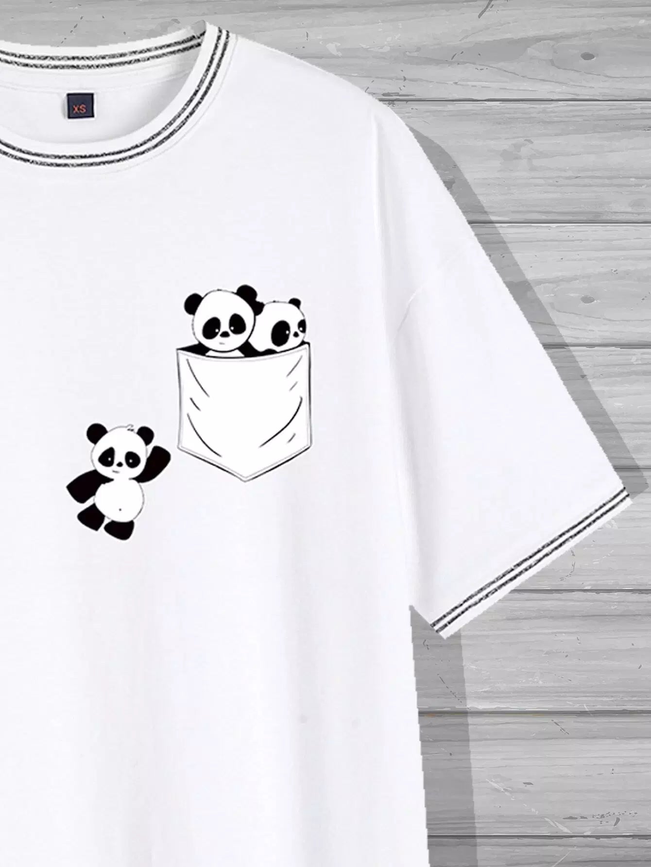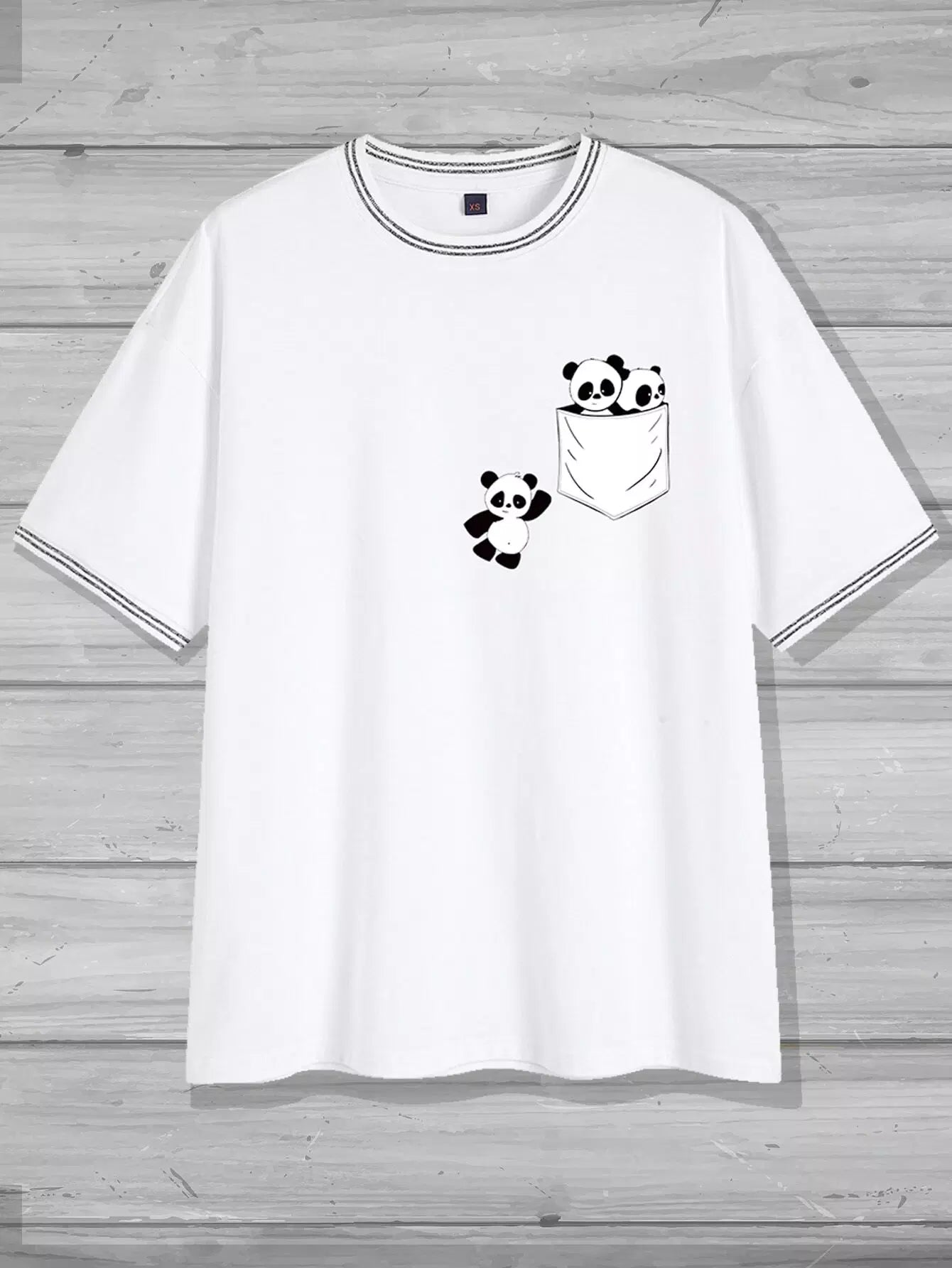 تي شيرت رجالي بخطوط مزخرفة برسومات كرتونية لحيوان الباندا