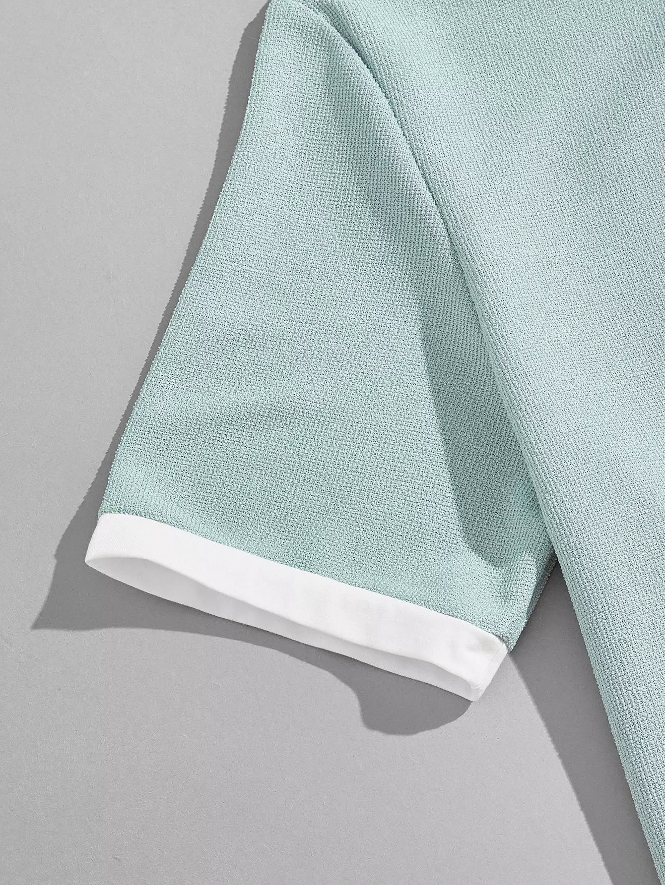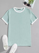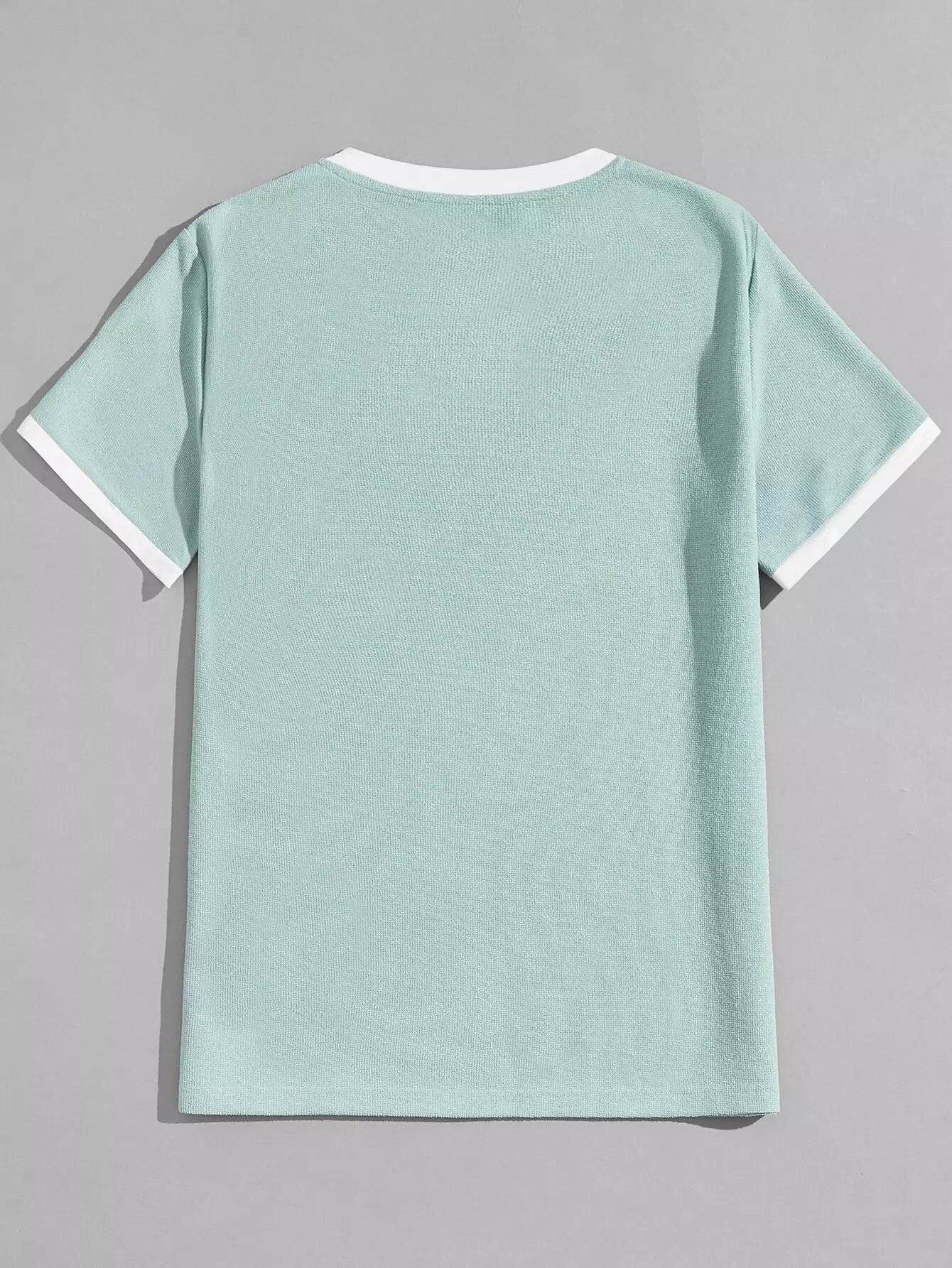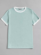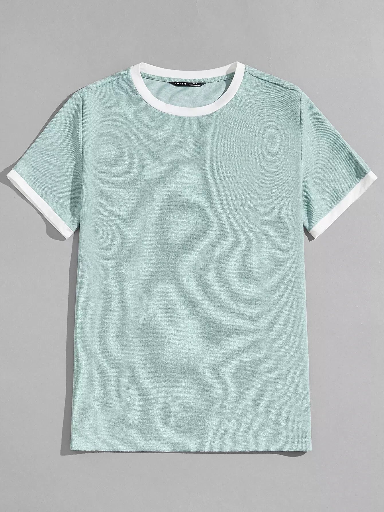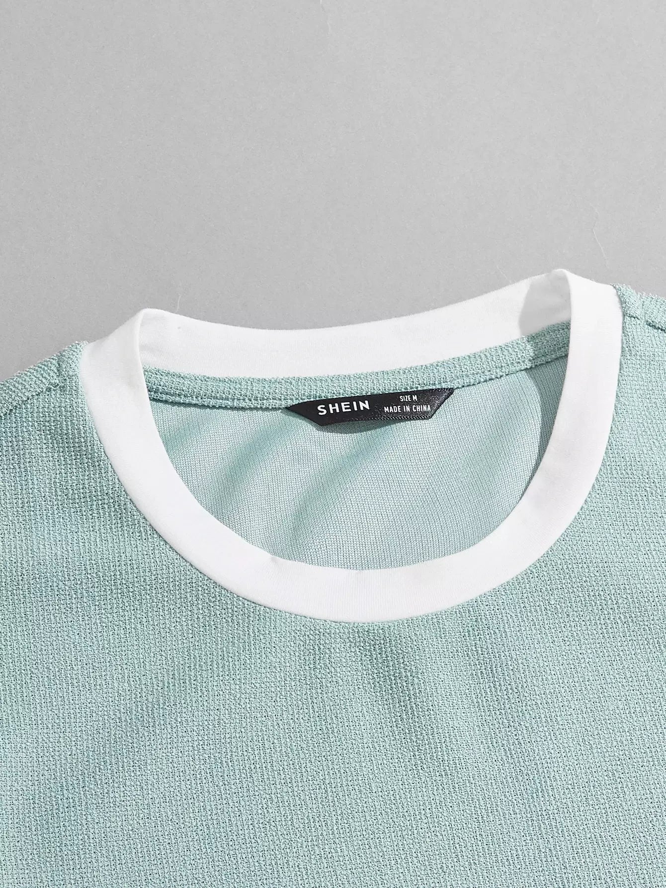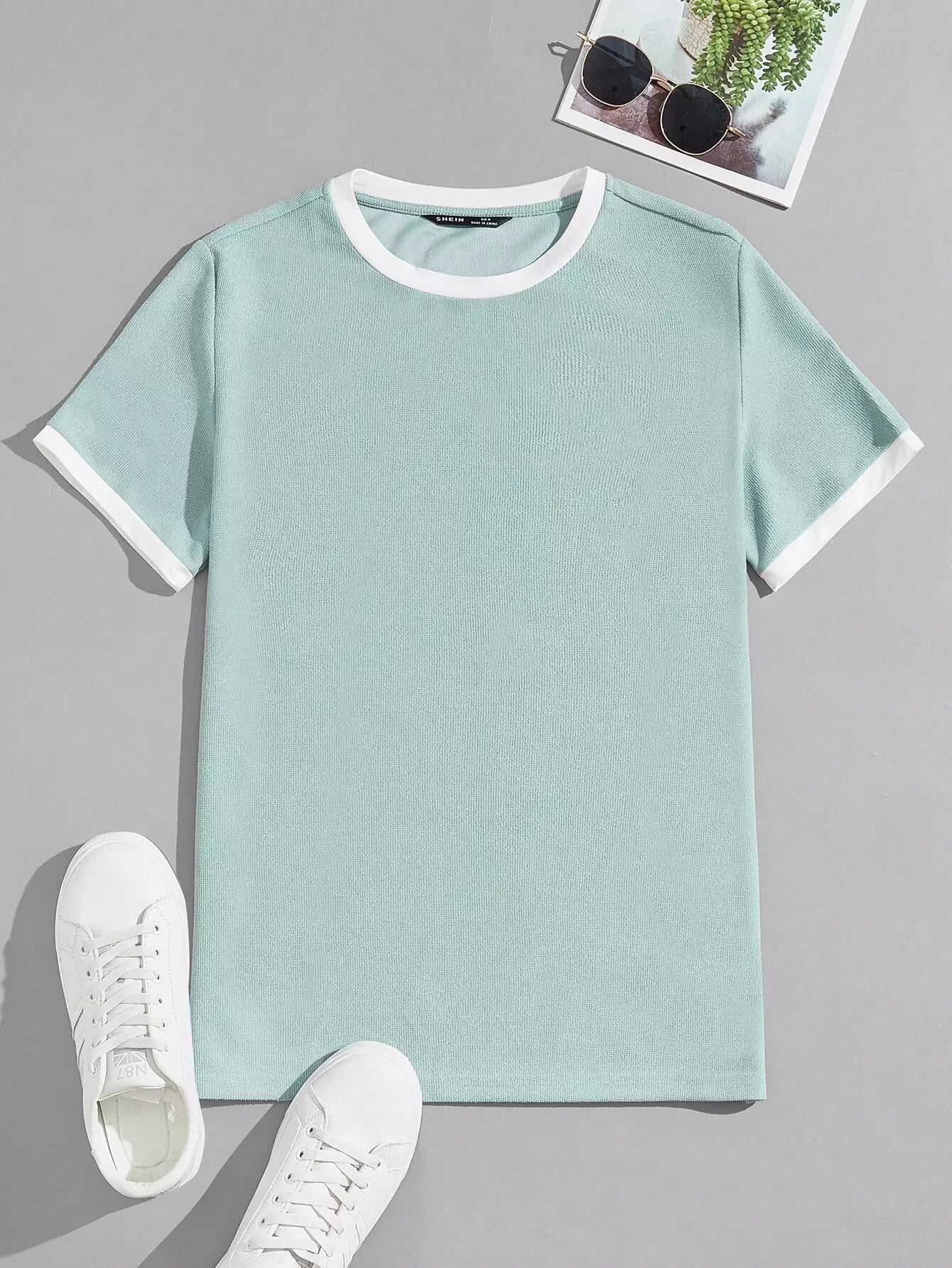 تي شيرت رجالي بياقة دائرية برقبة دائرية بلون مغاير