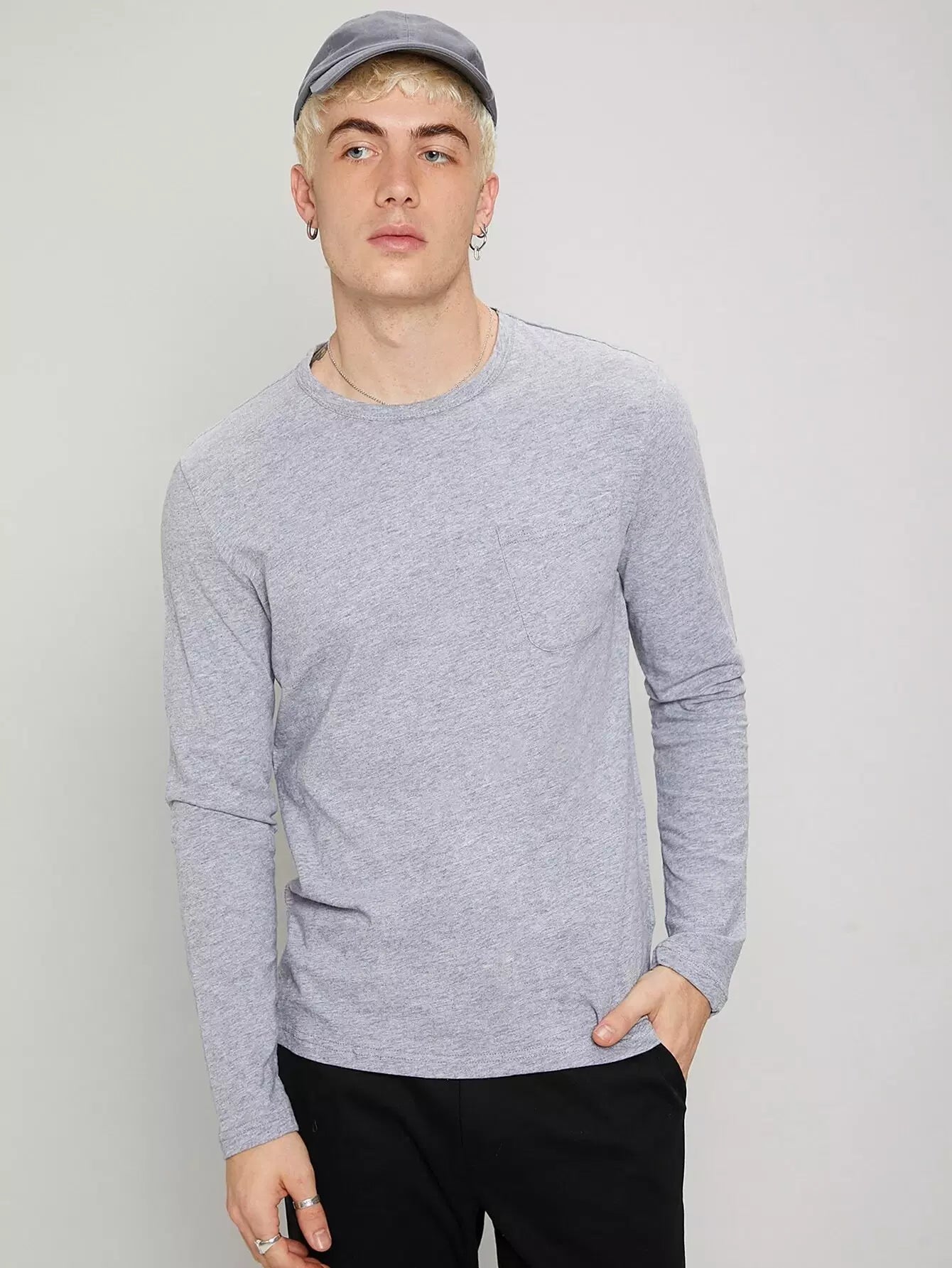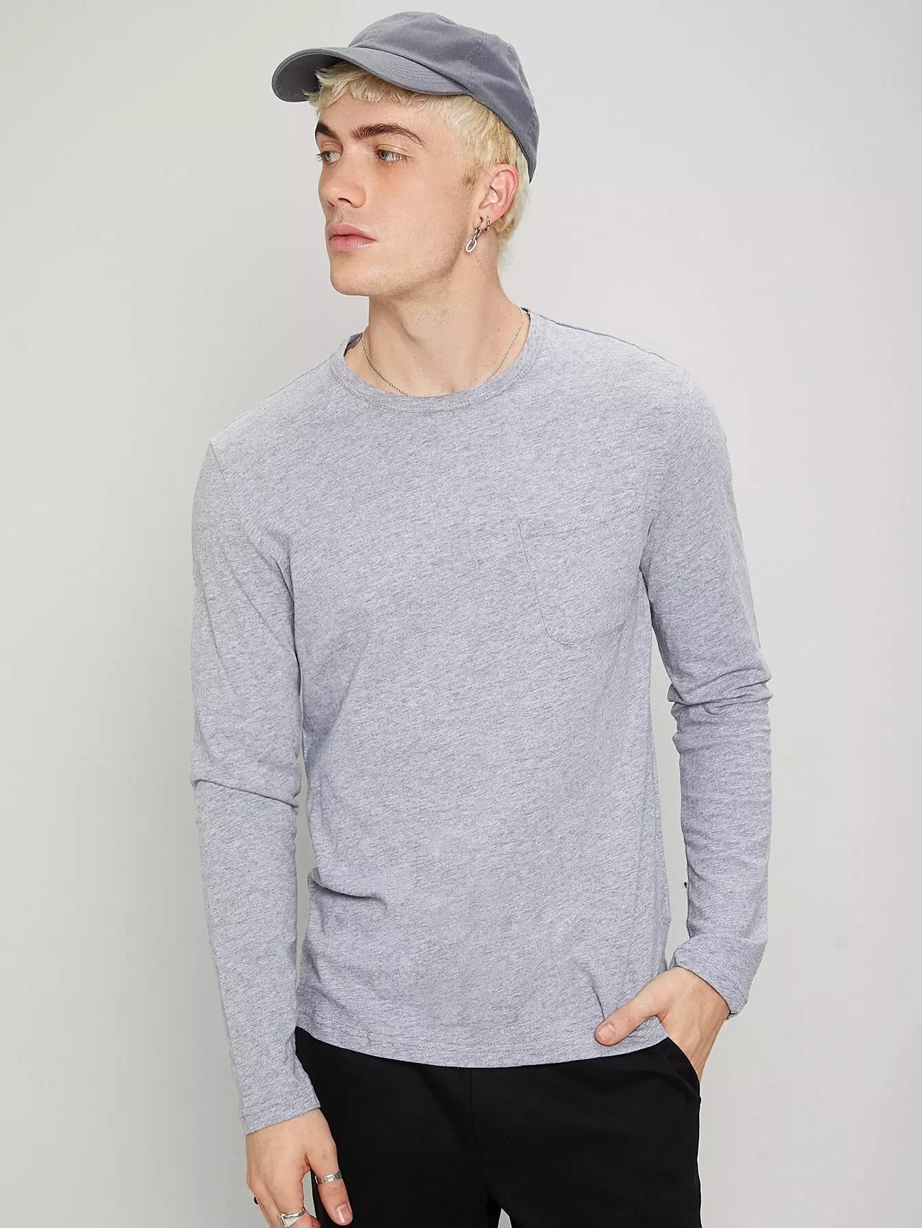 تي شيرت رجالي قطن سادة بجيب أمامي للرجال