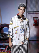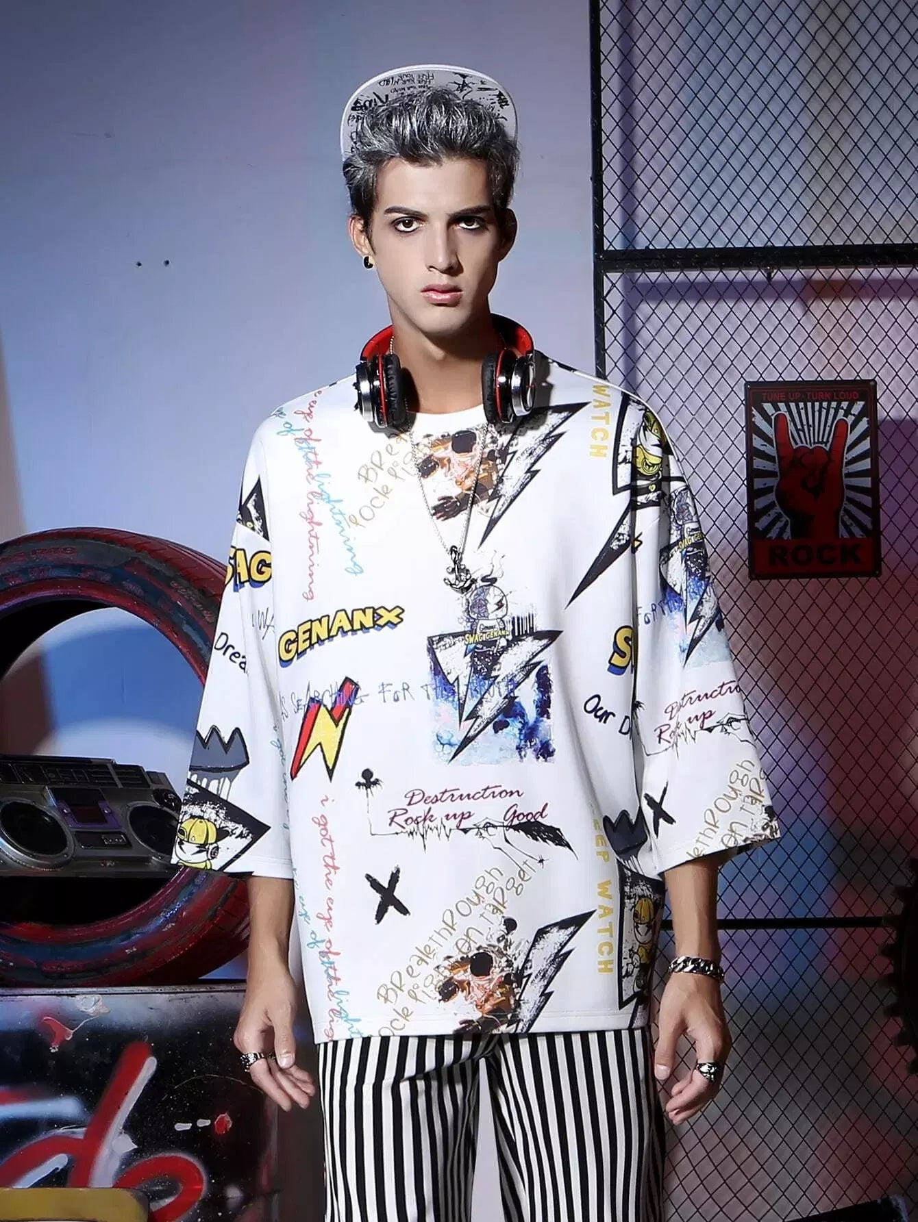 تيشيرت رجالي منسدل الكتف بحروف ورسومات كارتونية
