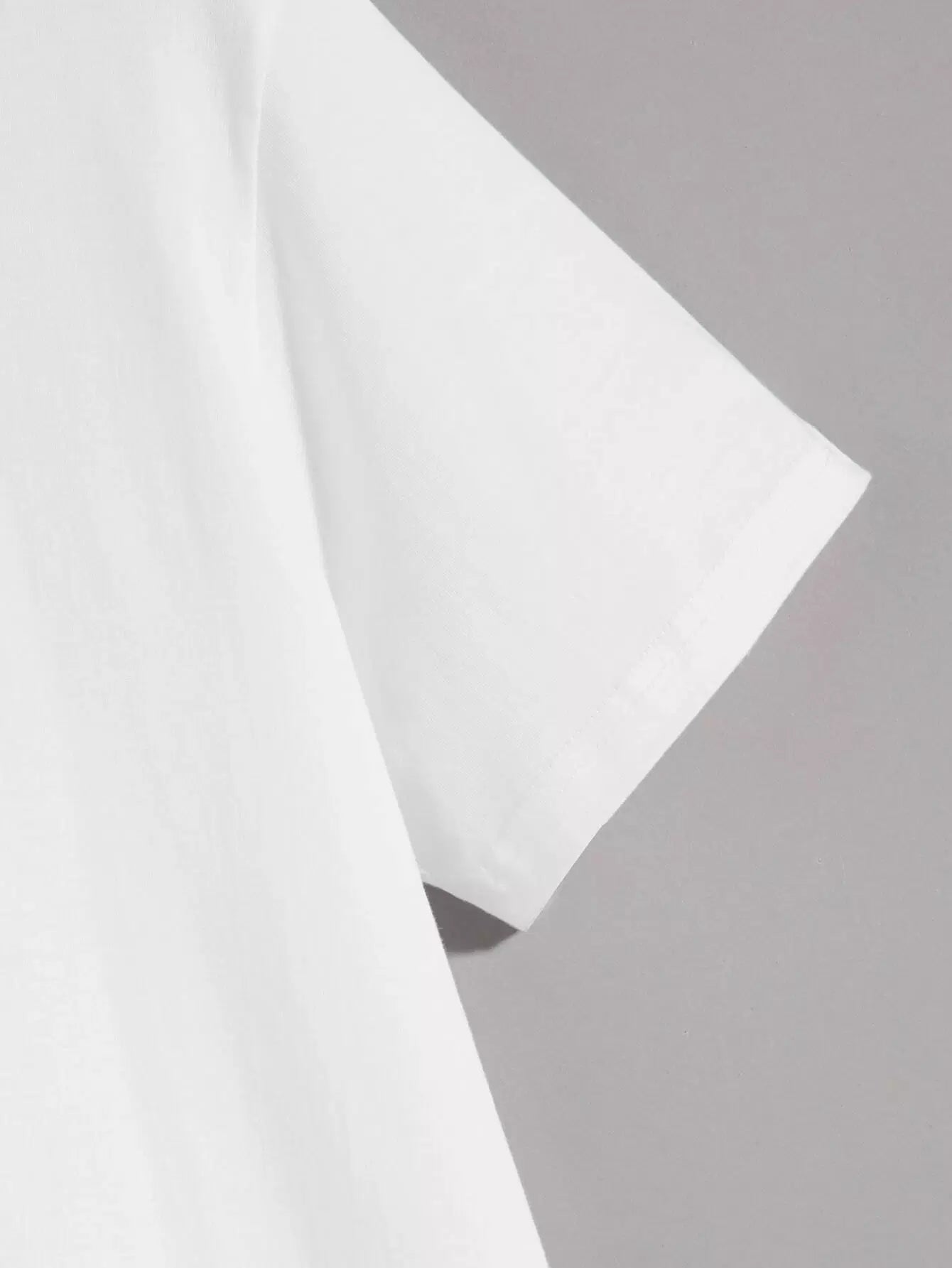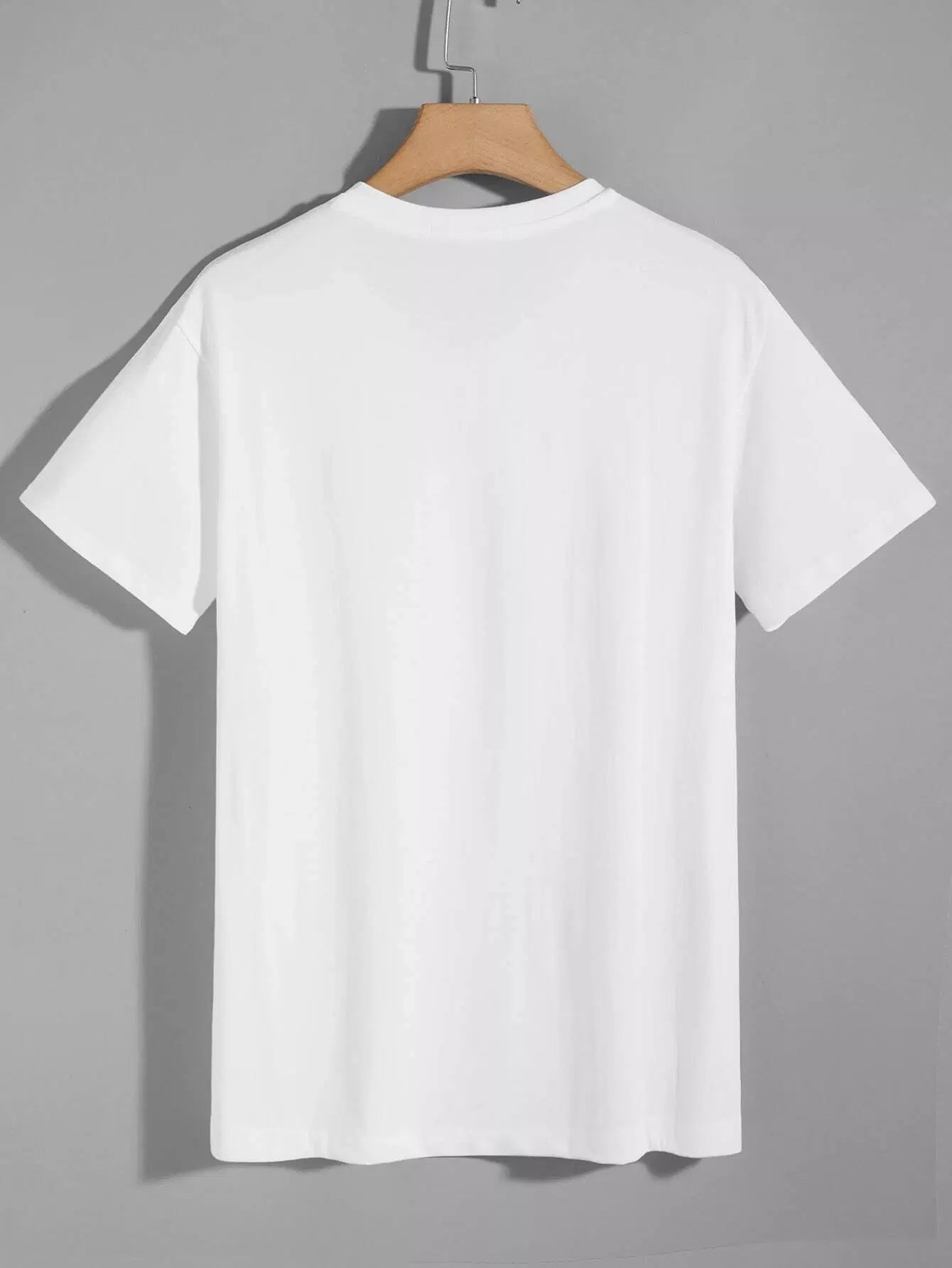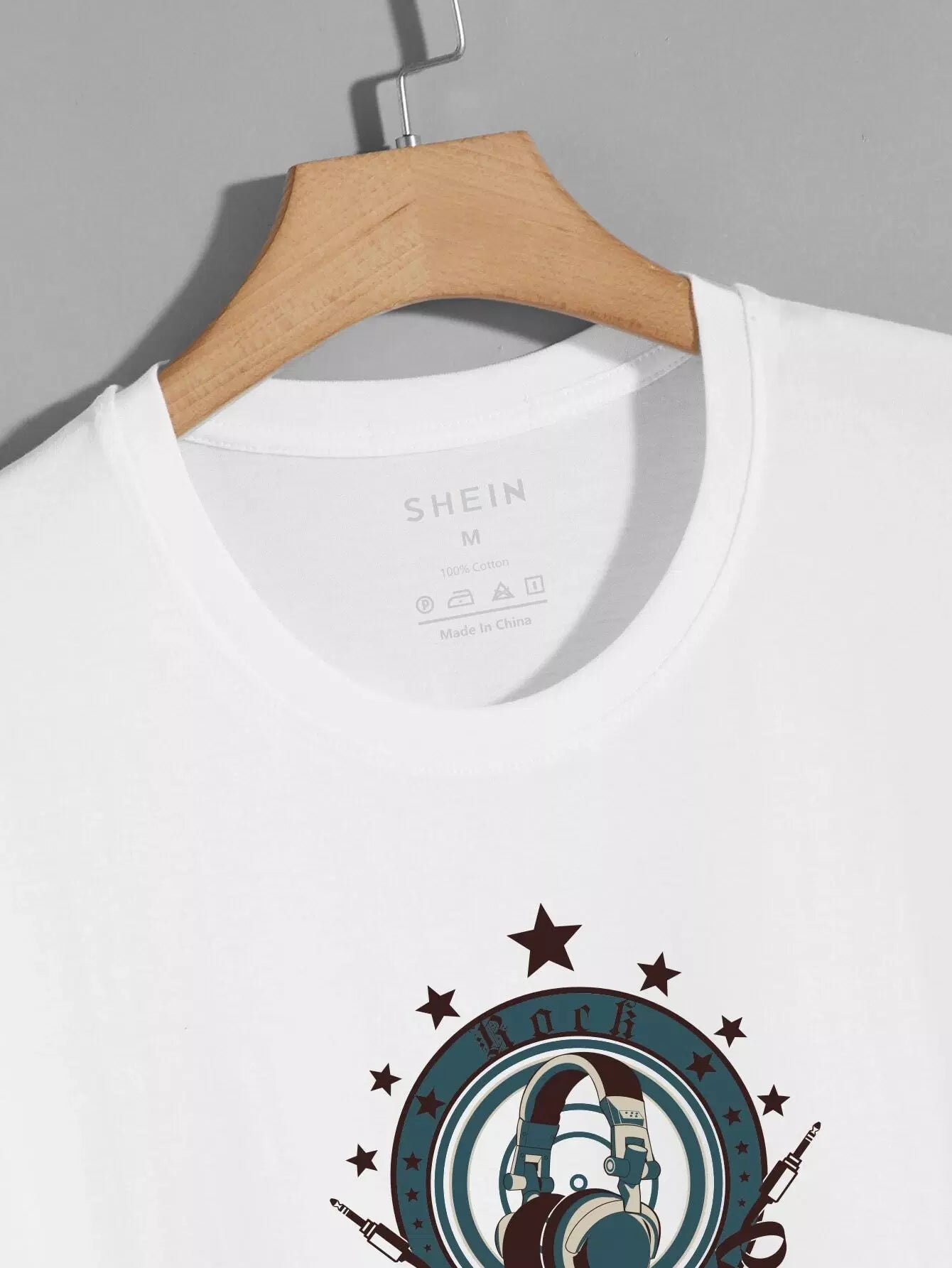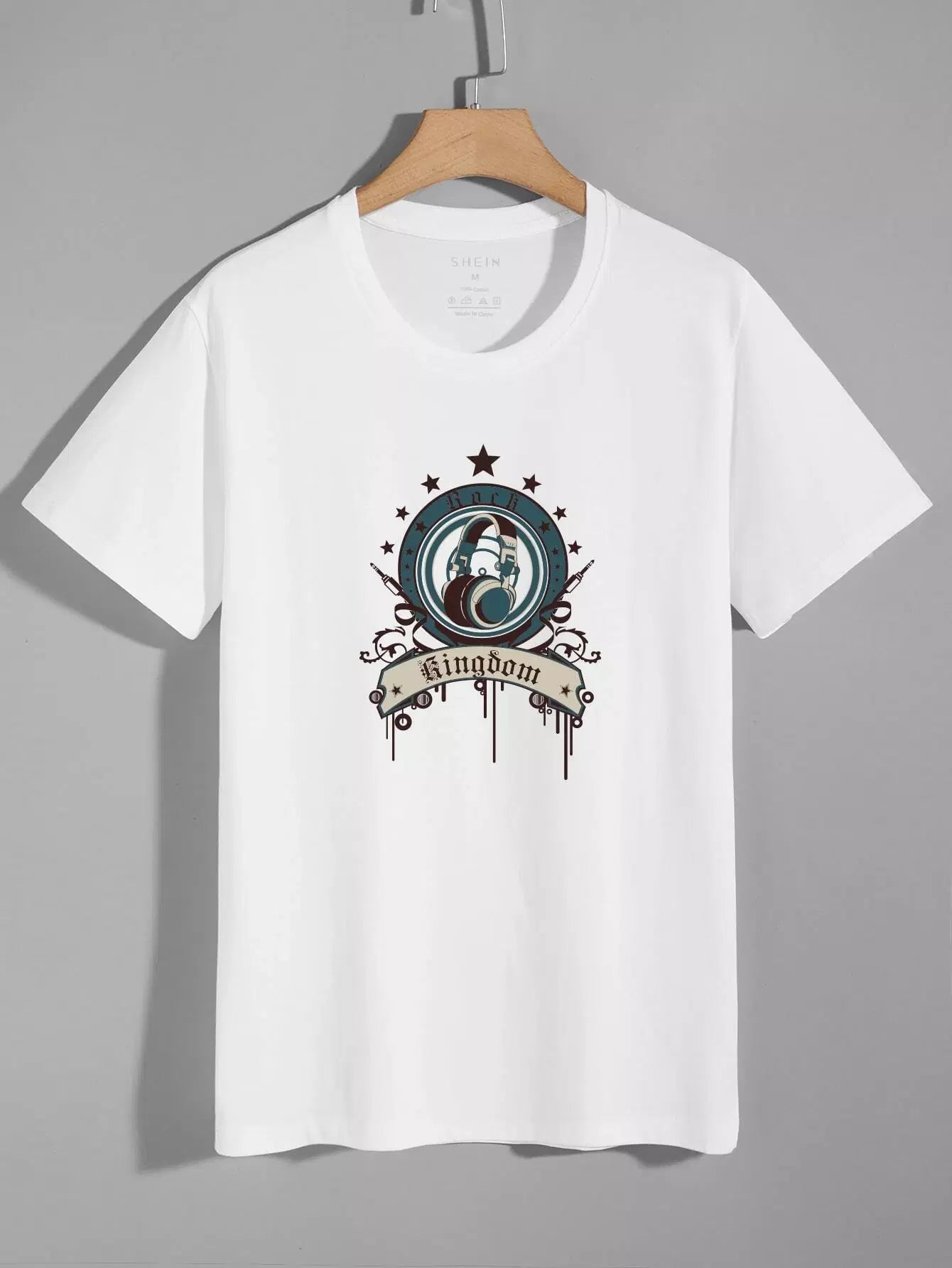 سماعة أذن رجالي وتي شيرت برقبة دائرية مطبوع عليها حروف