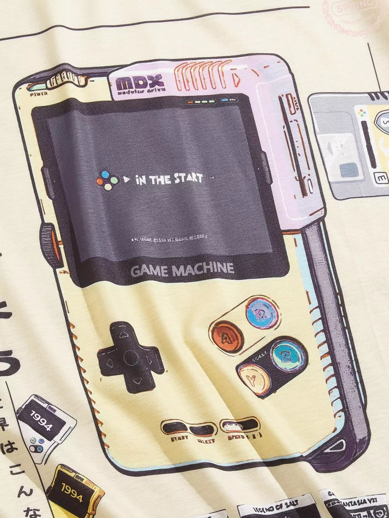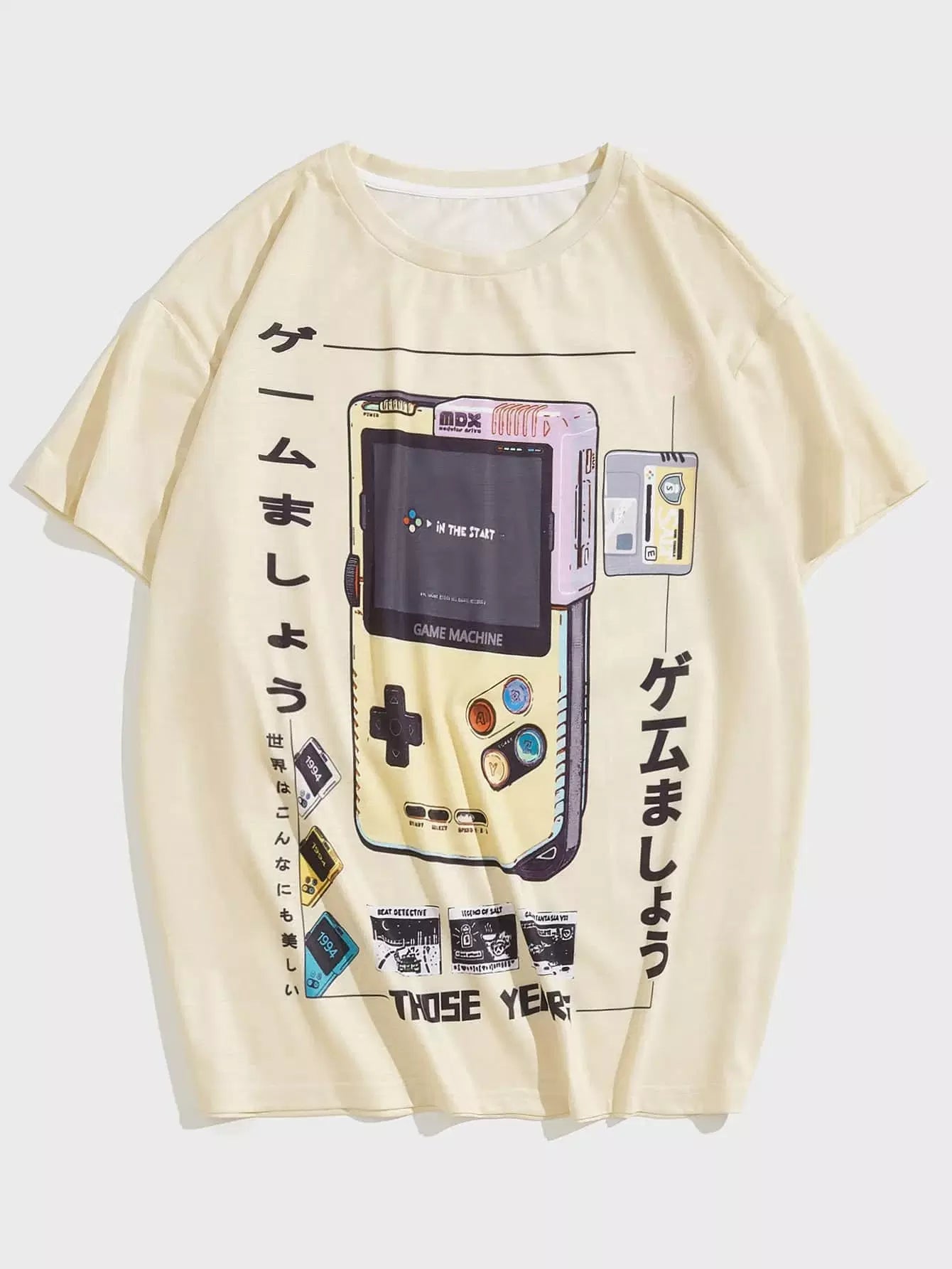 تي شيرت رجالي ياباني برسومات يابانية ورسومات كارتونية منسدلة الكتف