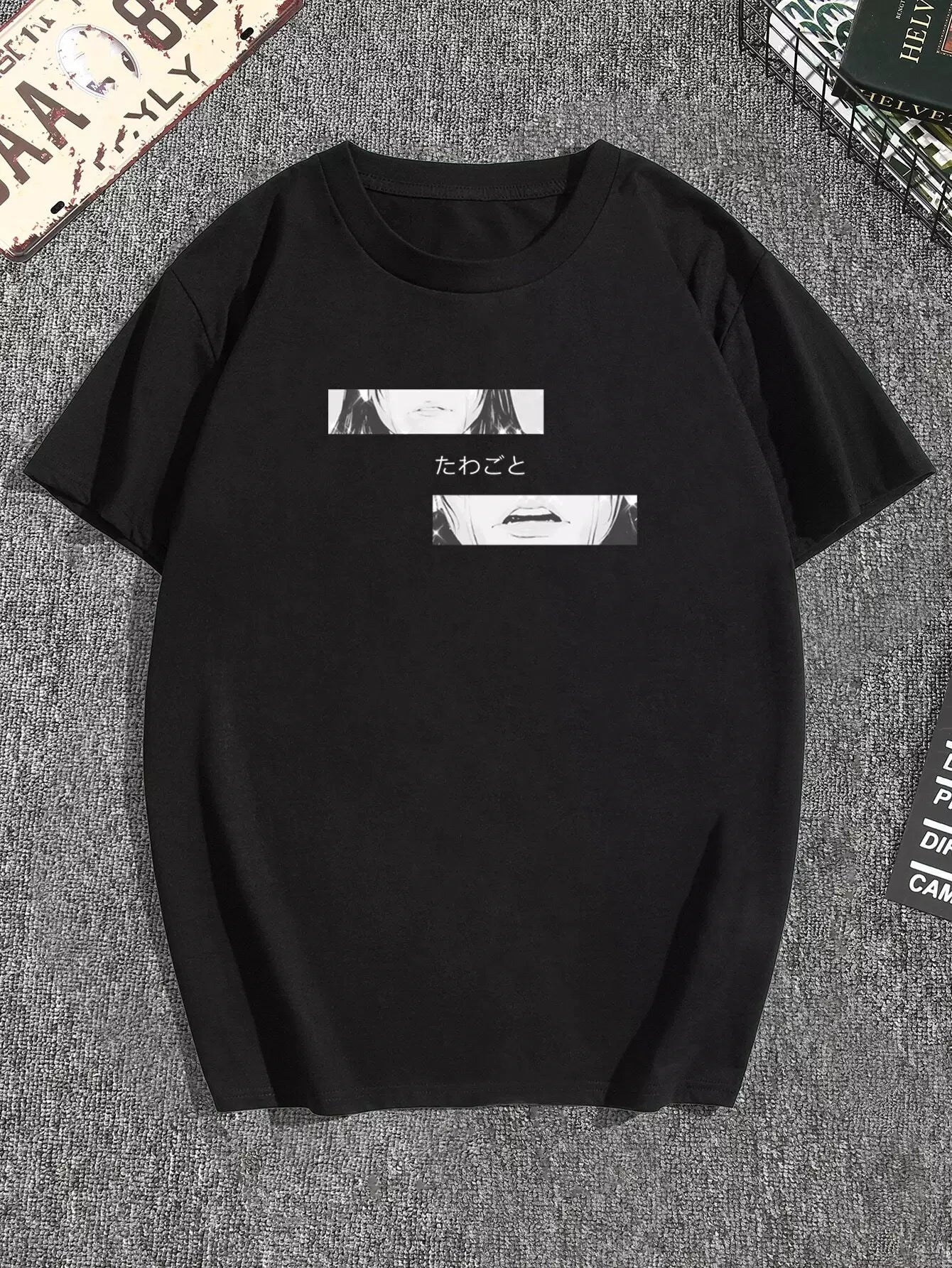 تيشيرت رجالي مطبوع عليه حروف يابانية ورسومات هزلية