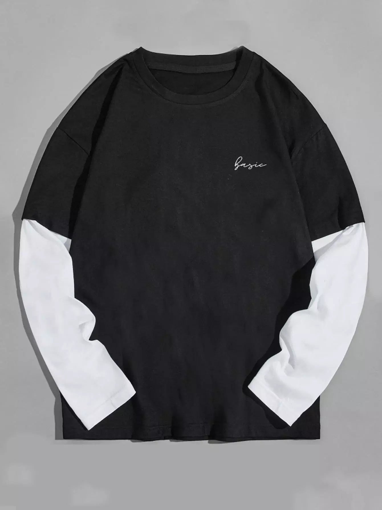 تي شيرت رجالي بأكمام متباينة ورسومات بأحرف