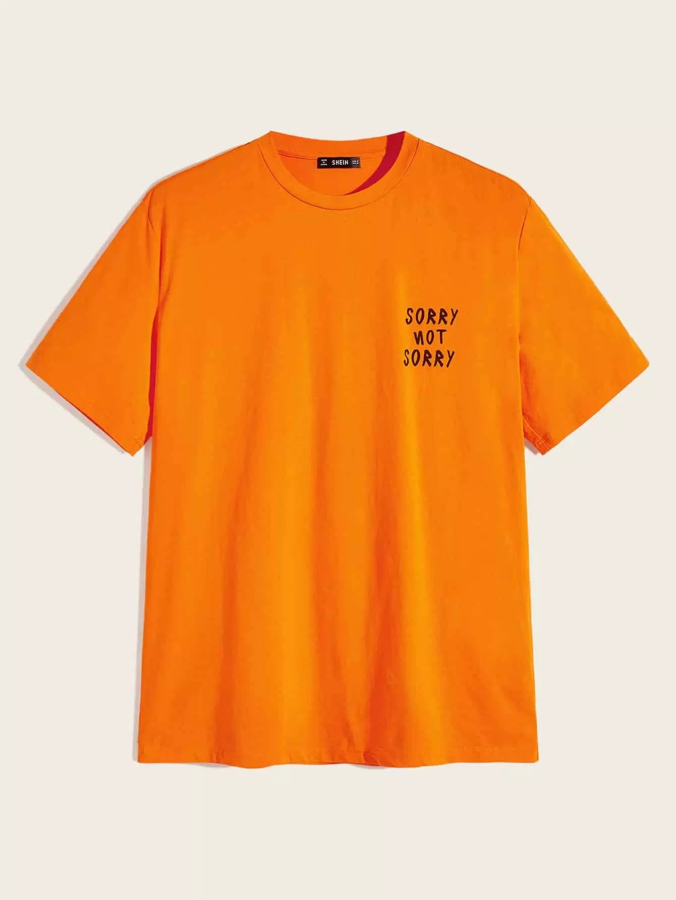 تي شيرت بشعار برتقالي نيون جرافيك للرجال