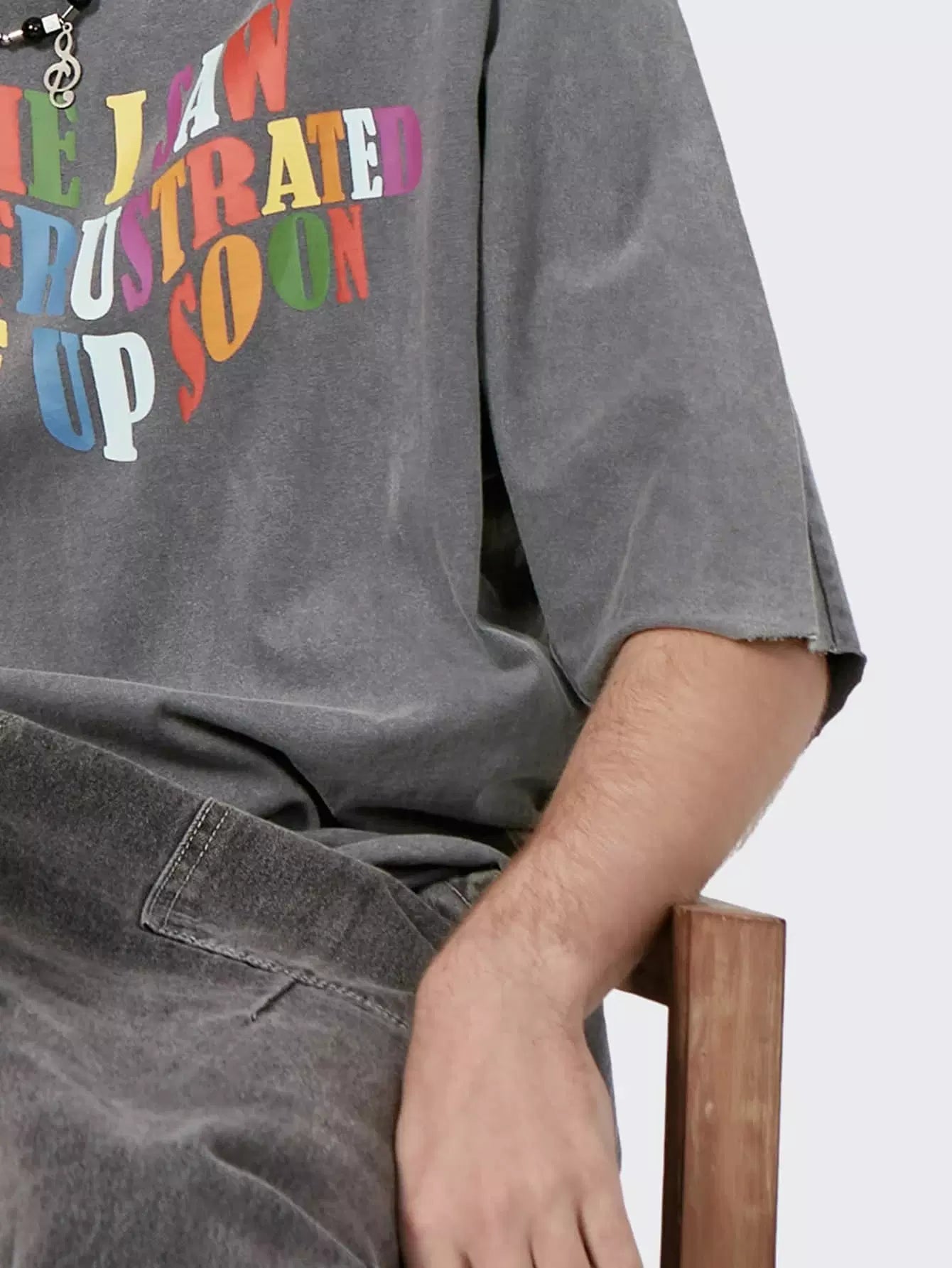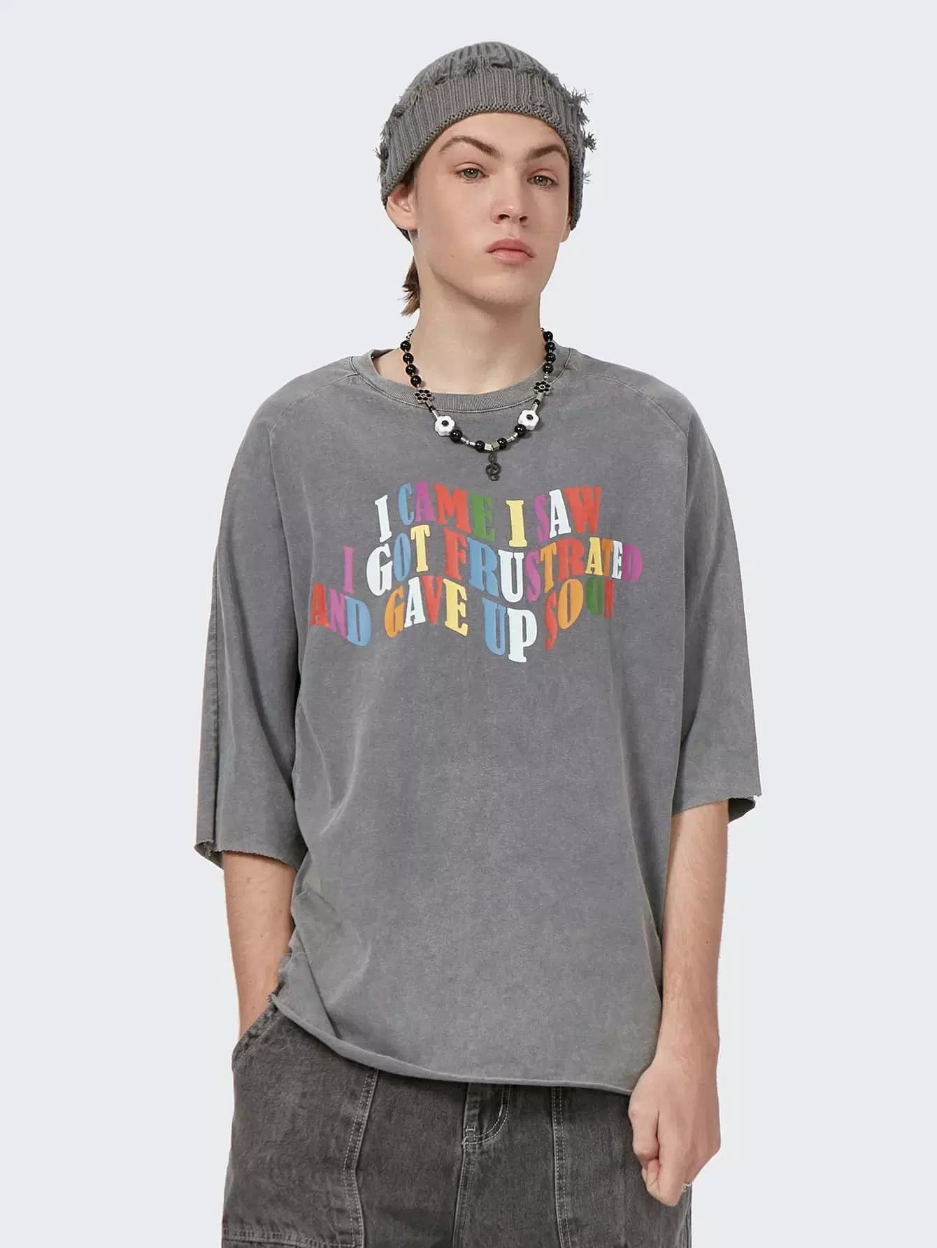 تي شيرت بأكمام راجلان للرجال بأكمام راجلان ذات شعار جرافيك