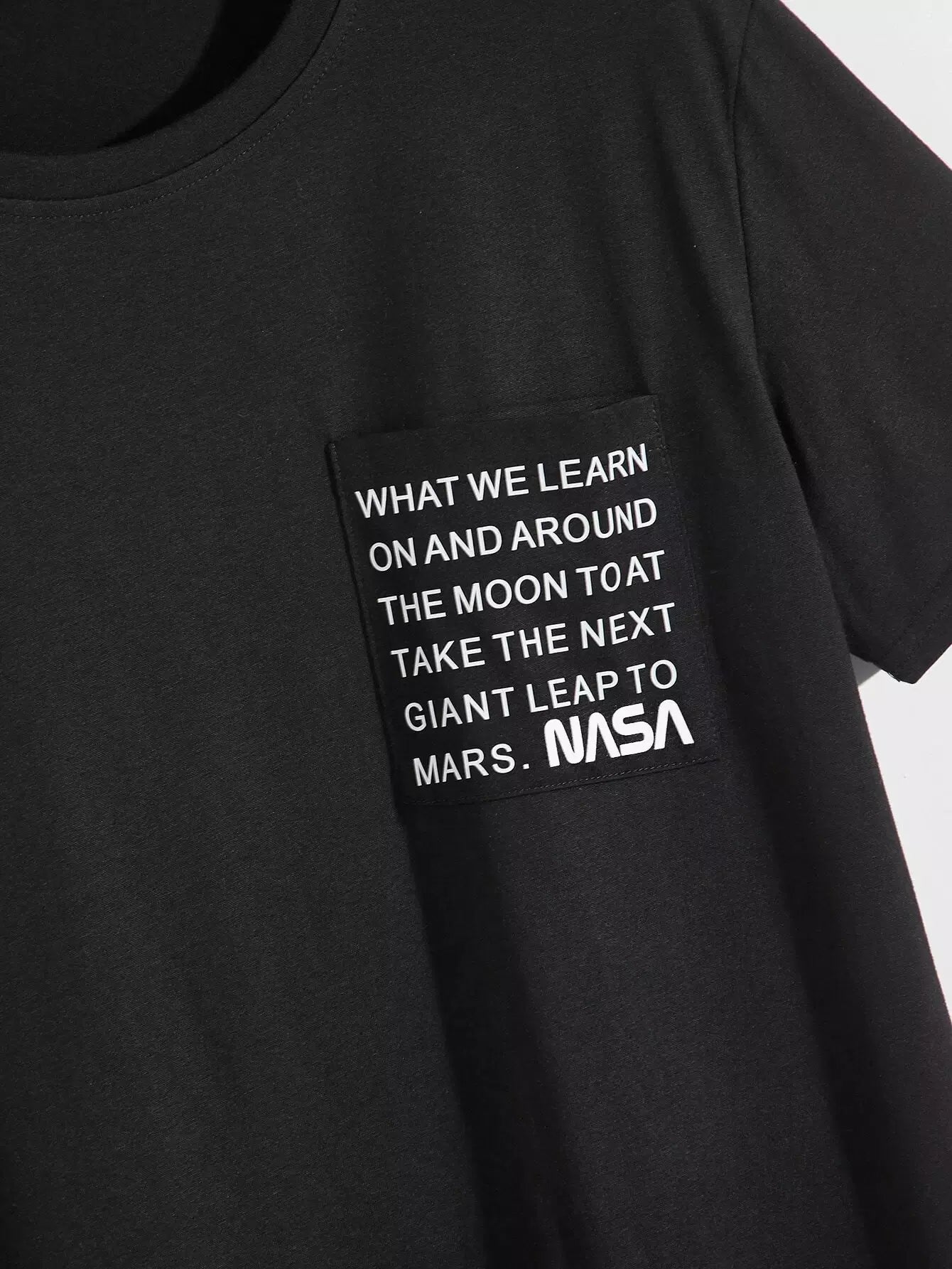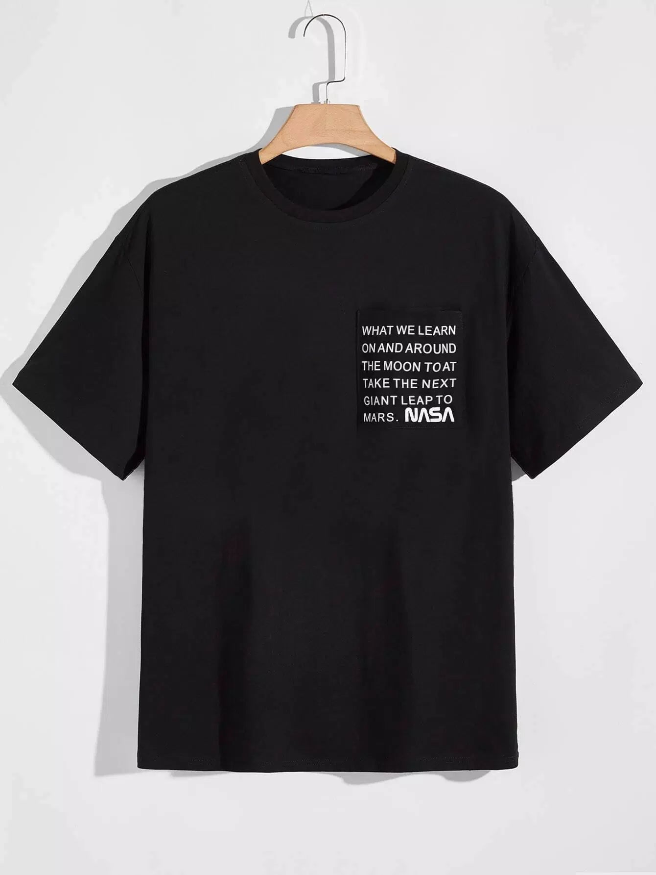 تي شيرت رجالي جرافيك بجيب مرقع بشعار شعار رجالي