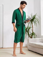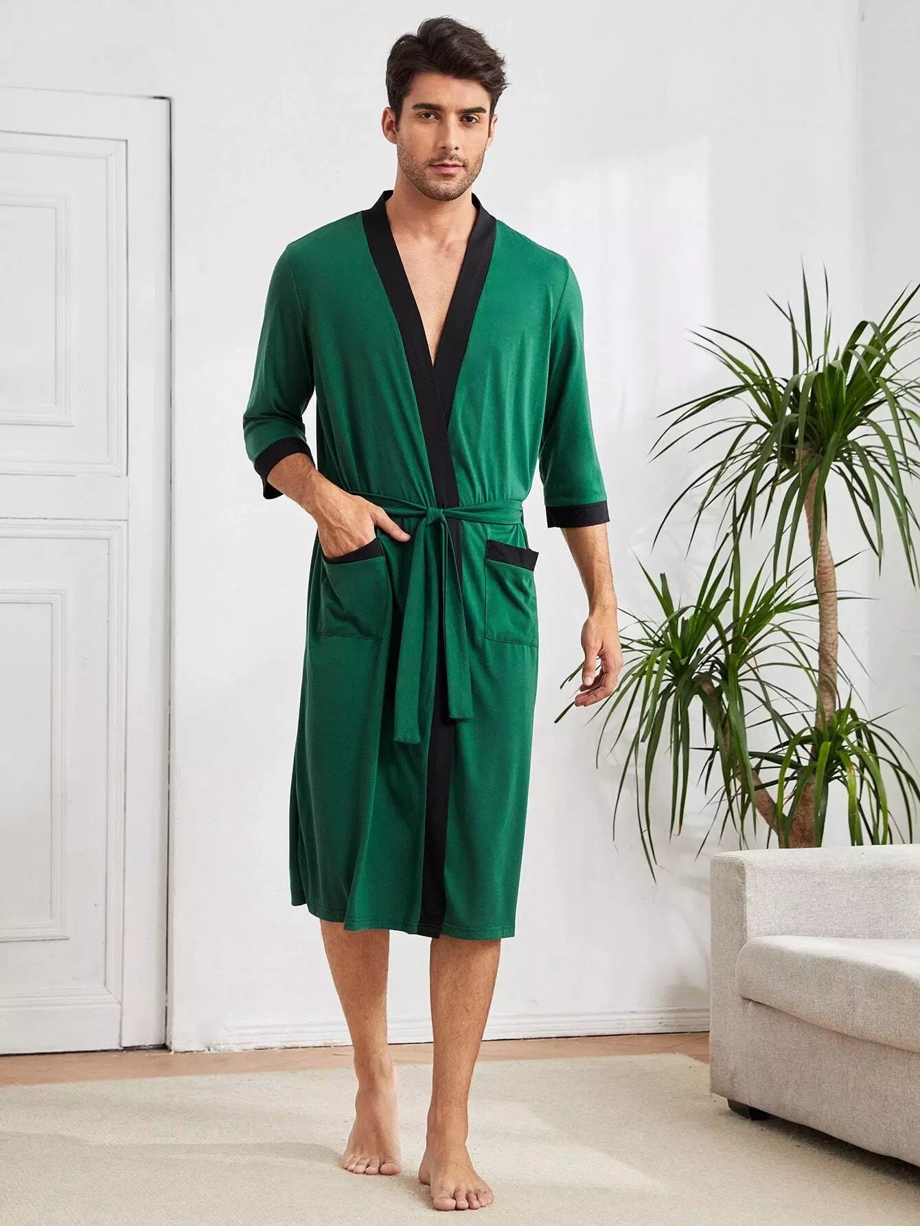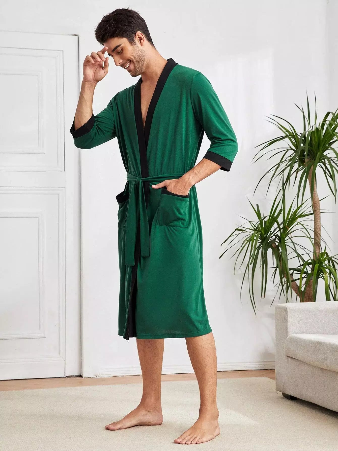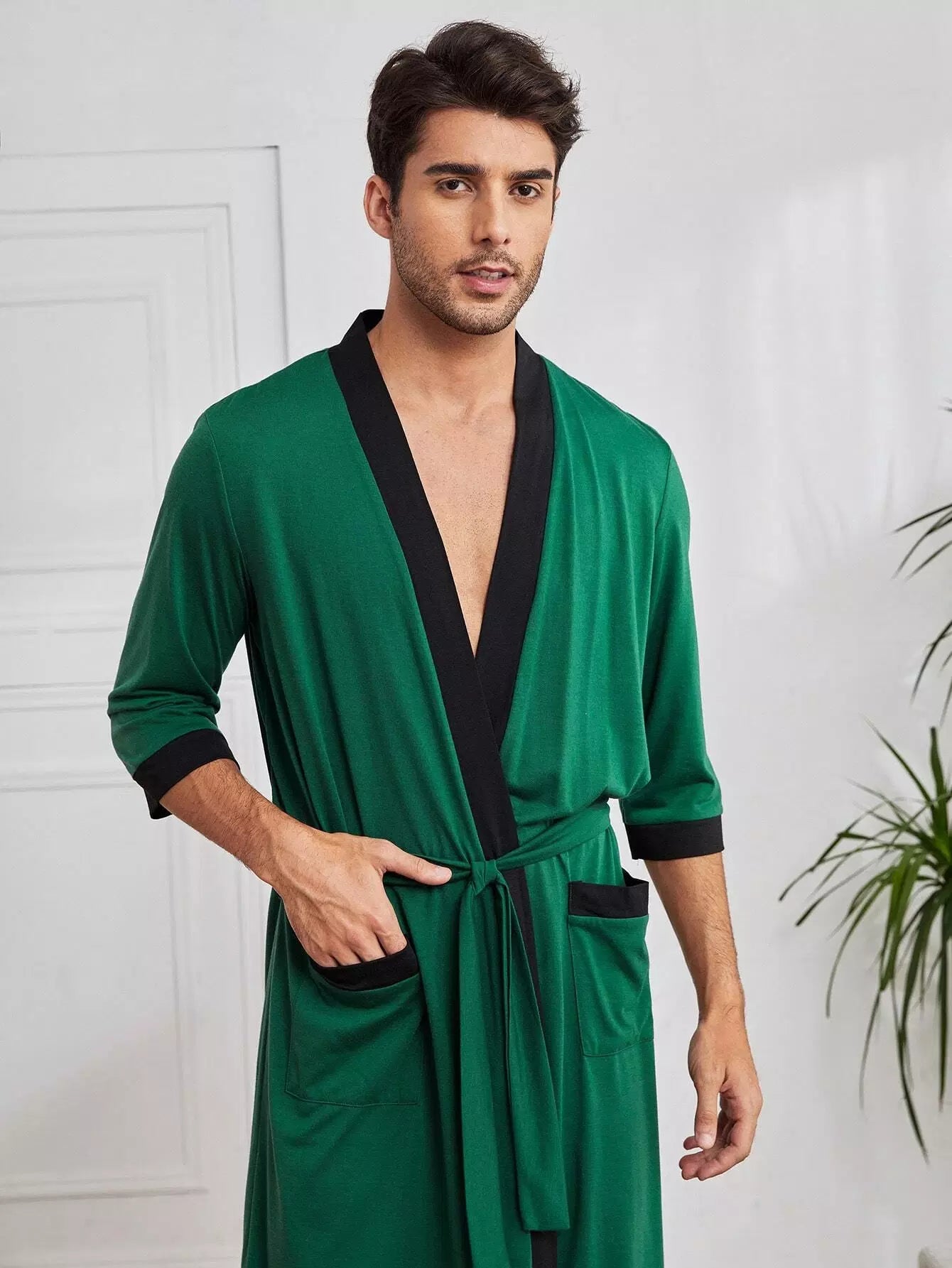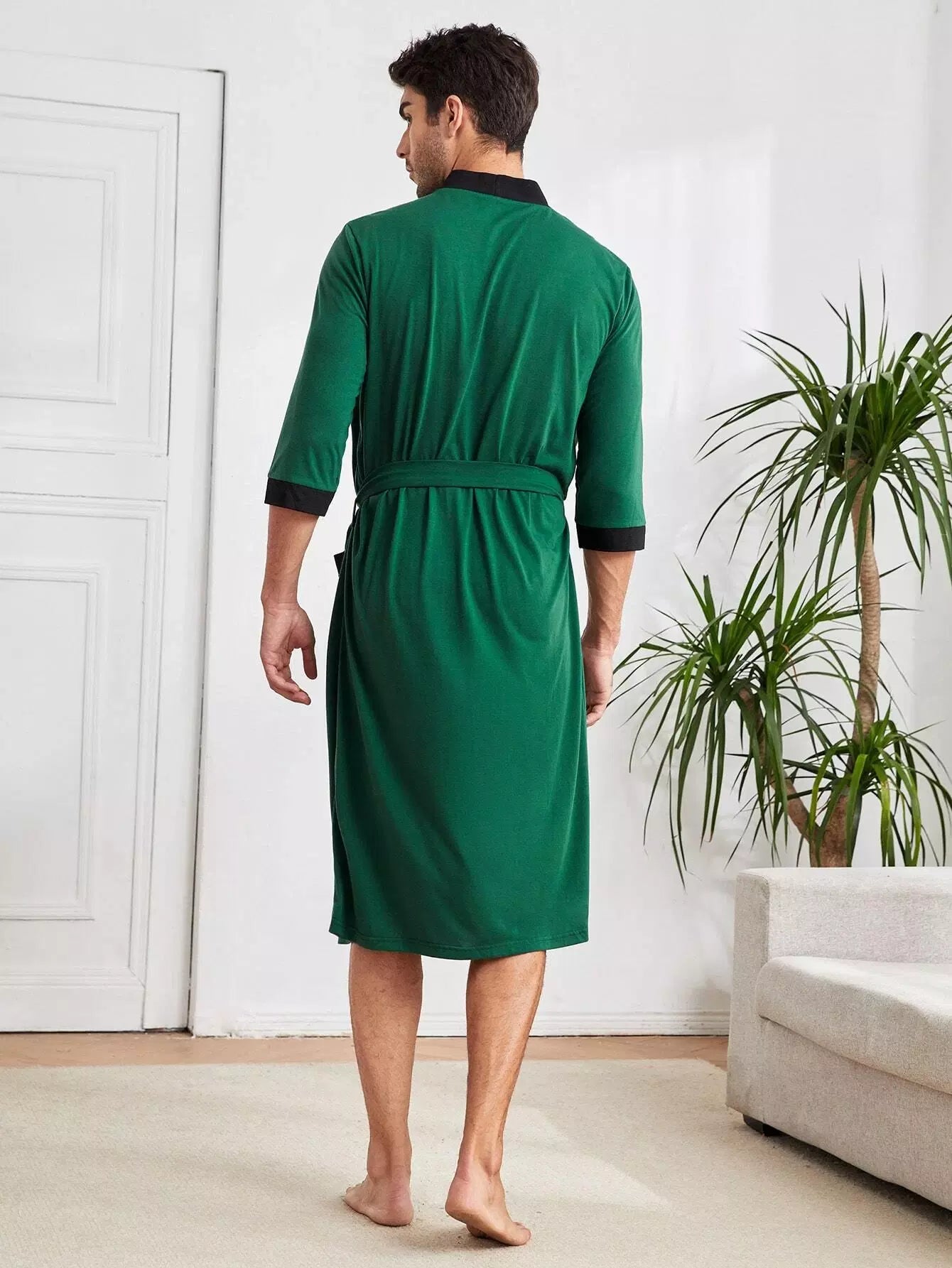 رداء رجالي بجيوب مزدوجة وزخرفة متباينة بدون حزام