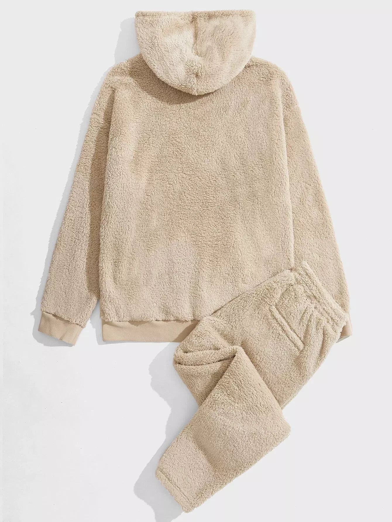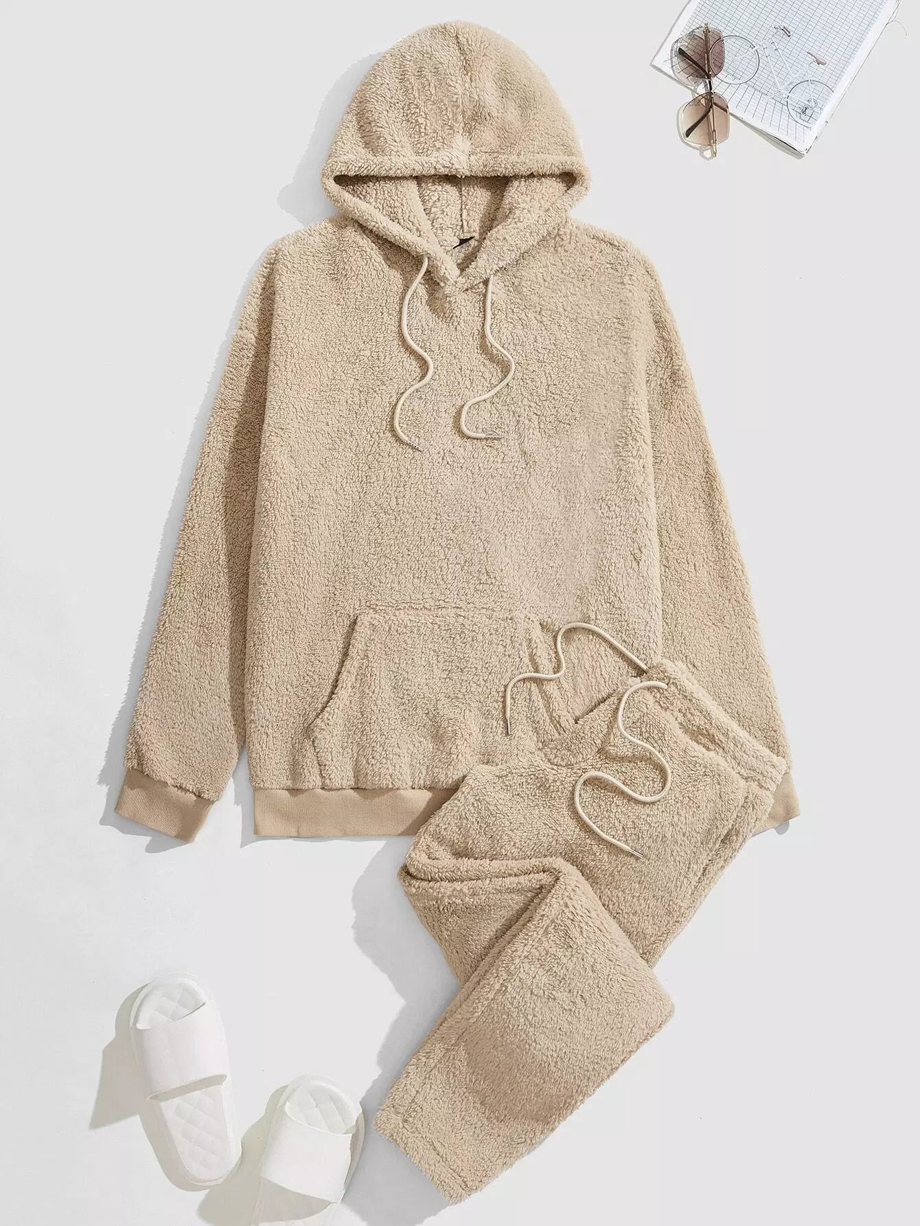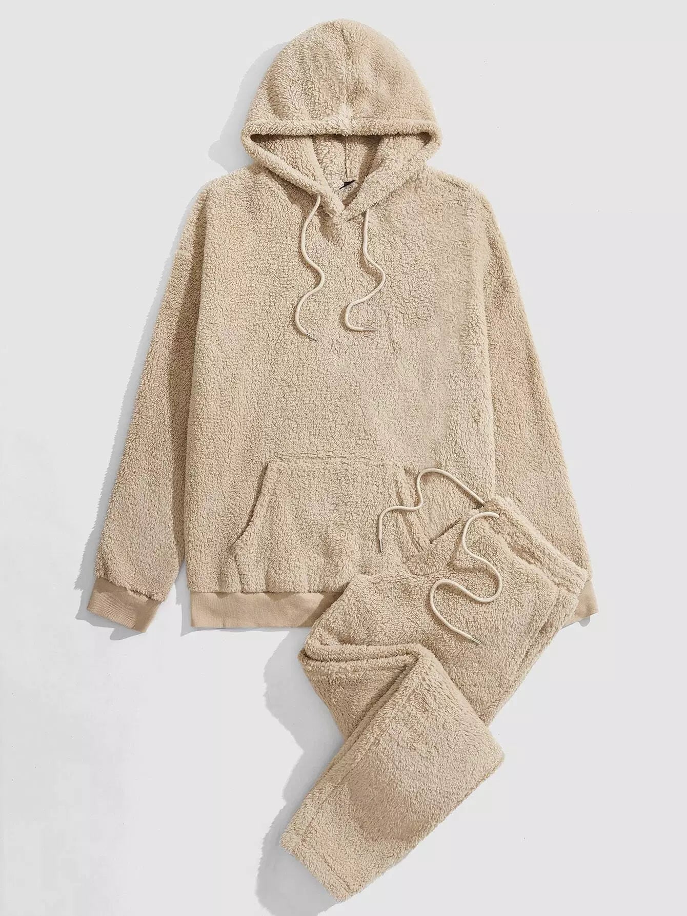 طقم كنغر بجيب كنغر للرجال بقلنسوة برباط من الفانيلا بقلنسوة