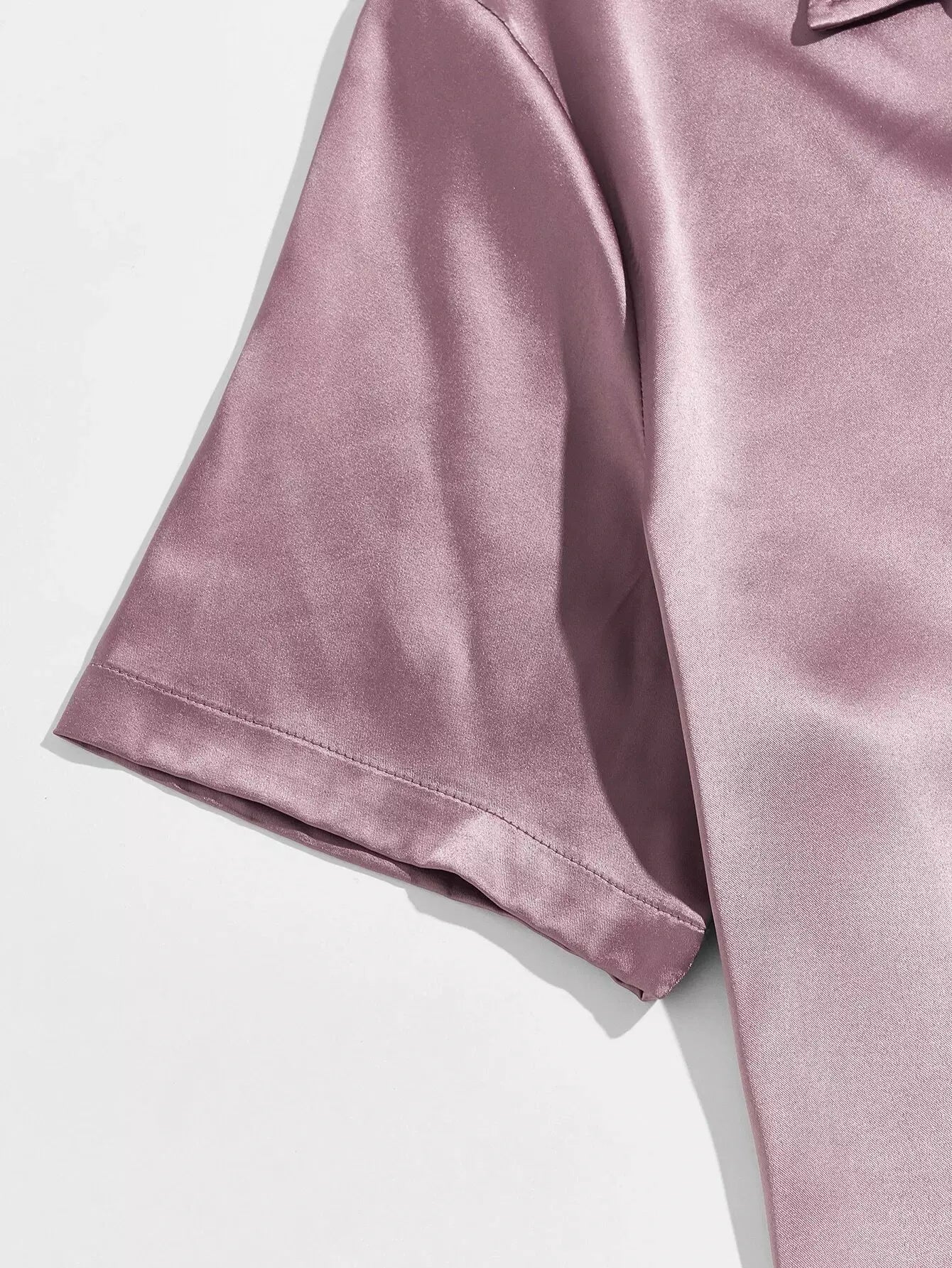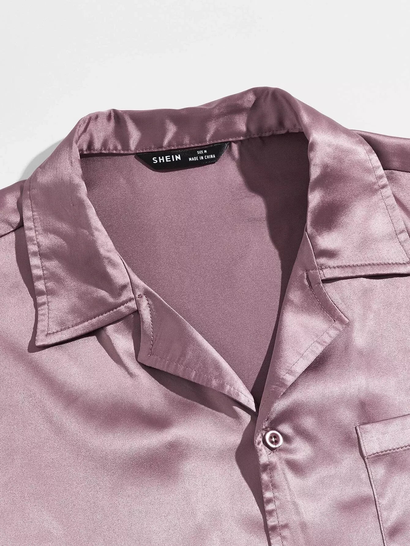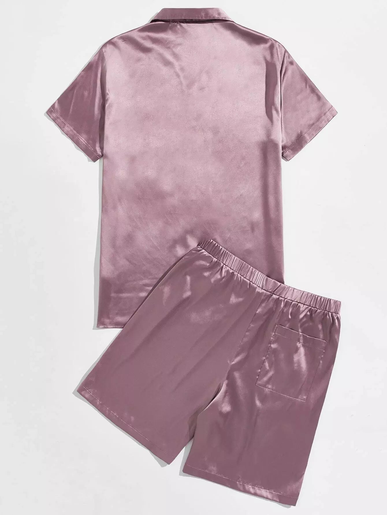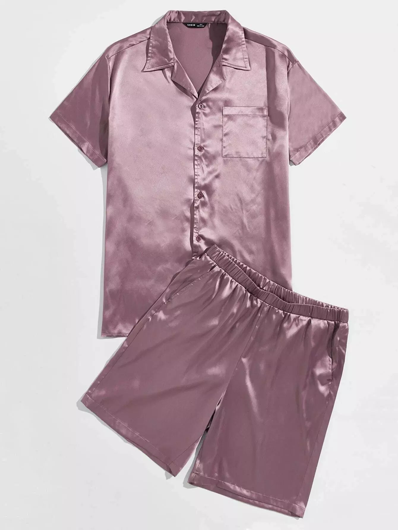 طقم بيجامة رجالي بجزء علوي وبنطلون مع جيوب جانبية