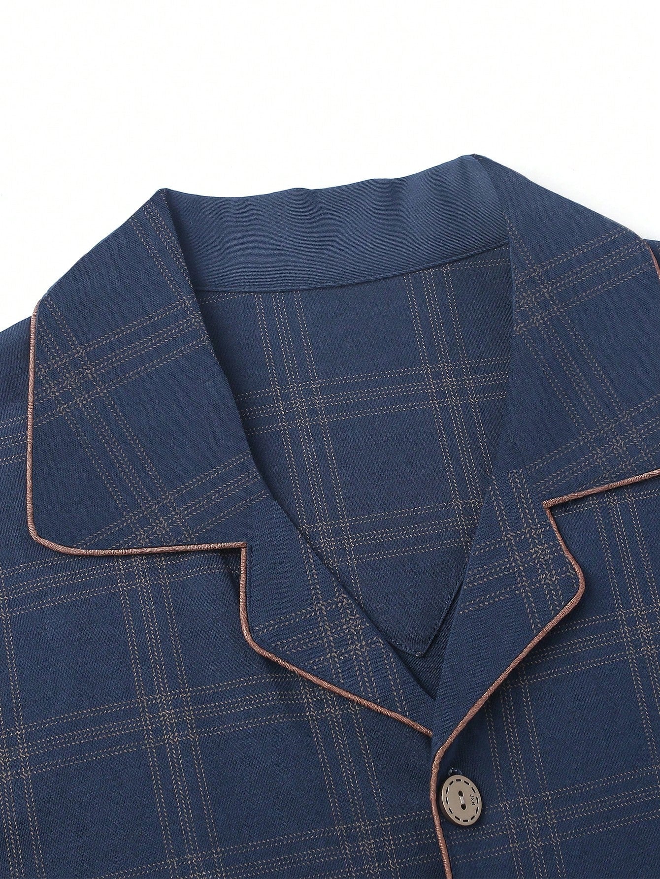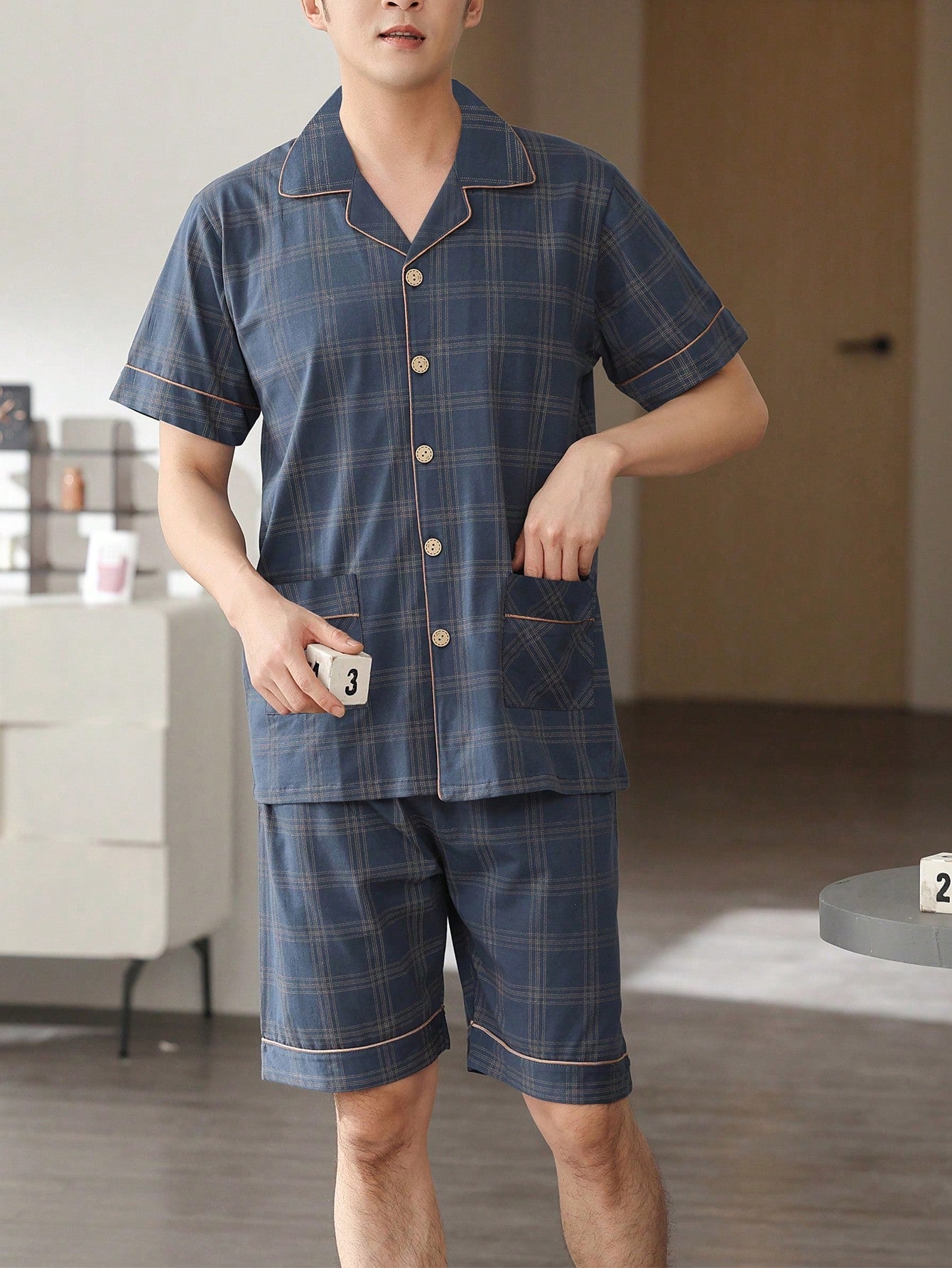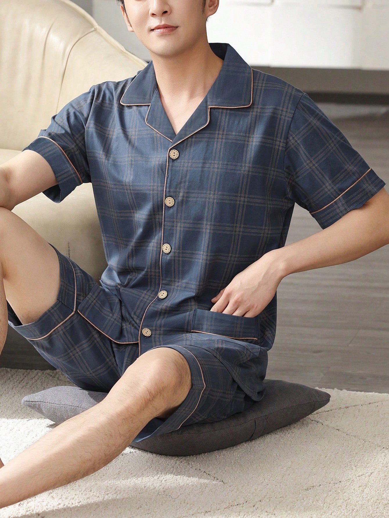 طقم مكون من قطعتين من ملابس النوم الصيفية الرجالية، خفيف الوزن، يتكون من كارديجان قصير الأكمام وشورت.