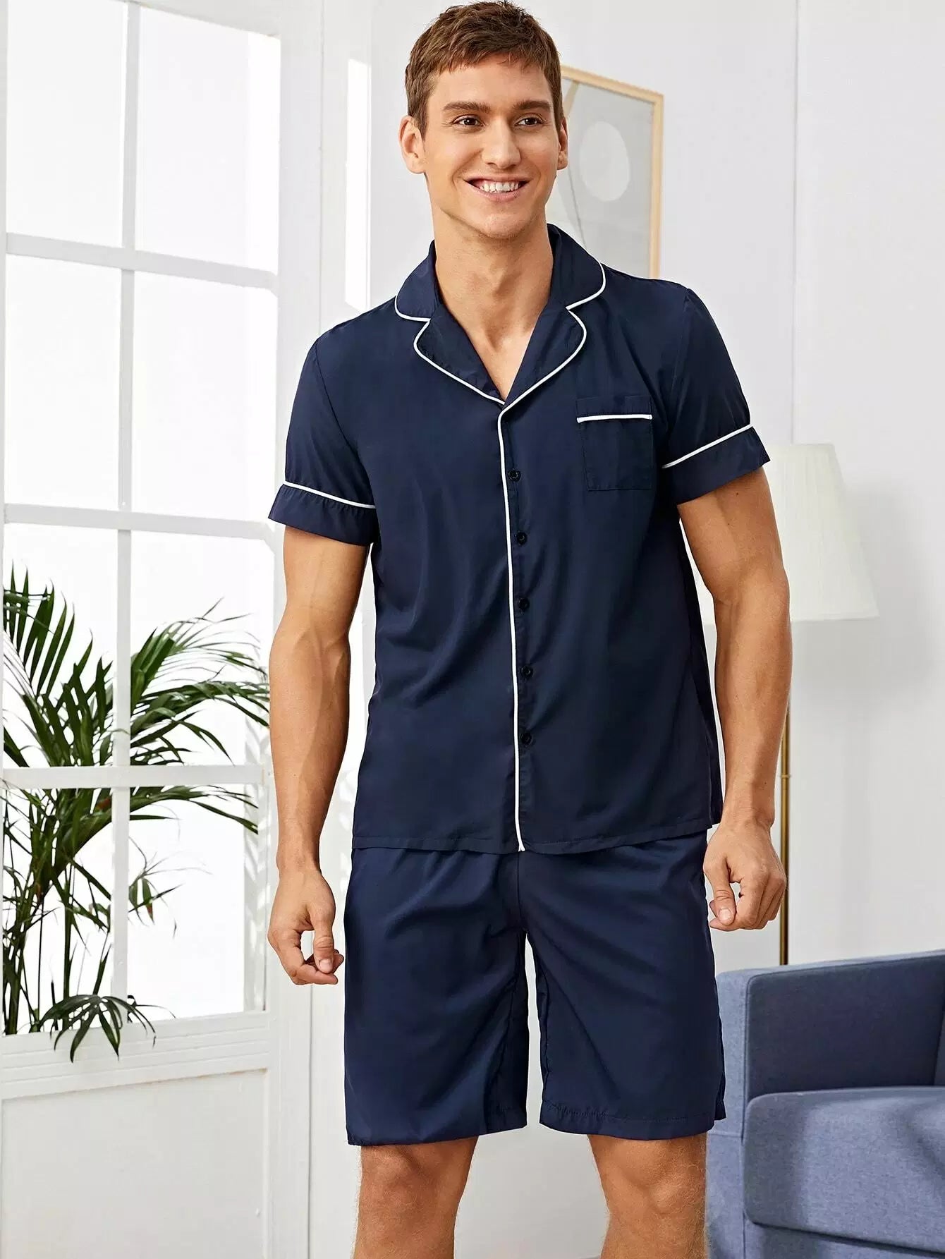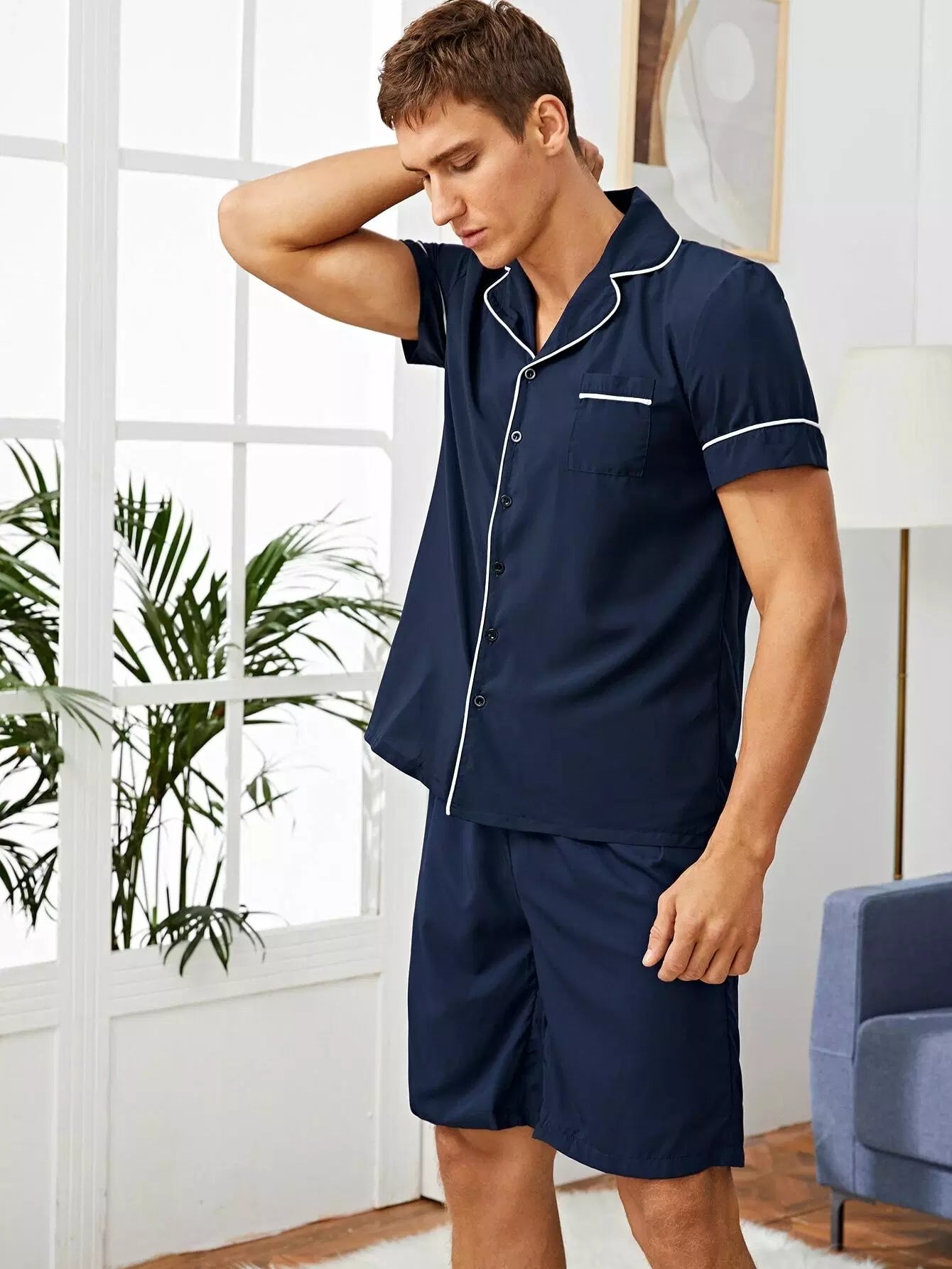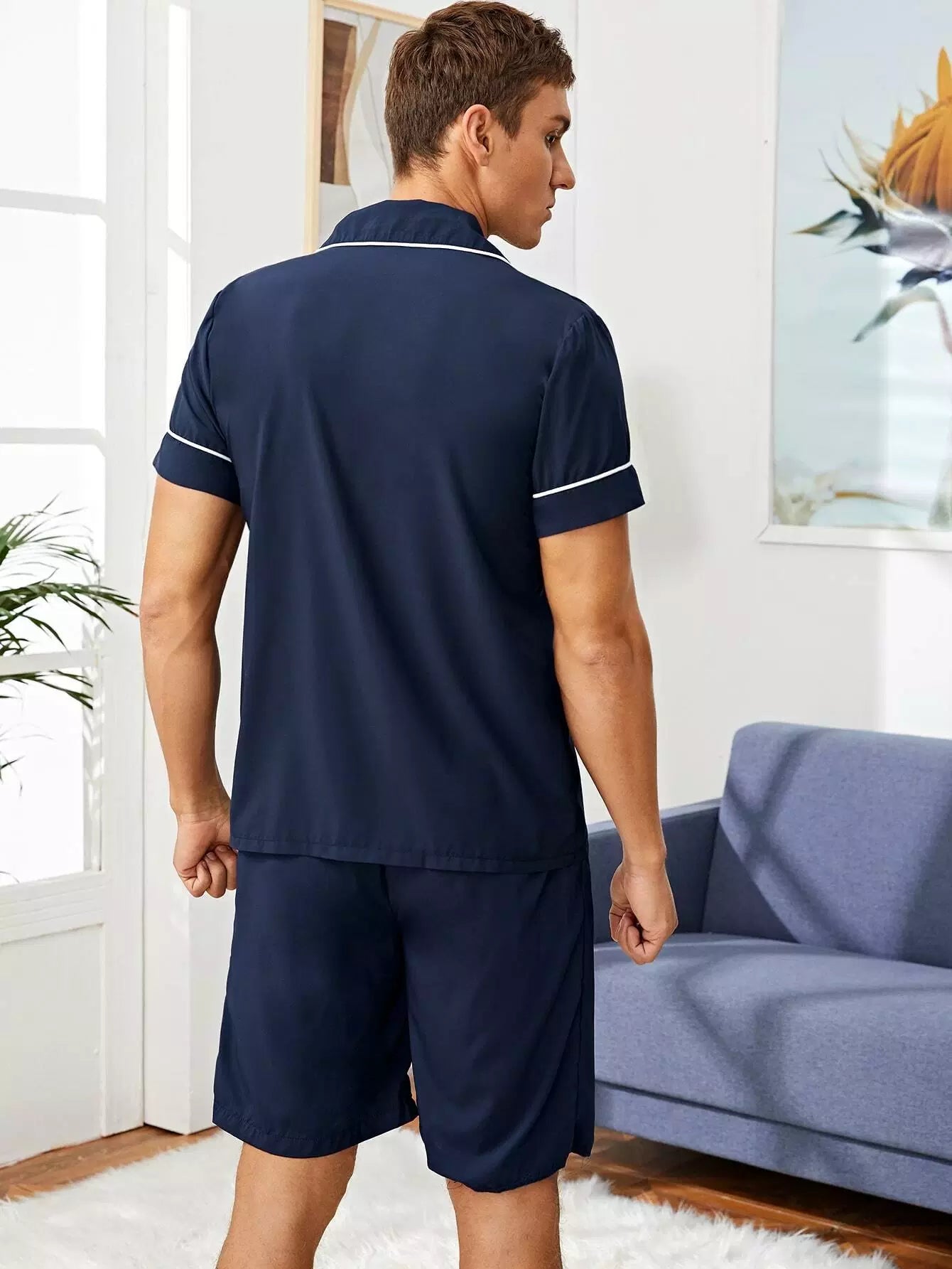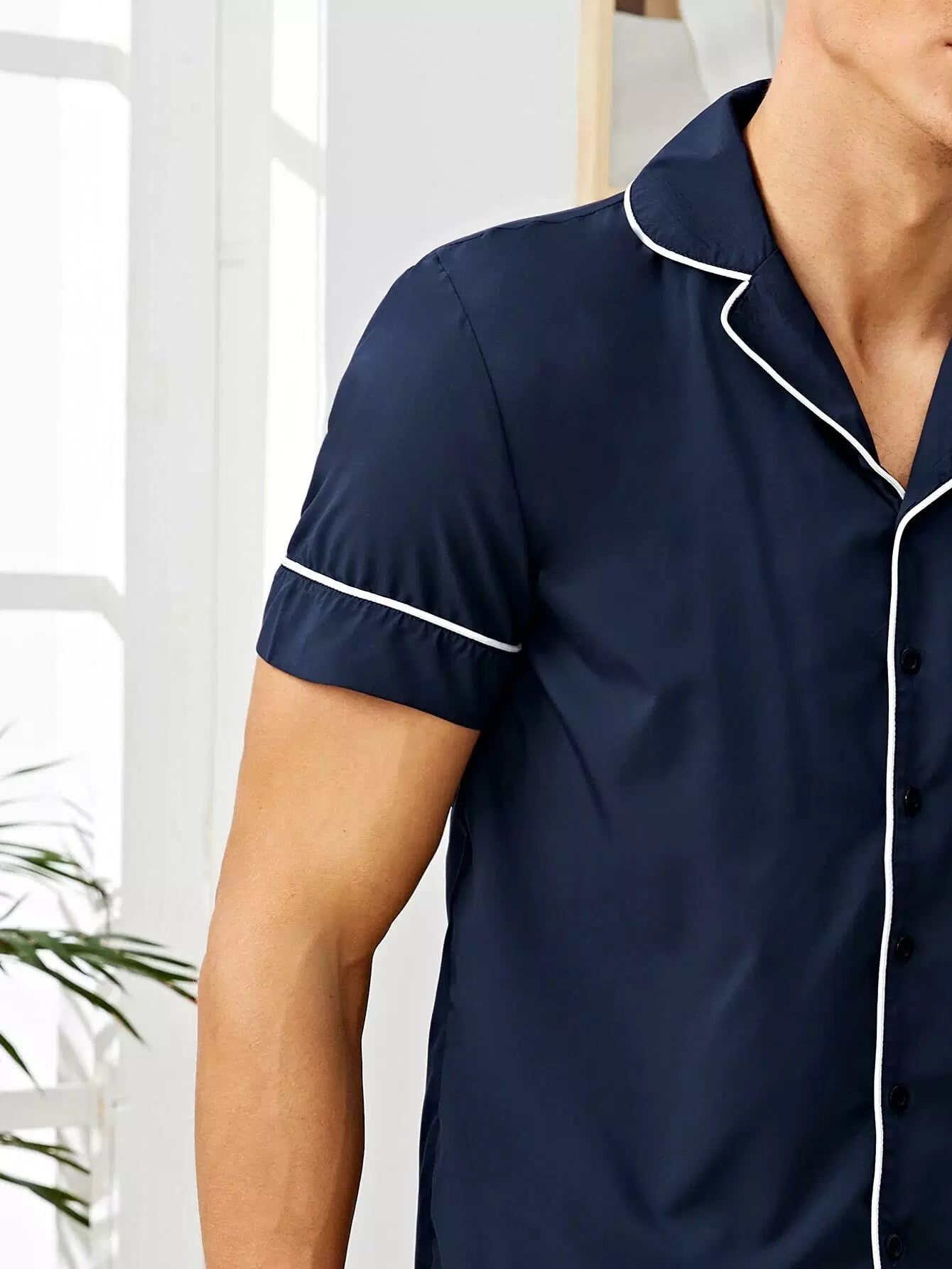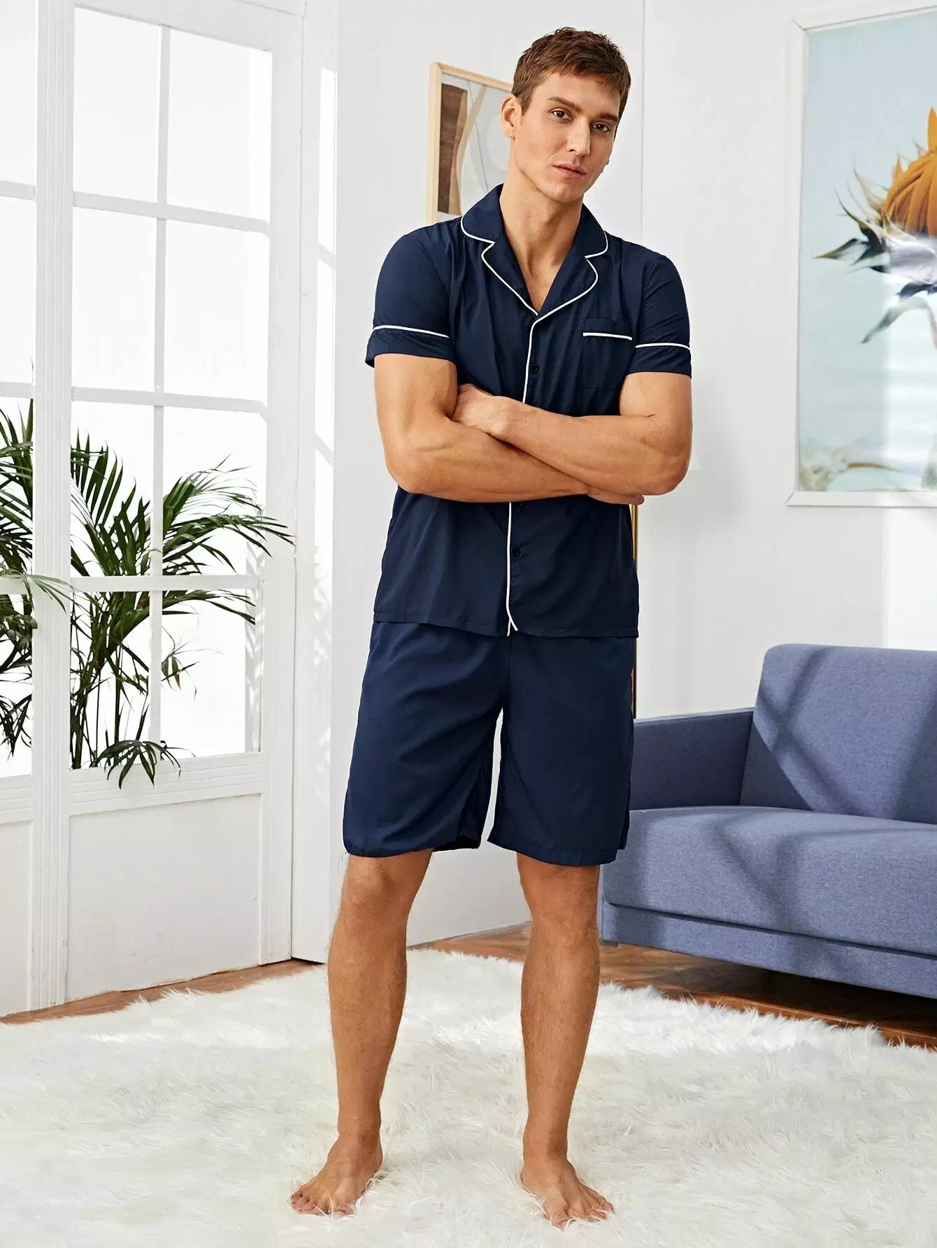 طقم بيجامة رجالي مزين بنقوش بلون مغاير