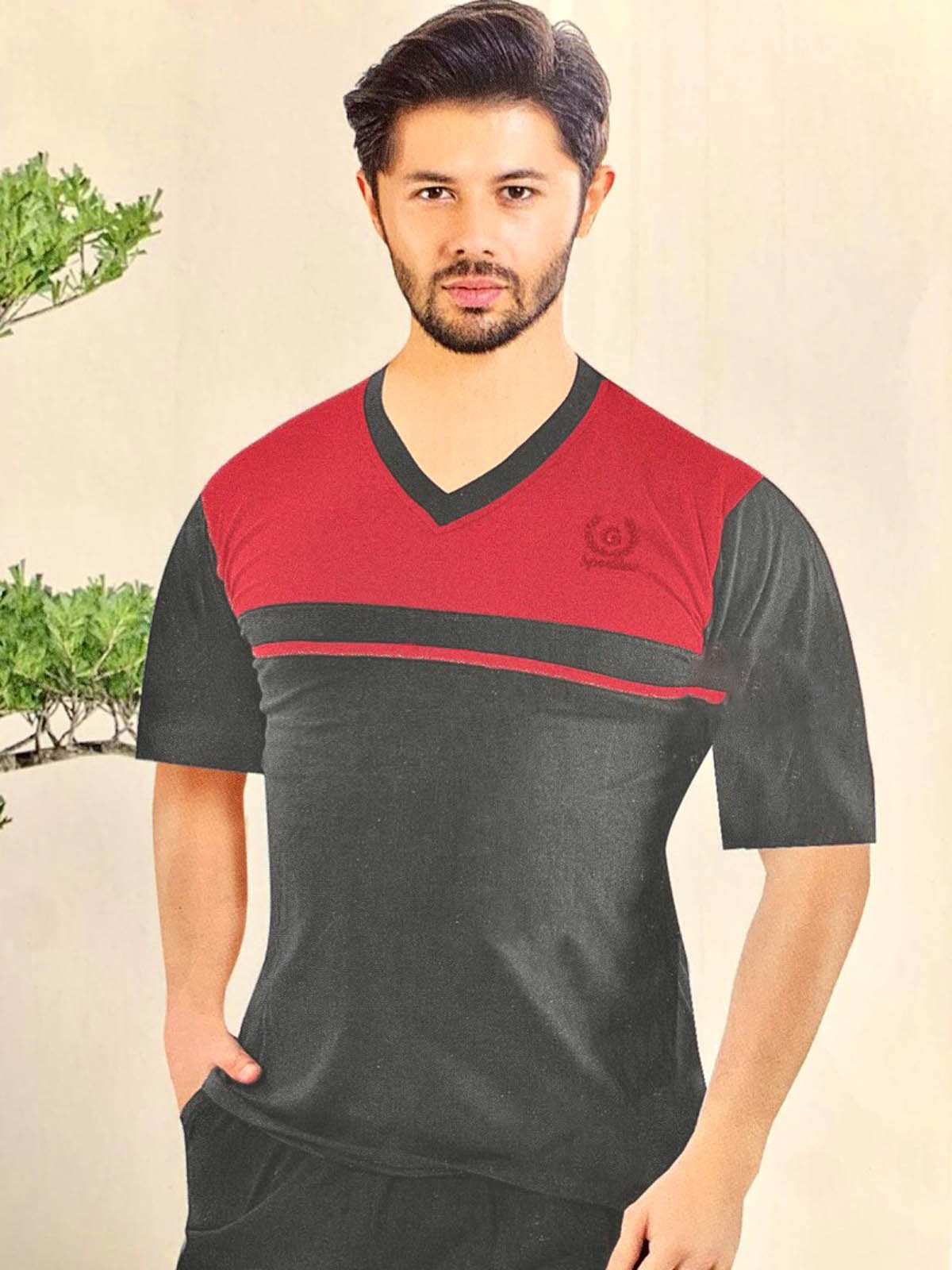 الرجالي - بيجامة رجالي رمادي وأحمر قطعتين