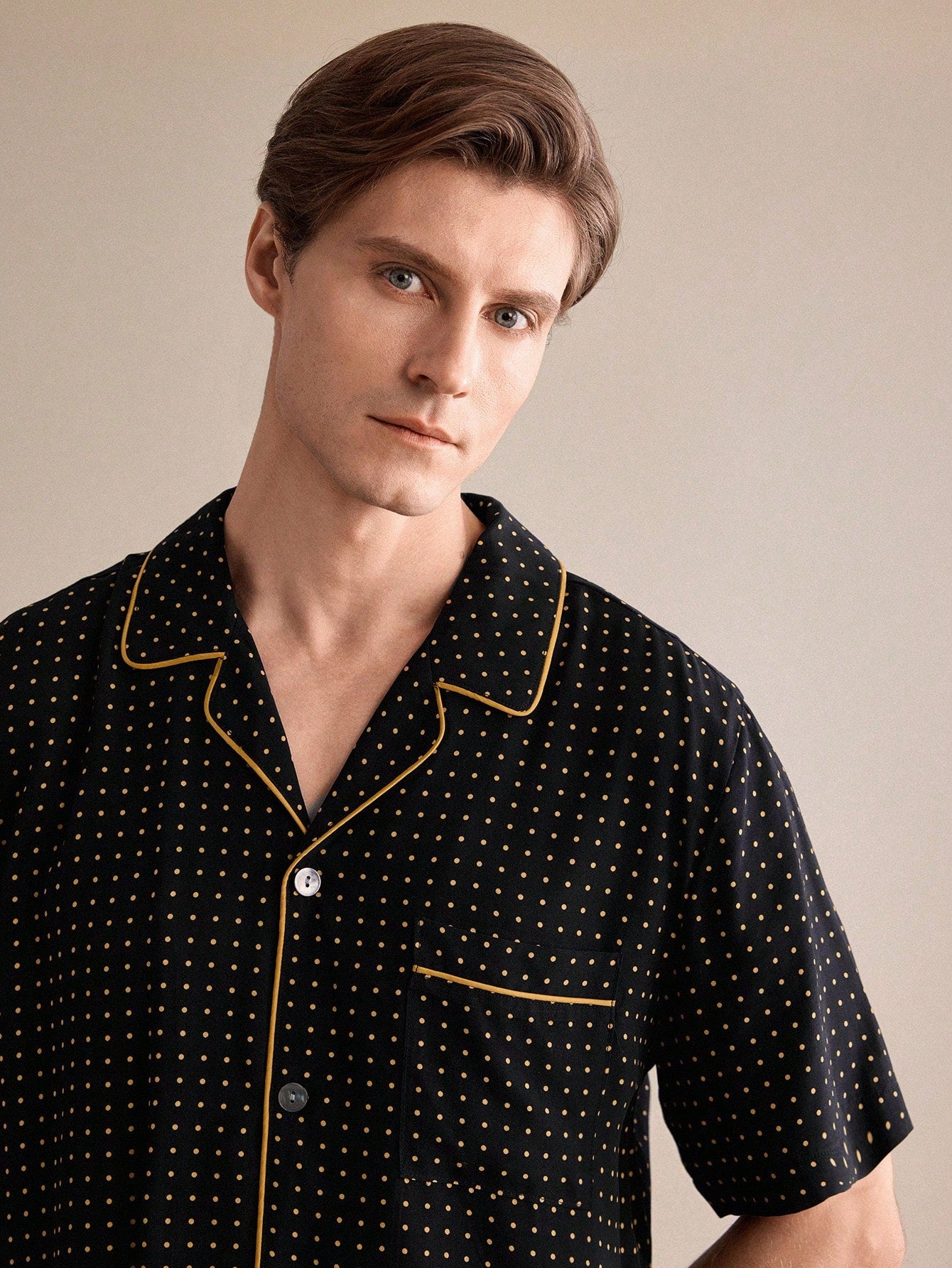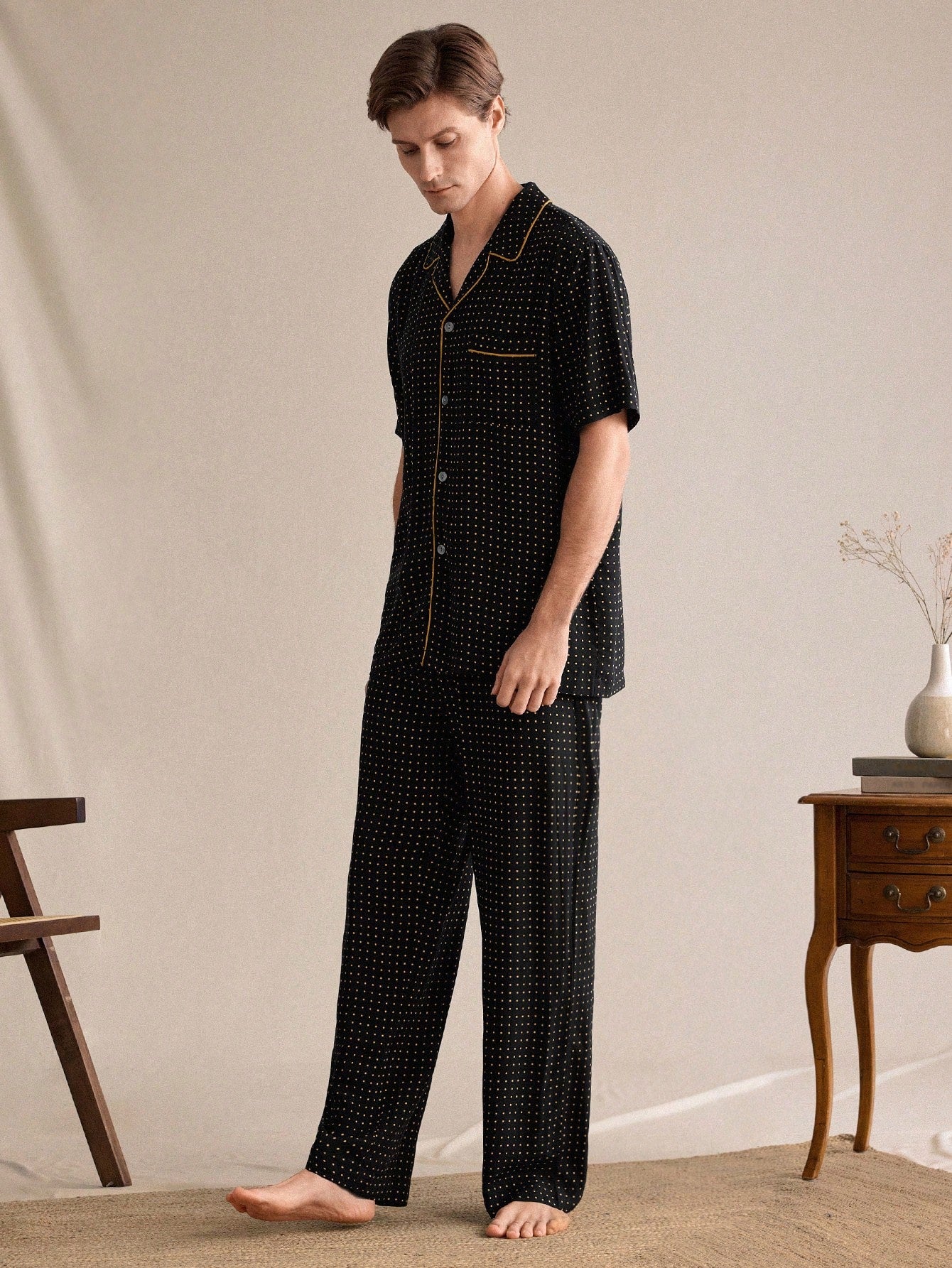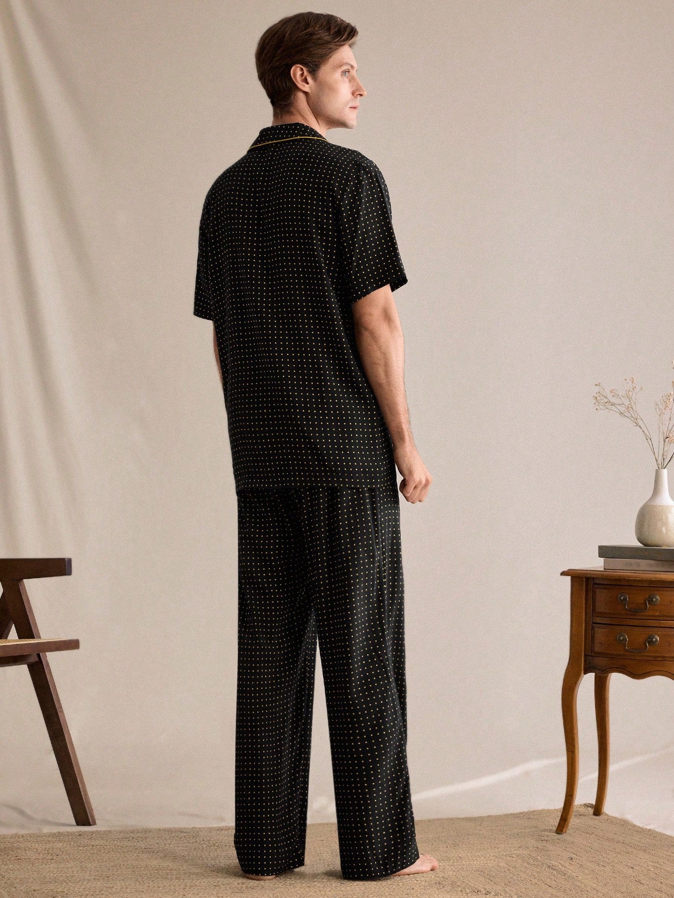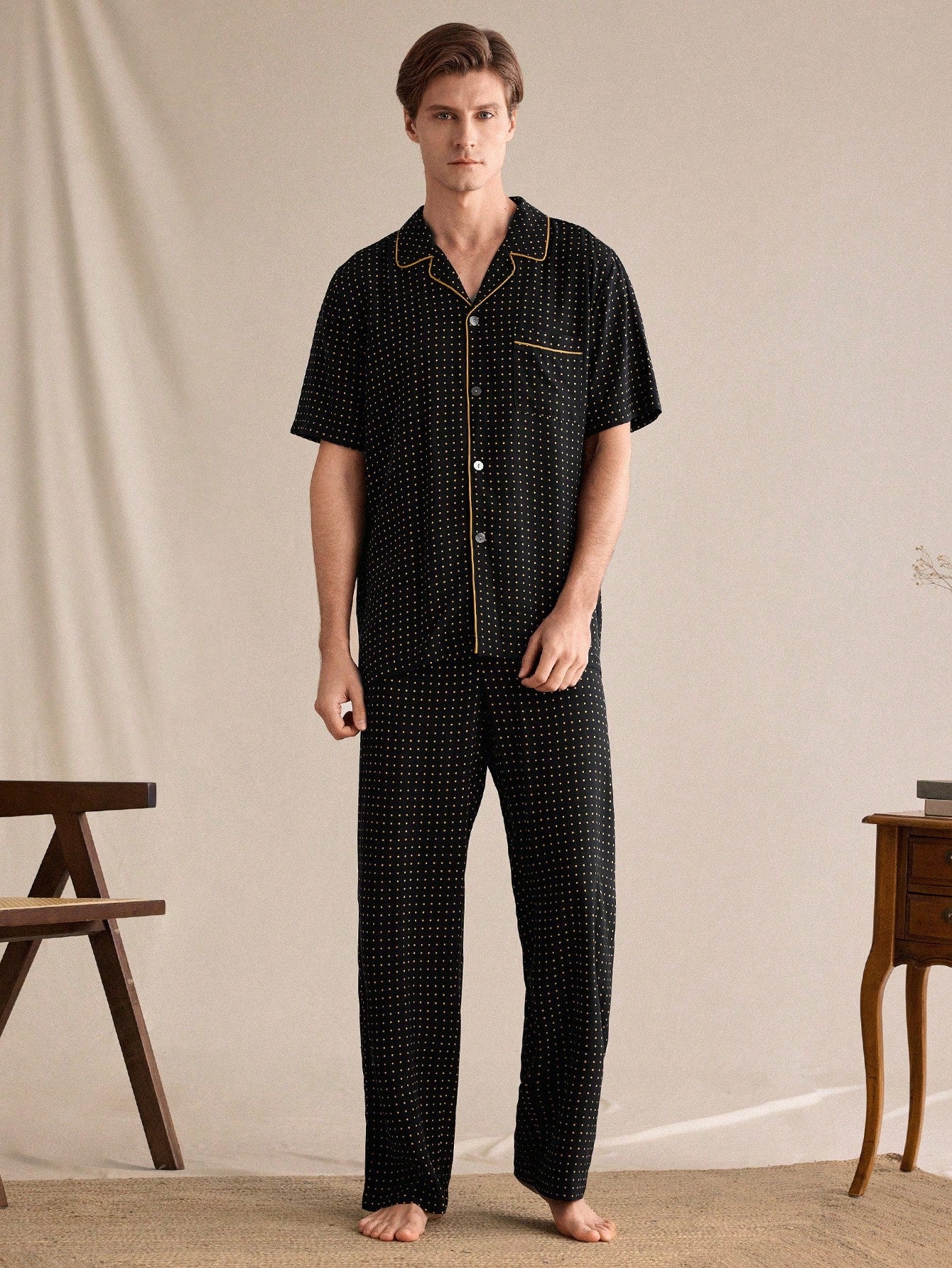 طقم بيجامة رجالي من SHEIN EverLounge يتميز بجزء علوي بأكمام قصيرة وبنطال طويل