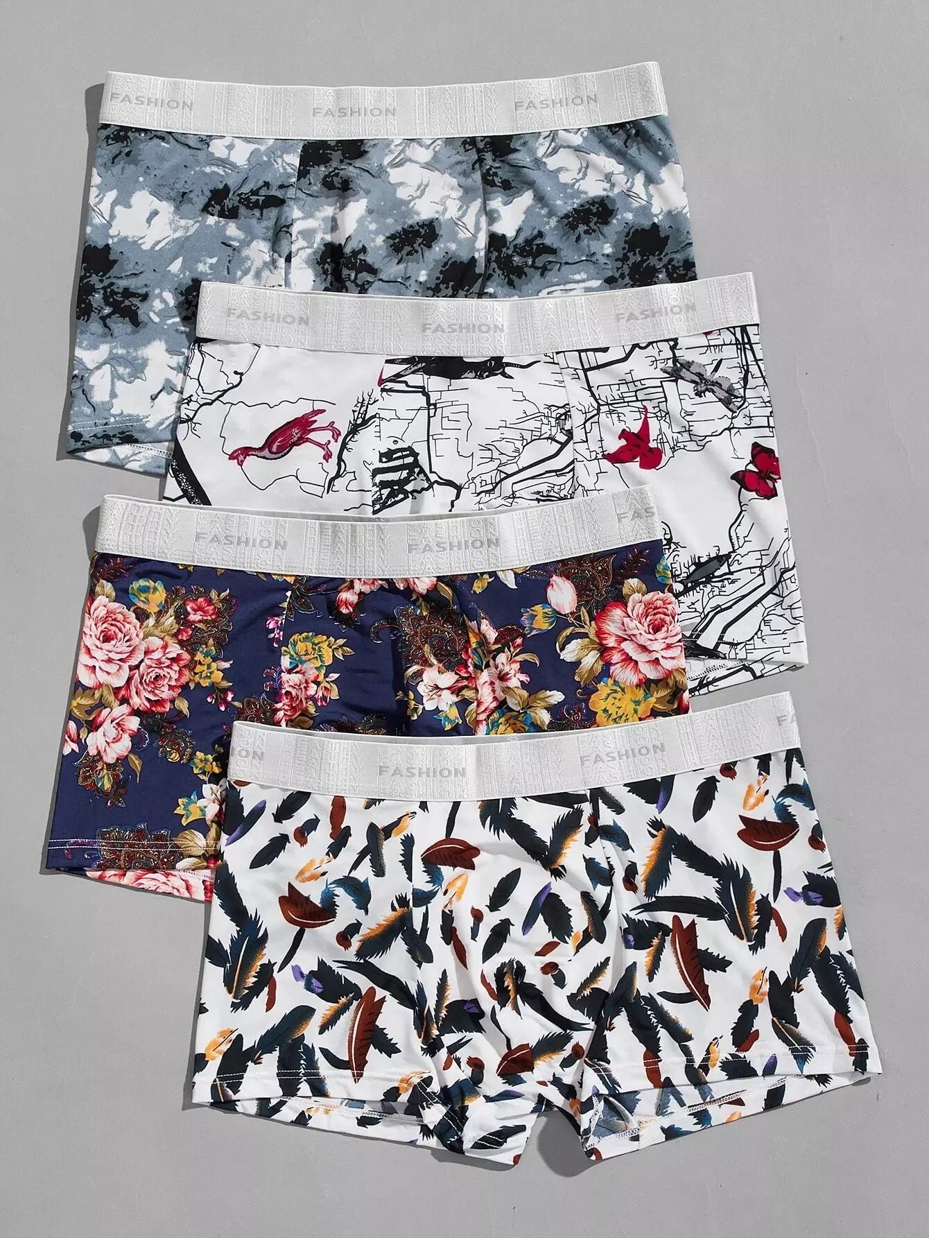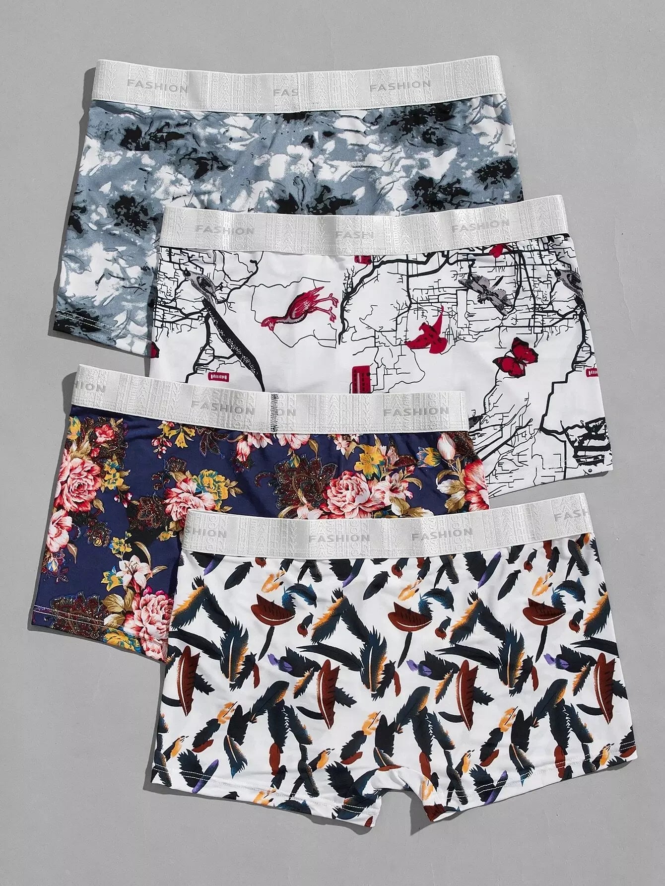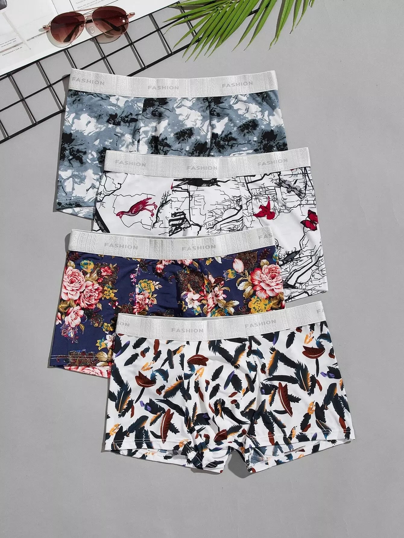 سراويل داخلية داخلية داخلية للرجال 4 قطع من الأزهار والريش