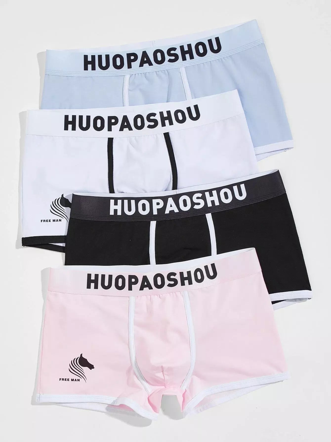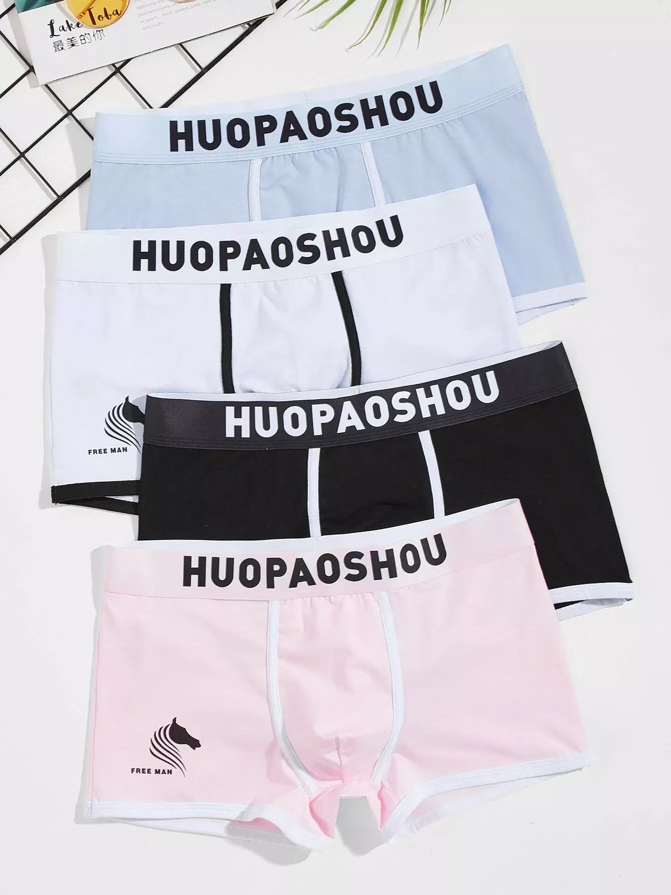سراويل داخلية داخلية داخلية داخلية رجالي 4 قطع برسومات حروف للرجال