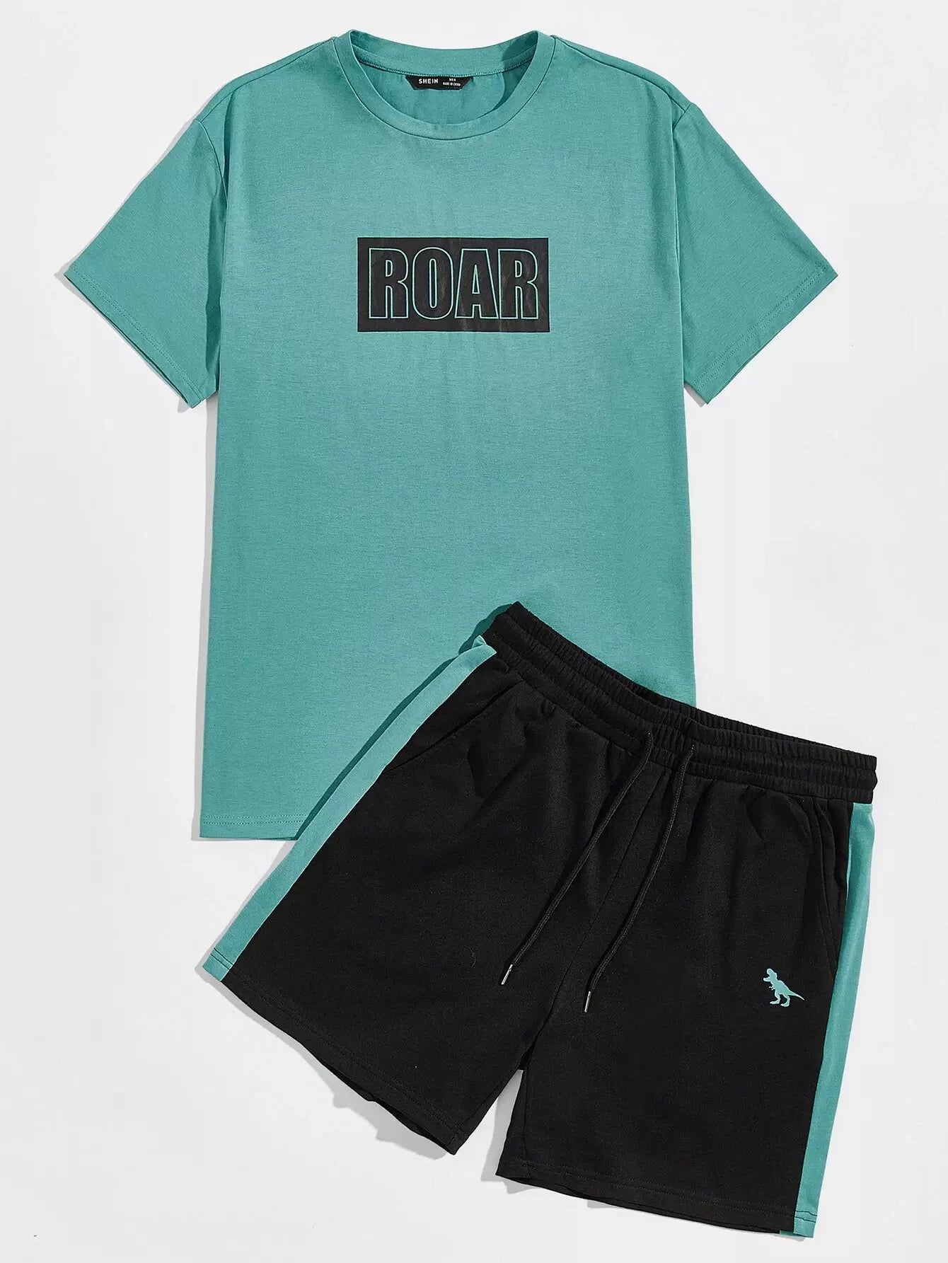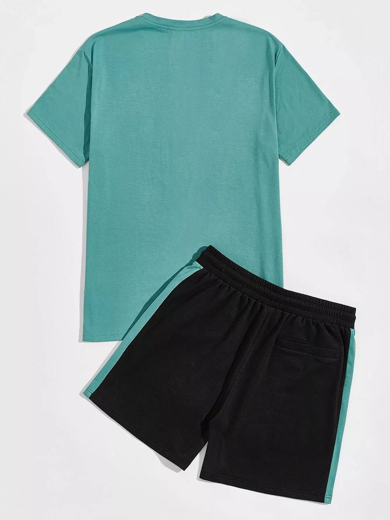 طقم قميص رجالي برسومات حروف للرجال وشورت قصير جانبي بلون مغاير