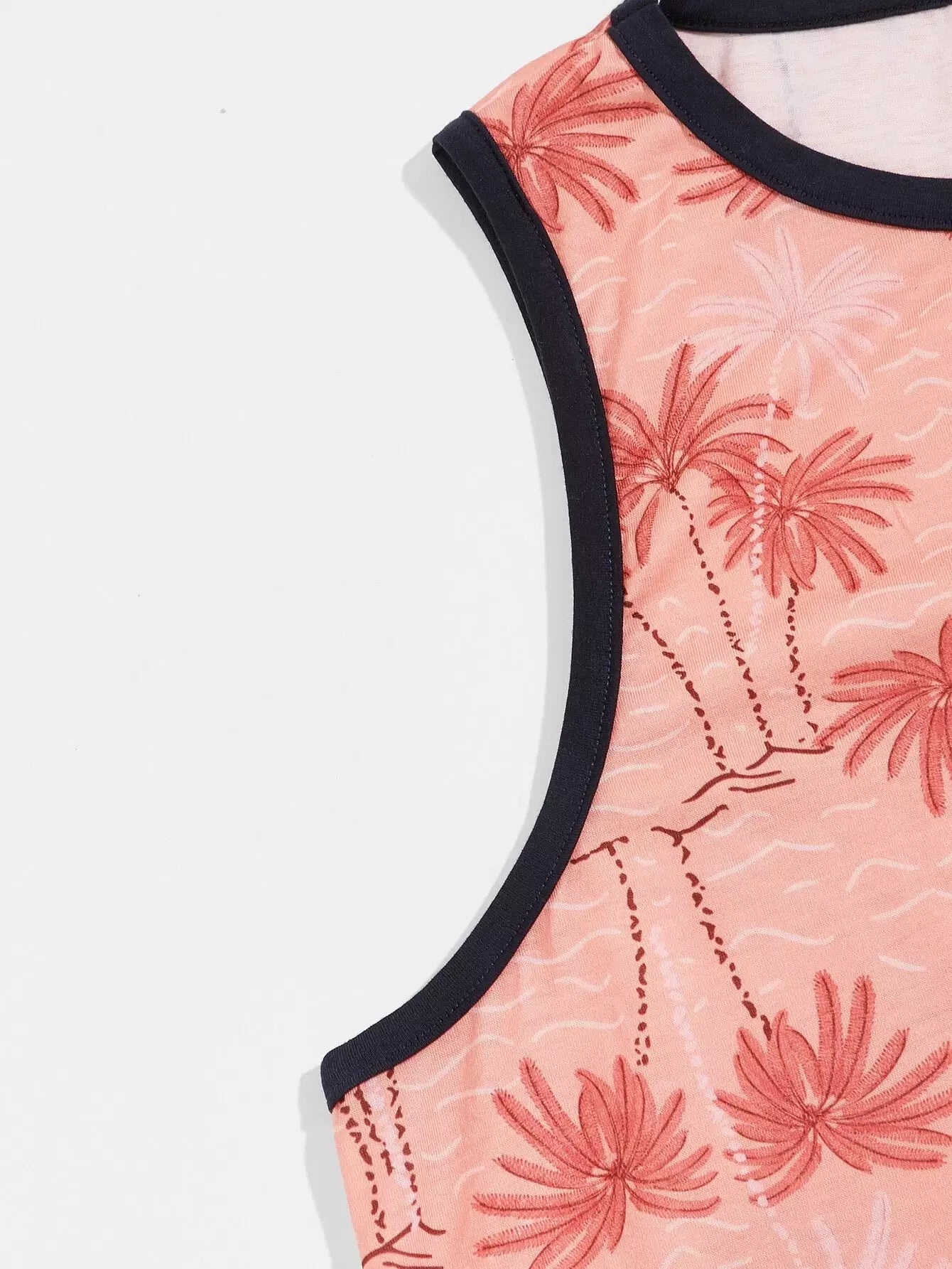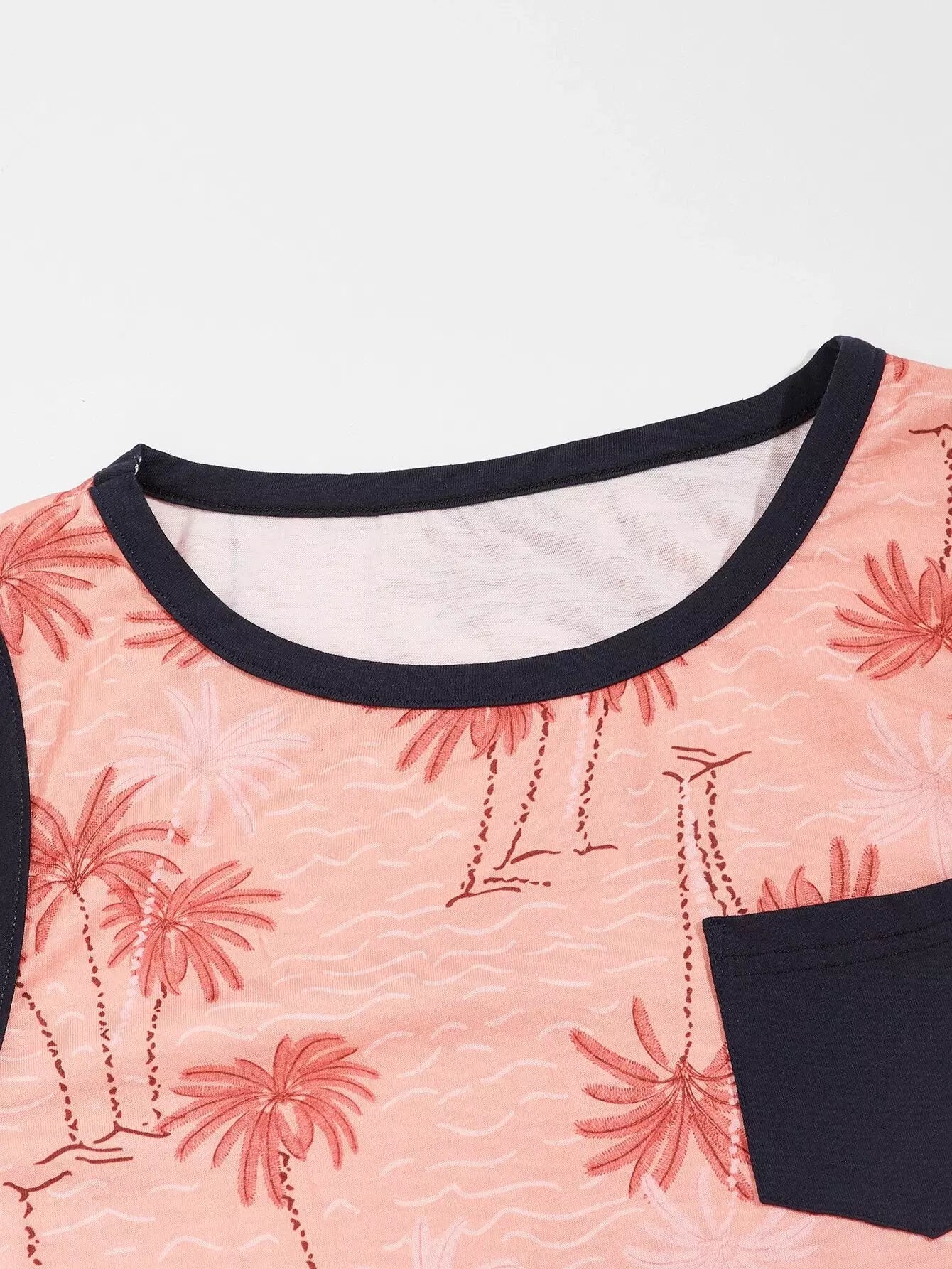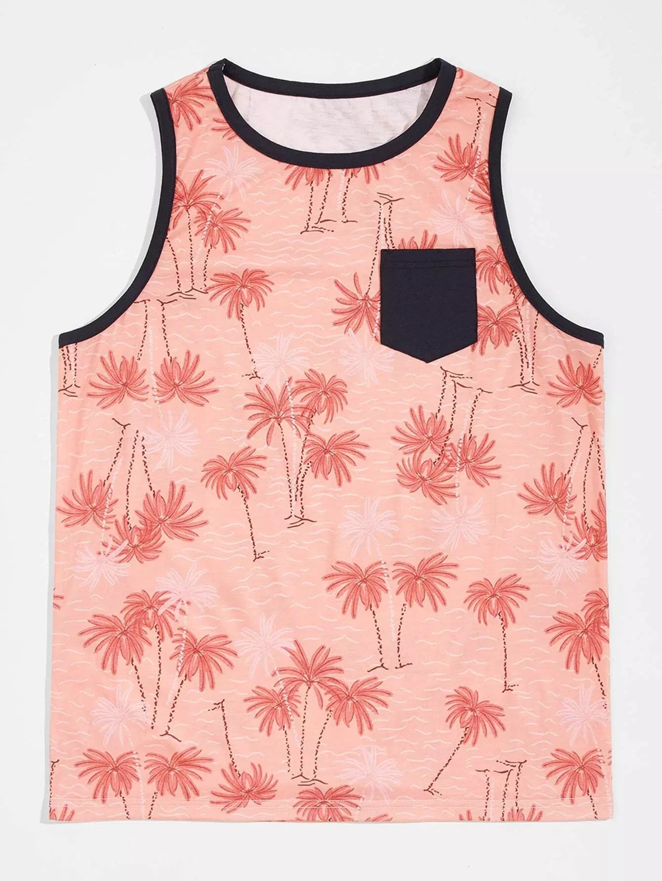 توب رجالي بطبعة شجرة النخيل بجيب أمامي للرجال