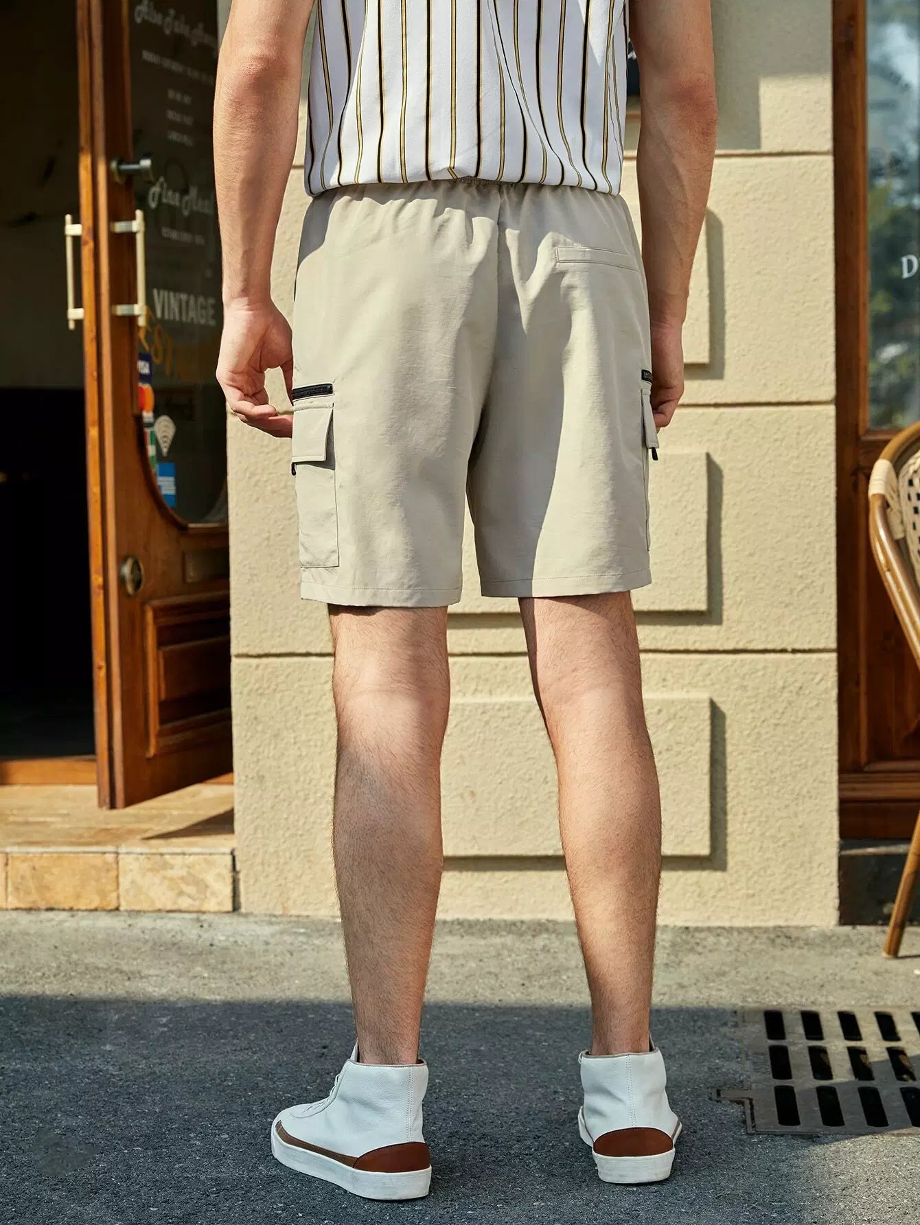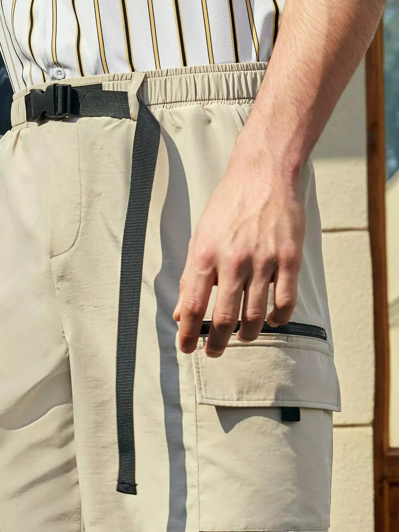 الرجال دفع مشبك السراويل جيب رفرف بدون حزام
